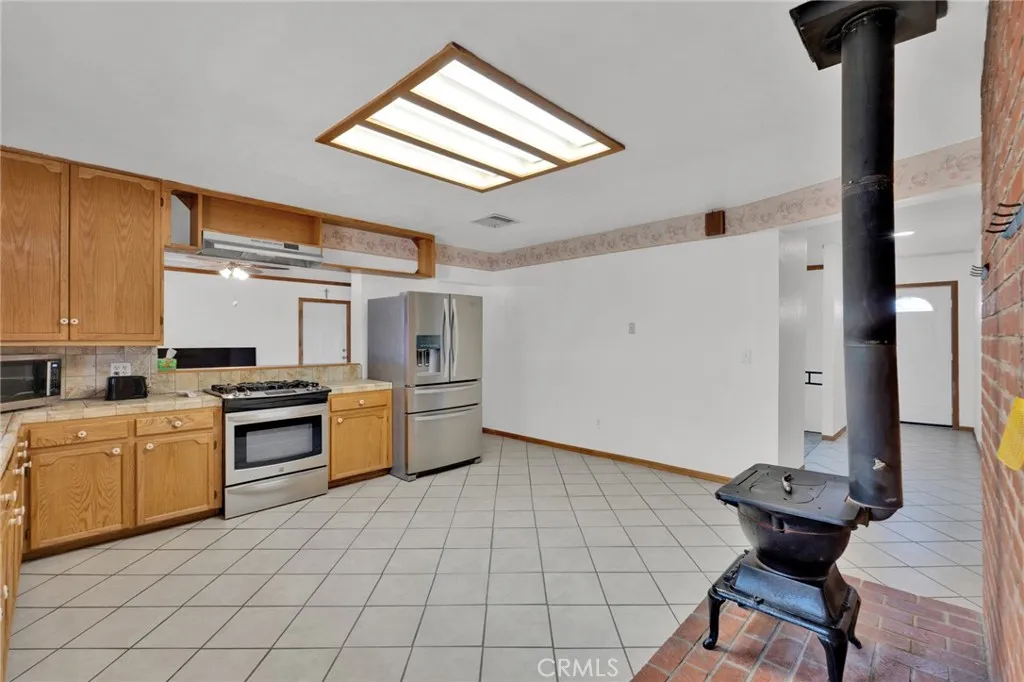 Welcome to this truly unique, well maintained home in the Barstow area, proudly owned by its original owner. Offering an impressive layout and generous living space, this property features approximately 2,257 sq ft on the main level plus an additional 1,054 sq ft basement, an uncommon and highly desirable feature in the area, along with a 462 sq ft garage. The main floor includes 3 spacious bedrooms and 2 bathrooms, including a large primary suite with dual sinks and a walk-in shower. Enjoy a huge kitchen complete with a charming wood-burning stove, perfect for added warmth and character, along with a separate formal dining room ideal for gatherings. The lower-level basement expands the home’s versatility, offering 3 additional rooms, a large living space, and private exterior access; perfect for extended living, guests, or creative use. This home has been thoughtfully updated with a new furnace, new swamp cooler, new water heater, and new front windows. The kitchen comes equipped with a stove and refrigerator, and the home also includes a newer washer and dryer, making it truly move-in ready. Situated on a property with desert landscaping in the front for low maintenance, this one of a kind home combines space, functionality, and value in a way that’s hard to find.