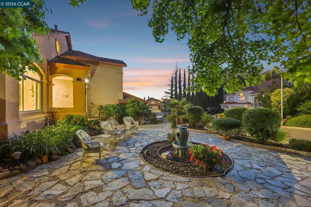 Nestled in one of Clayton’s most desirable enclaves, just moments from Oakhurst Country Club, this beautifully positioned Regency Meadows residence offers the perfect blend of space, flexibility, and timeless appeal. Situated on a gorgeous corner lot near a quiet cul-de-sac, 242 El Pueblo Place enjoys a slightly elevated setting that enhances both privacy and presence. The home is surrounded by lush, mature landscaping, vibrant flowers, and multiple outdoor living spaces designed for both relaxation and entertaining. A striking flagstone front patio creates a warm and inviting first impression, seamlessly connecting to a large side gate—ideal for easy access, potential storage, and effortless indoor-outdoor flow. Inside, the home welcomes you with vaulted ceilings and polished tile flooring, creating a light-filled and airy entry experience. Expansive windows throughout the home allow natural light to pour in, enhancing the open and inviting atmosphere. The thoughtfully designed layout offers both functionality and flexibility for today’s evolving lifestyle needs. Originally built as a 5-bedroom home, two bedrooms have been combined to create an expansive oversized room—perfect as a secondary suite, media room, playroom, or executive office—with the option to easily convert back to five full bedrooms, offering long-term adaptability for growing households or multigenerational living. The spacious kitchen with an eat-in breakfast bar serves as the heart of the home, featuring ample cabinetry, generous counter space, and seamless connection to a large family room—ideal for both everyday living and entertaining. The open-concept flow creates an inviting environment for hosting gatherings or enjoying quiet evenings at home. The primary suite is a true retreat, featuring dual-door entry, abundant closet space, and a well-appointed en-suite bath complete with a sunken soaking tub, creating a peaceful escape at the end of the day. Secondary bedrooms are well-sized and offer flexibility for guests, work-from-home needs, or additional living space. Highlights include fresh interior paint and updated lighting, providing a clean, modern aesthetic while maintaining the home’s warmth and character. The property’s multiple patio areas create distinct outdoor “rooms,” ideal for dining al fresco, morning coffee, or evening relaxation under the mature canopy of trees. With its prime location, versatile floor plan, and beautifully curated indoor and outdoor spaces. Welcome!