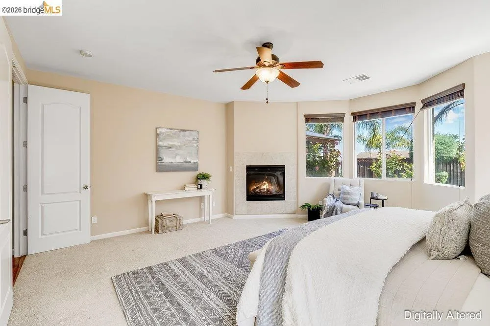 Nestled in the sprawling hillside neighborhood of Mira Vista, this exceptional home offers comfort, style, and versatility throughout. The spacious kitchen is equipped with cherrywood cabinets, a five-burner gas stove, built in oven and microwave, stainless steel appliances, a two-door pantry and an eat-in area. Formal dining and living space with vaulted ceilings and engineered hardwood floors create an open, airy feel. The level entry primary suite features a soaking tub, oversized stall shower, dual sink vanity, romantic gas fireplace and a spacious walk-in closet. Sizable secondary bedrooms make multigenerational living comfortable & easy while the bonus loft provides flexible living space for an office, gym or play area. Additional highlights include fresh interior paint, dual pane windows, faux wood window treatments, built-in speakers, living room gas fireplace, security cameras, ceiling fans, and a centralized fan. A finished three-car garage and laundry room with utility sink and ample storage add convenience. Step outside to a cute covered front porch with new front yard hardscape or check out the functionally designed backyard with a lighted pergola covered patio, easy maintenance turf, mature roses, peach, and pear trees- all perfect for relaxing or entertaining. Come see all this remarkable home has to offer at our open houses Sat 4/18 2-4pm and Sun 4/19 12-3pm
