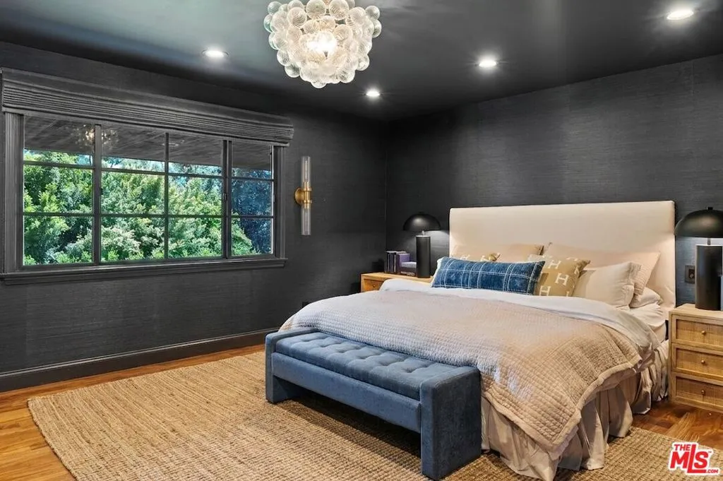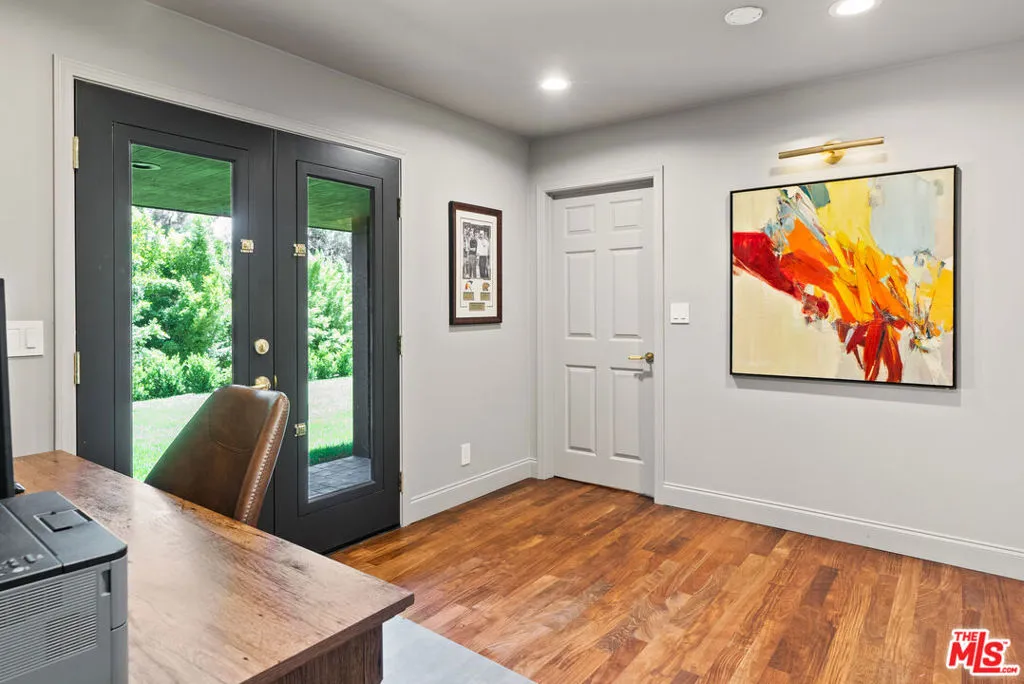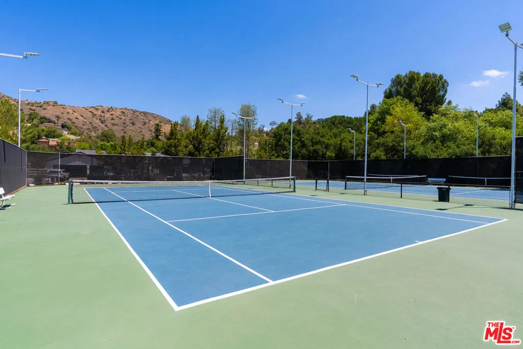 Tucked at the end of a quiet cul-de-sac within the exclusive 24-hour guard-gated community of Bell Canyon, this completely renovated single-story ranch estate sits on approximately 12 acres with sweeping mountain views in every direction and not a single neighbor in sight.No detail was overlooked in the renovation. The chef's kitchen features custom solid maple cabinetry, a Sub-Zero refrigerator, 6-burner Dacor range, Dacor double ovens, and the same Dekton countertops used in Thomas Keller's three-Michelin-star restaurant, The French Laundry. The dining room comfortably seats ten, anchored by a custom built-in maple china cabinet with matching Dekton counters and backsplash, and finished with Mind the Gap wallpaper.The custom home theater seats nine in motorized leather recliners with a 120" screen, 4K laser projector, immersive surround sound, professional black acoustic panels, and programmable color-changing accent lighting.The primary suite is wrapped in navy grasscloth wallpaper with an ensuite featuring floor-to-ceiling Carrara marble, dual vanity, freestanding soaking tub, arched black-framed mirrors, brass sconces, steam shower, makeup vanity, and mosaic marble tile floors.Outside, the private grounds offer a manicured lawn, mature oaks, terraced hillside landscaping, an in-ground trampoline, and a children's playhouse with loft.Bell Canyon is one of the Valley's most coveted guard-gated communities adjacent to Hidden Hills and Calabasas with a fitness center, tennis courts, equestrian center, miles of riding and hiking trails, a private park with playground and creek, and a year-round calendar of family events.Zoned to Las Virgenes Unified School District Round Meadow Elementary and Calabasas High School one of the most sought-after public school pipelines in Los Angeles County.