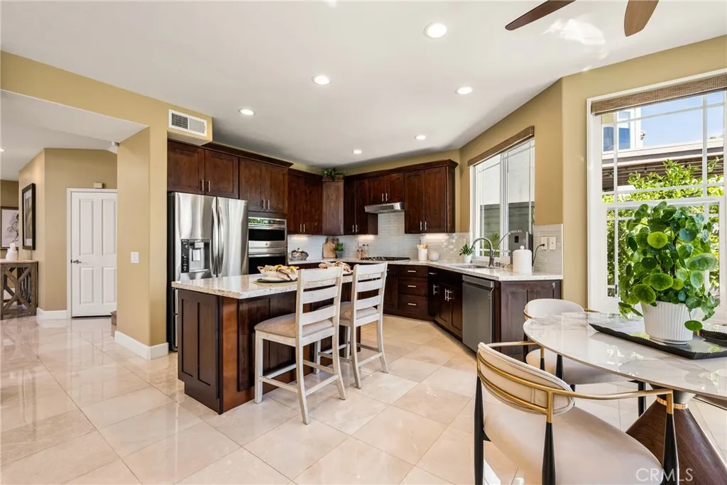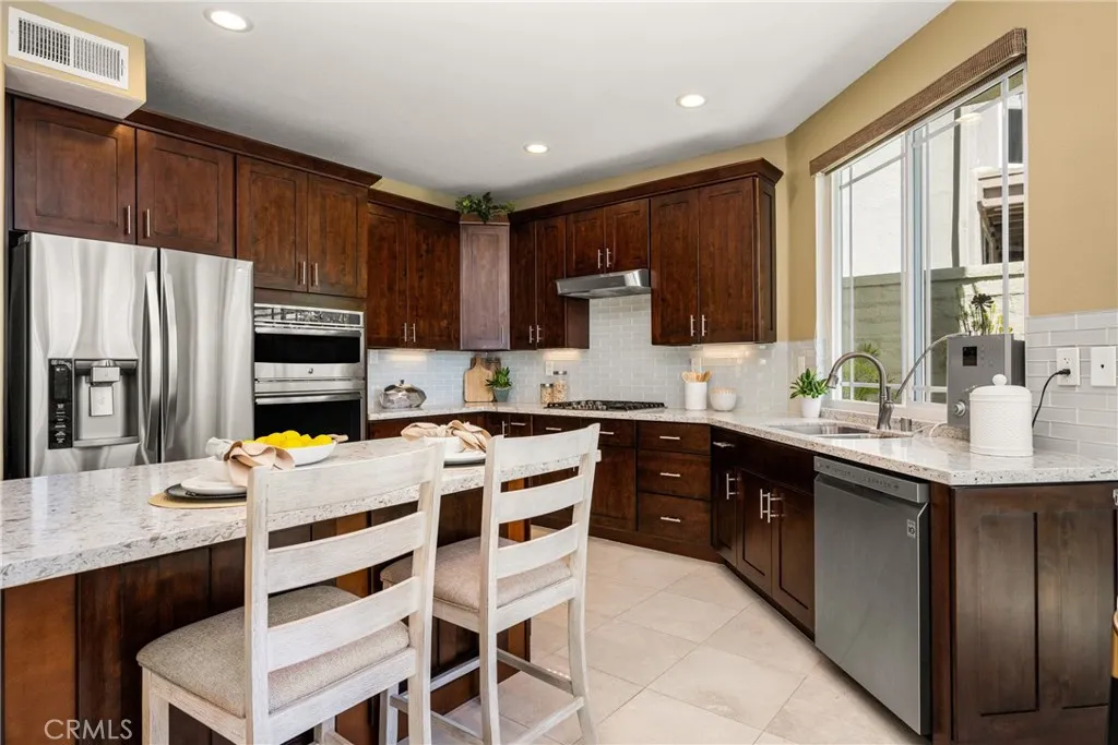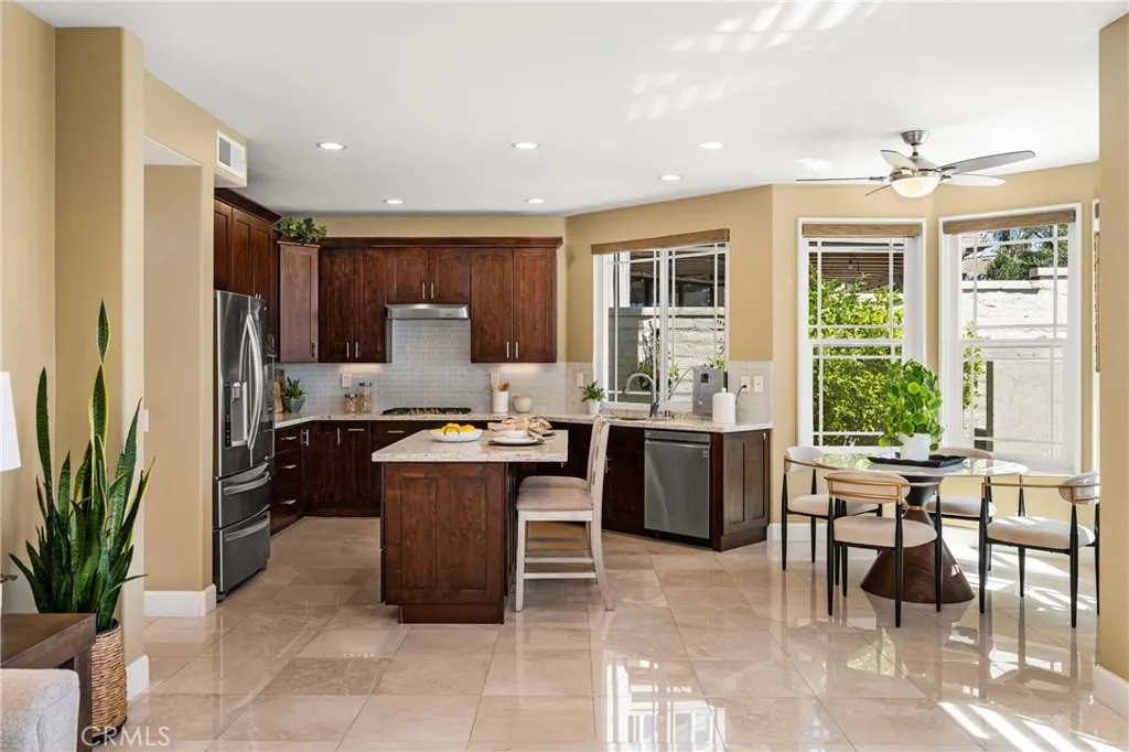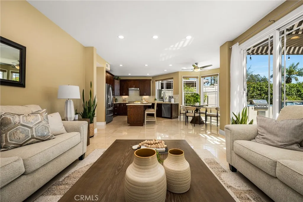 Beautifully upgraded and truly move-in ready, this exceptional Foothill Ranch home offers a rare combination of quality improvements, privacy, and stunning panoramic views. Situated on a single-loaded street, the property enjoys abundant parking, added privacy, and breathtaking sunset and city light views. Extensively renovated throughout, the home features fresh interior and exterior paint, all-new windows, an entry security gate, recessed LED lighting, updated electrical service, and new base molding. The fully remodeled kitchen is the heart of the home, showcasing quartz countertops, a full glass tile backsplash, custom wood cabinetry with soft-close drawers, a center island, new stainless steel appliances, and a breakfast nook, all designed for everyday living and entertaining. A convenient downstairs laundry room adds everyday functionality. The home also features a highly desirable downstairs bedroom and a fully remodeled bathroom, ideal for guests, multigenerational living, or a private home office. The interior is thoughtfully finished with marble flooring downstairs and laminate wood flooring upstairs. All three bathrooms have been completely remodeled with elegant marble shower surrounds and granite countertops. The spacious primary suite offers high ceilings, a ceiling fan, and a large walk-in closet with custom organizers. The en-suite bathroom provides a spa-like experience, featuring a luxurious jetted Jacuzzi soaking tub, perfect for relaxation. Additional upgrades include new shutters, ceiling fans, mirrored wardrobes, updated A/C components, and a beautifully redesigned fireplace with a natural stacked stone finish. Step outside to an entertainer’s backyard featuring a covered patio, built-in BBQ and bar, private spa, and the perfect setting for outdoor dining while enjoying the incredible views. There is an additional half-car space in the garage perfect for a workshop or gym equipment. This is a rare opportunity to own a beautifully upgraded home that combines luxury, comfort, and unforgettable views in one of Foothill Ranch’s most desirable locations. If you desire to live in a community full of amenities, Foothill Ranch delivers with a resort-style community pool, parks, tennis, basketball, and volleyball courts, world-class mountain biking, hiking, shopping, restaurants, and Blue Ribbon schools. Homes like this don’t come around often—don’t miss your chance to make it yours. Sellers have priced this home to sell quickly.