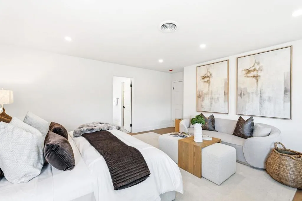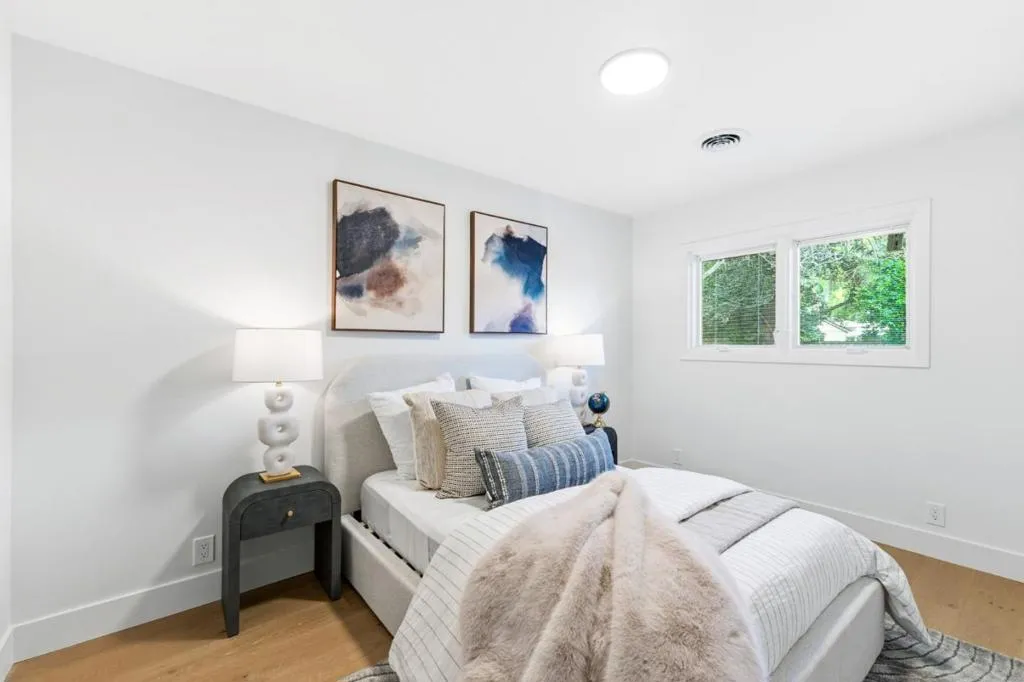 Rare quiet, cul-de-sac privacy, designer upgrades, & future expansion potential in Palo Altos desirable Green Gables. This thoughtfully updated 2-story home offers 3k+ sq ft with 6 BD (incl. 2 en-suites) & 5 BA on an expansive lot surrounded. High-quality materials & top-tier appliances throughout. Chefs kitchen features Thermador high-end appliances, large island, & custom cabinetry. Bathrooms finished w/ Kohler fixtures & Porcelanosa tile. Luxurious primary suite includes freestanding Duravit soaking tub, oversized walk-in shower, dual vanities, designer lighting, & private toilet room. Additional highlights include smart toilets, LED mirrors, & curated finishes across secondary baths. Modern features include floating glass handrail and 2-zone heating system w/ Nest controls. HVAC piping in place for future A/C. Spacious living areas anchored by a contemporary fireplace w/ seamless indoor-outdoor potential via kitchen pass-through. Backyard offers a large lawn ideal for play, entertaining, or pets. Detached office cottage plus a detached 1-car garage. Easy to convert attached 2-car garage into JADU (~400+ sq ft), expanding total to ~3,500 sq ft. Copper plumbing, double-pane windows, newer roof. Close to parks, shopping, commute routes, & top-rated schools.