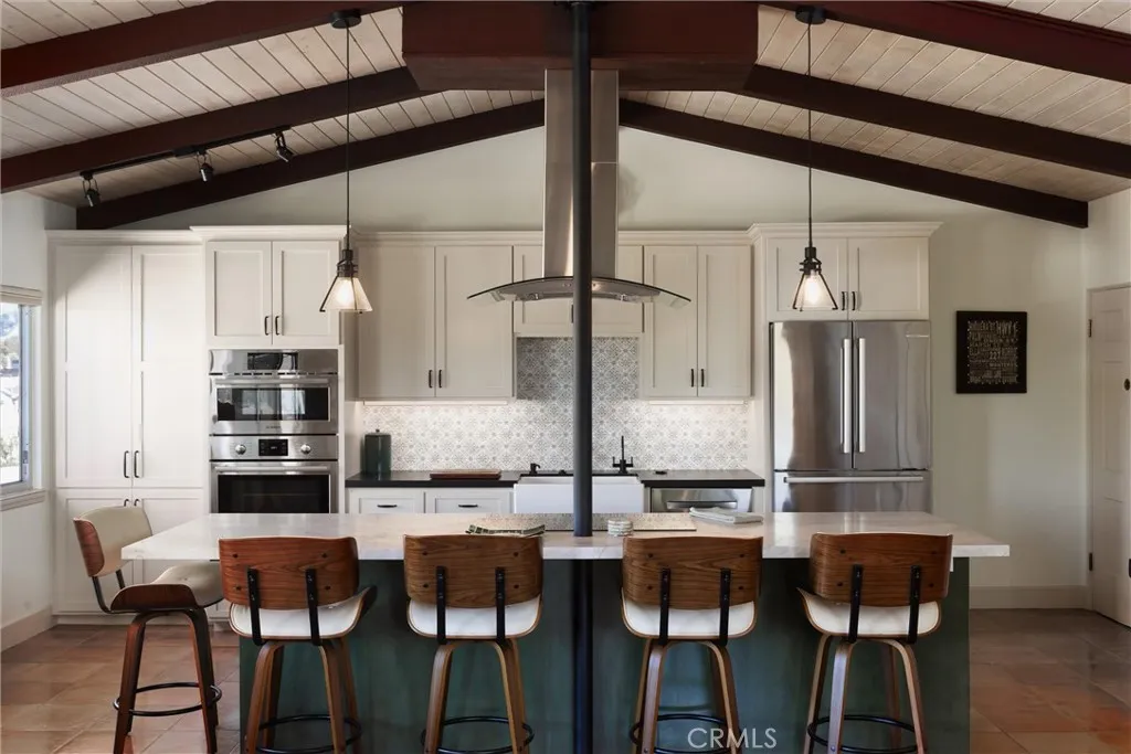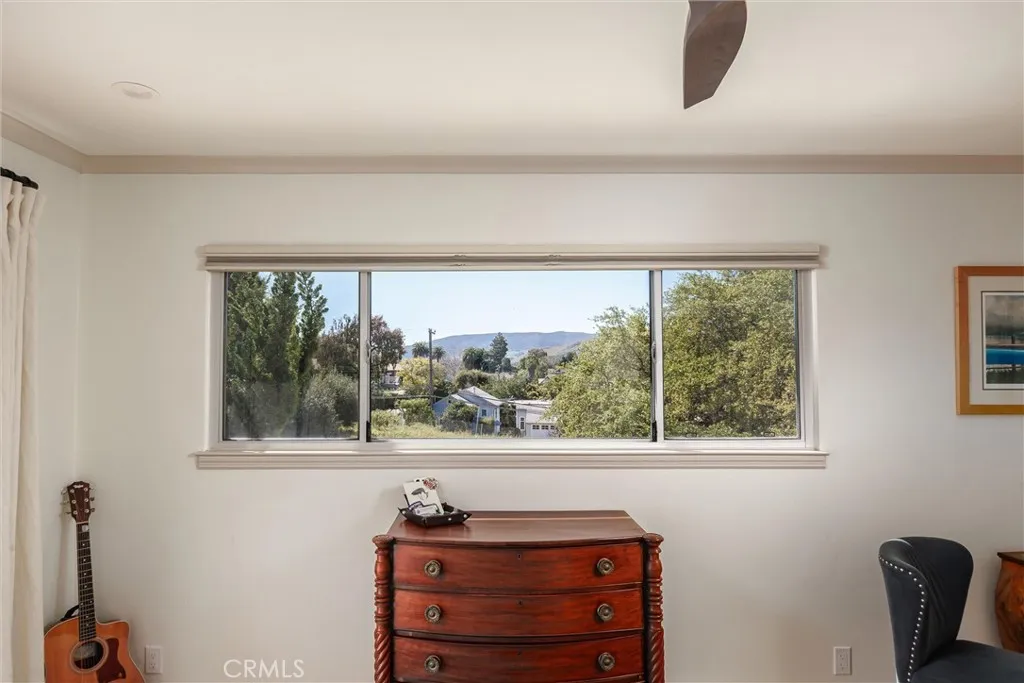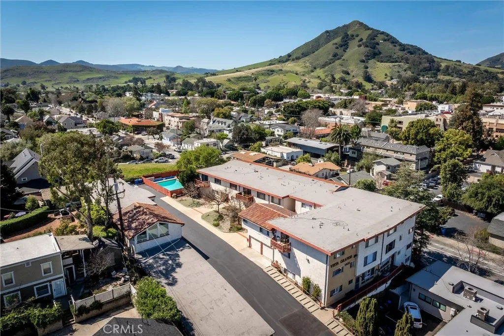 Luxury living in downtown SLO that is walkable, bikeable and has views for miles. A sanctuary in the sky, this 2-bedroom, 2-bath, 1,200-sf unit features creature comforts galore. The luxury dwelling boasts open-concept living with panoramic windows and sweeping views of Cerro San Luis and the treetops of downtown SLO. The views and in-town location are topped only by the unit’s amenities. Cathedral ceilings with redwood beams add vertical dimension to the home's expansive Great Room. A studs-up 2023 remodel orchestrated by Honeycomb Design boasts an open-concept floor plan and designer kitchen with center island featuring seating for 5. No expense was spared on this recent remodel, including Bosch and GE Profile appliances; custom cabinetry; leathered Taj Mahal stone counters; Rohl/Shaws hand-crafted apron-front sink with filtered water and on-demand hot water; Carrara marble backsplash; and under-cabinet lighting. Schluter radiant floor heating, with dedicated controls in each room. Both bathrooms have Toto bidet toilets and Madeli lighted bathroom mirrors; the primary bath has H|S deep tub and a niche with outlet; the second bath features a Mr. Steam shower with infinity drain, seamless shower door, and custom cabinets with integrated electric outlets for personal appliance storage. Additional features include a device charging drawer, GE all-in-one washer/dryer that uses heat pump technology, smart home front door lock, and smart radiant heating systems. Top-down/bottom-up blinds maximize views and privacy; hand-textured smooth drywall; ceiling fans and recessed lighting complete the unit. From top to bottom, luxurious, convenient, and care-free condo/co-op living. The location offers everything there is to love about small-town living, with the amenities more commonly found in the big city. At the corner of Morro and Pismo, 1415 Morro is one block from Mitchell Park, and a short walk to the Downtown Cinema, Farmers Market, SLO’s best restaurants, museums, and historic Railroad Square, putting the SLO Life at your fingertips. Or jump on your bike and you can get to SLO’s many other parks and amenities via SLO’s greenways and bike paths. This 17-unit community makes for great living with a pool; one-car garage with storage, plus added parking; and wonderful neighbors. Easy lock-and-leave living for frequent travelers, second-home owners, and Cal Poly parents.