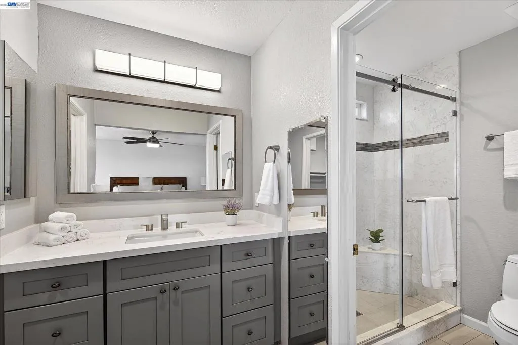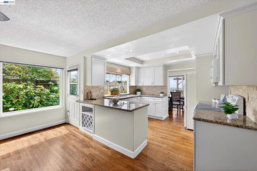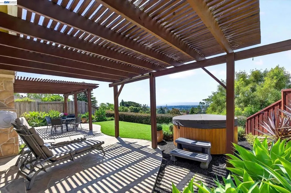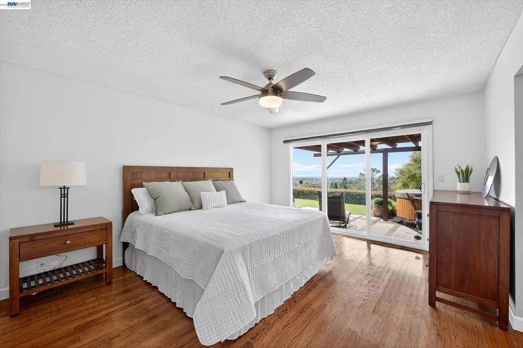 Beautiful single story 4BD/2BA home with stunning bay views and an ideal floor plan. Light-filled throughout, the home features expansive windows, a skylit entry, and seamless flow between the living, dining, and family rooms. The kitchen offers upgraded cabinetry, and a garden window overlooking the side yard. The family room includes a fireplace and sliding door access to the backyard, perfect for indoor-outdoor living. Three sliding doors open to the backyard and spacious side yard from the family room, primary suite, and secondary bedroom/office ideal for a garden, play area, or private patio retreat. The hall bathroom is updated with a tub/shower combo. The primary suite features a large walk-in closet, updated vanity & bathroom with shower. Additional highlights include hardwood flooring in main living areas, carpeted bedrooms, owned solar, alarm system, dual-pane windows, and laundry room. Enjoy breathtaking views from the backyard perfect for relaxing or entertaining. Backyard and driveway has stamped concrete, side yard, and views so stunning you won't want to leave. Close to Freeway, Cull Canyon Regional Park, Bay Trees Park, Lake Chabot, Anthony Chabot Regional Park, and Golf Courses. Open Sat and Sun 1-4pm.