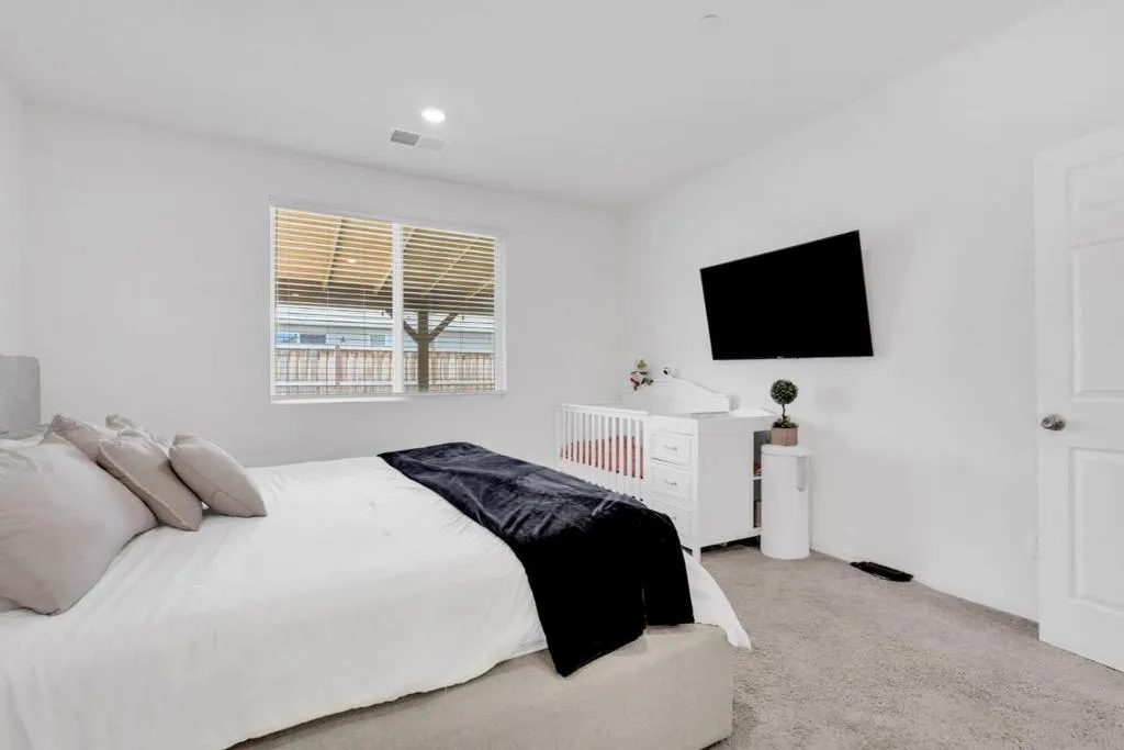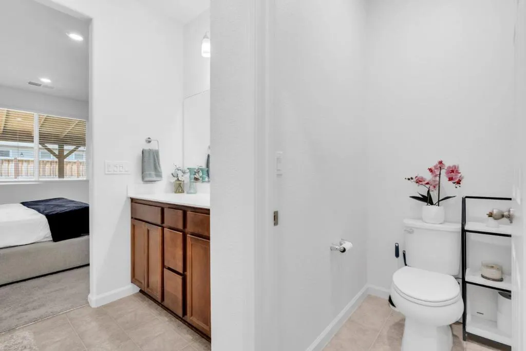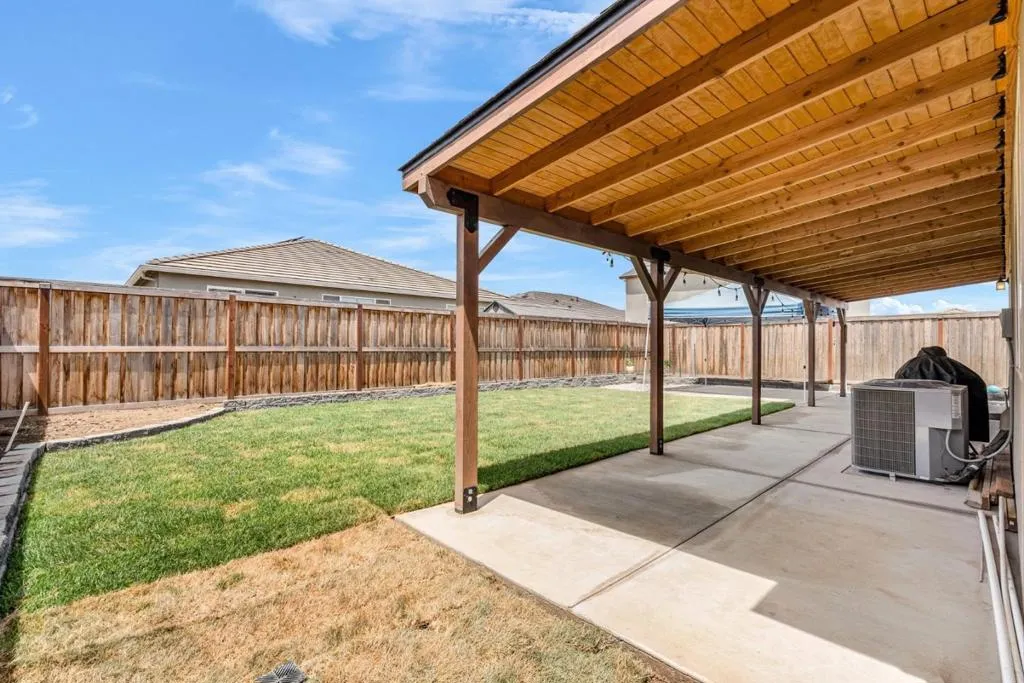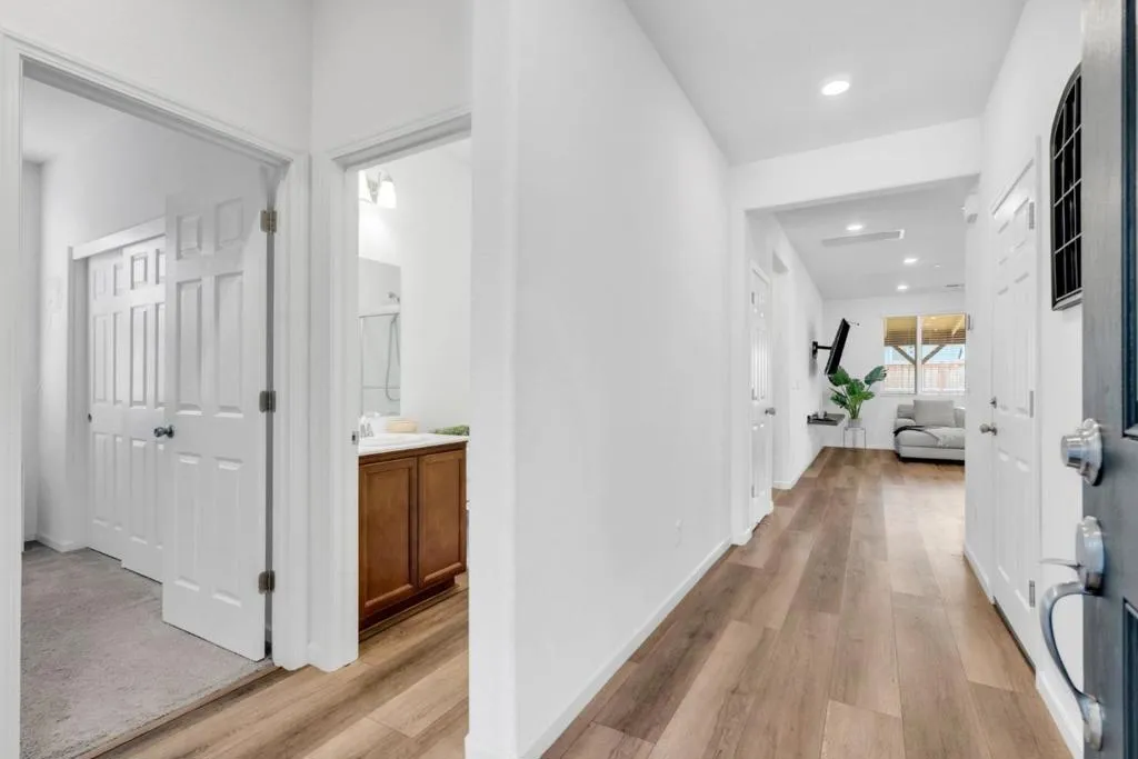 This beautifully maintained single-story home, built just three years ago, features a bright and open-concept layout with soaring 9-foot ceilings that enhance its spacious feel. The thoughtfully designed floorplan includes generously sized bedrooms, walk in closet and spacious bathrooms, providing ultimate comfort throughout. The kitchen is a delight with quartz countertops, ample cabinet space and pantry, a large center island and sink, plus a breakfast bar perfect for casual dining. The home is equipped with energy-efficient upgrades, including a solar energy system, tankless water heater, energy-efficient LED recessed lighting and smart thermostat. Additional highlights include stylish Sterling Oak plank flooring, a dedicated laundry room, and a finished, insulated garage. The newly landscaped backyard offers a covered patio and a smart, water-conserving irrigation system with weather-based controls, perfect for easy, low-maintenance outdoor living. Conveniently located within walking distance of Walnut Grove School (K8) and a brand-new community park, this home combines comfort, efficiency, and modern living in a welcoming neighborhood.