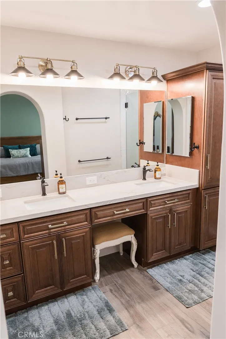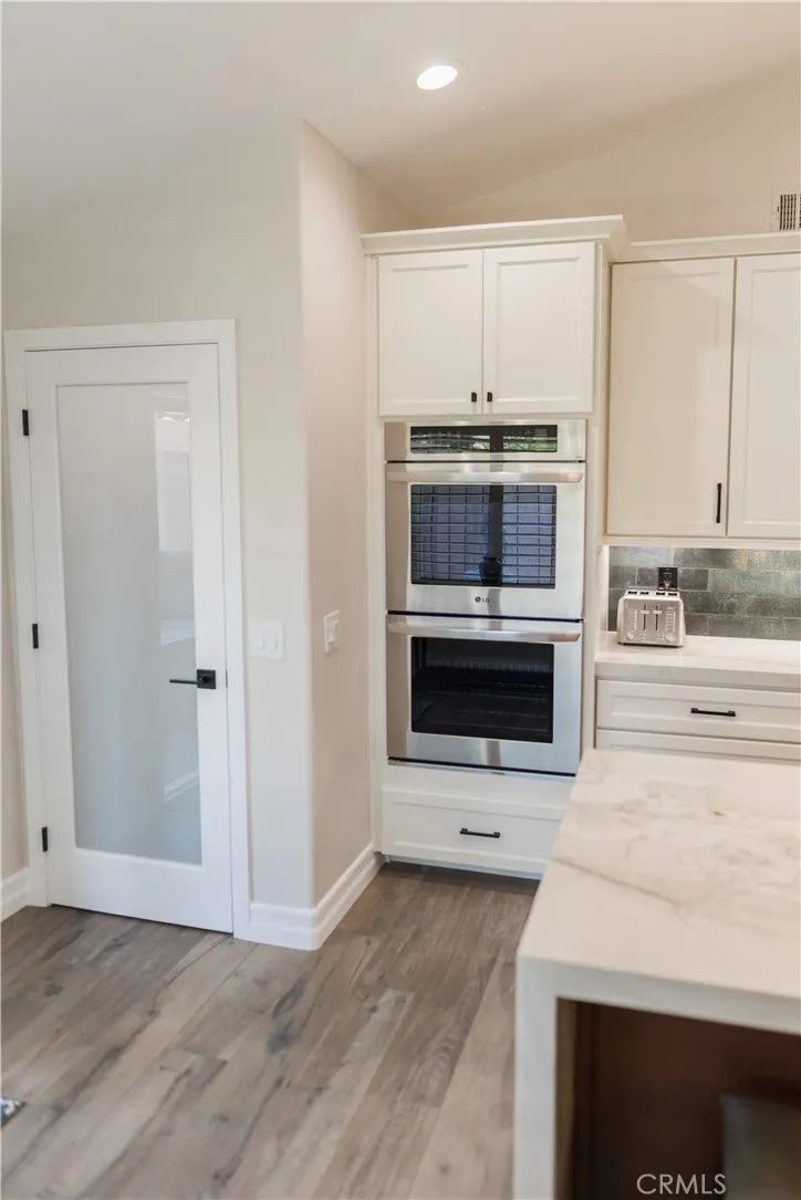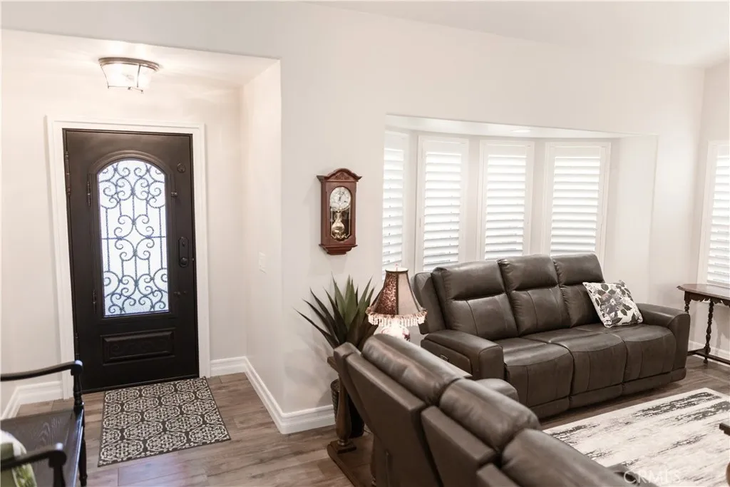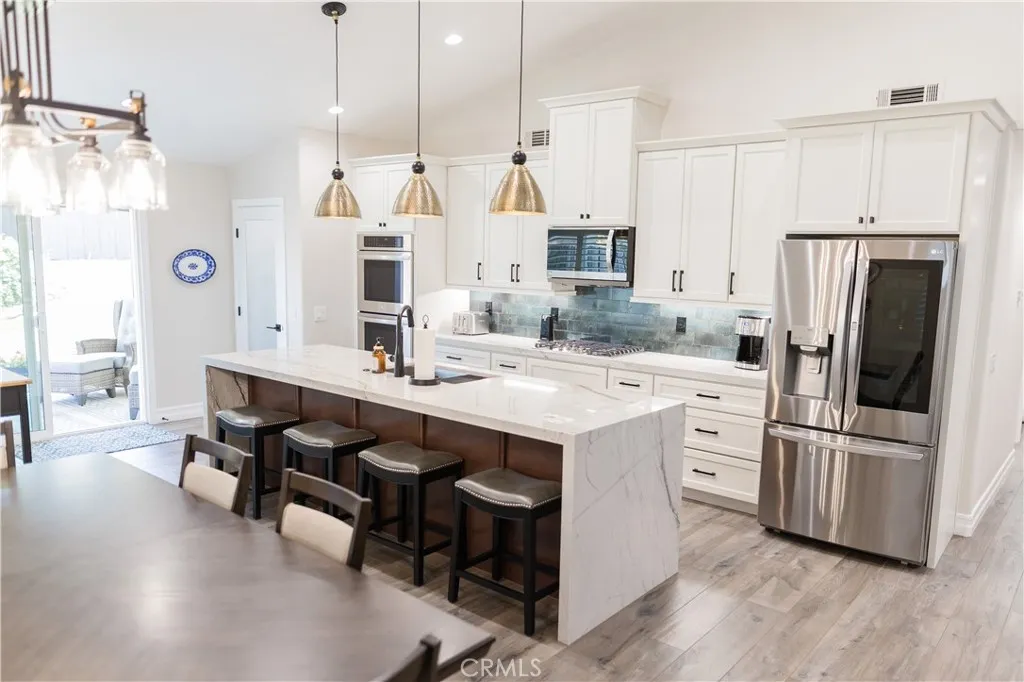 Unbelievable remodeled one story Orangecrest home. This three bedroom, two bath home has undergone a remodel from top to bottom that shows tens of thousands of dollars of upgrades deigned and presented with perfection. Just driving by one can see the detail invested in this home. The great room has a vaulted ceiling, a new kitchen with granite island, there is a built in double oven and a good sized pantry. New doors have been installed throughout, new custom cabinetry installed in kitchen and baths, all new high end flooring and the walls and ceiling throughout have been plastered with French Provence/Parisian texture that is stunning. The fireplace includes a custom mantle of aged lumber which sets off the exceptional build of the home. Baths have been built with beautiful stone surfaces and custom glass. The home has a newer forced air and heat system with all new ducting, a three car garage, hundreds of square feet of aluma-wood patio and has perfectly landscaped yards. The property is a block from the Orangecrest park, library and sports complex, and is close to shopping, schools, worship centers and access to both the 215 and 91 fwys.