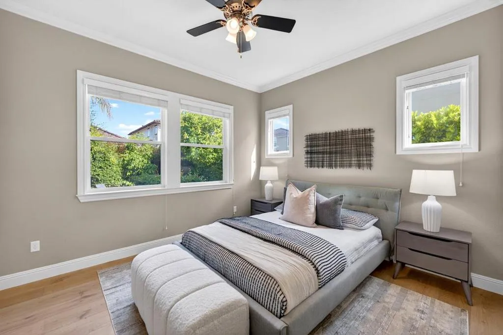 Welcome to 718 Timberpine Lane in the heart of Sunnyvale, where refined design meets everyday comfort. This beautifully upgraded residence showcases rich engineered hardwood flooring throughout, creating a warm and sophisticated ambiance. The home features thoughtfully customized closets with built-in compartments, offering both elegance and exceptional organization. Light-filled living spaces flow seamlessly, ideal for both relaxed living and stylish entertaining. Step outside to a private backyard retreat, complete with a gas BBQ grillperfect for hosting gatherings or enjoying outdoor dining year-round. Ideally located near top-rated schools, parks, shopping, and major tech campuses, this home offers the perfect blend of luxury, convenience, and modern living in one of Sunnyvales most desirable neighborhoods.