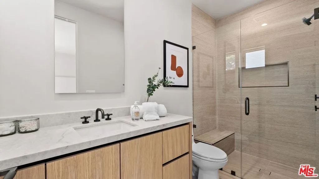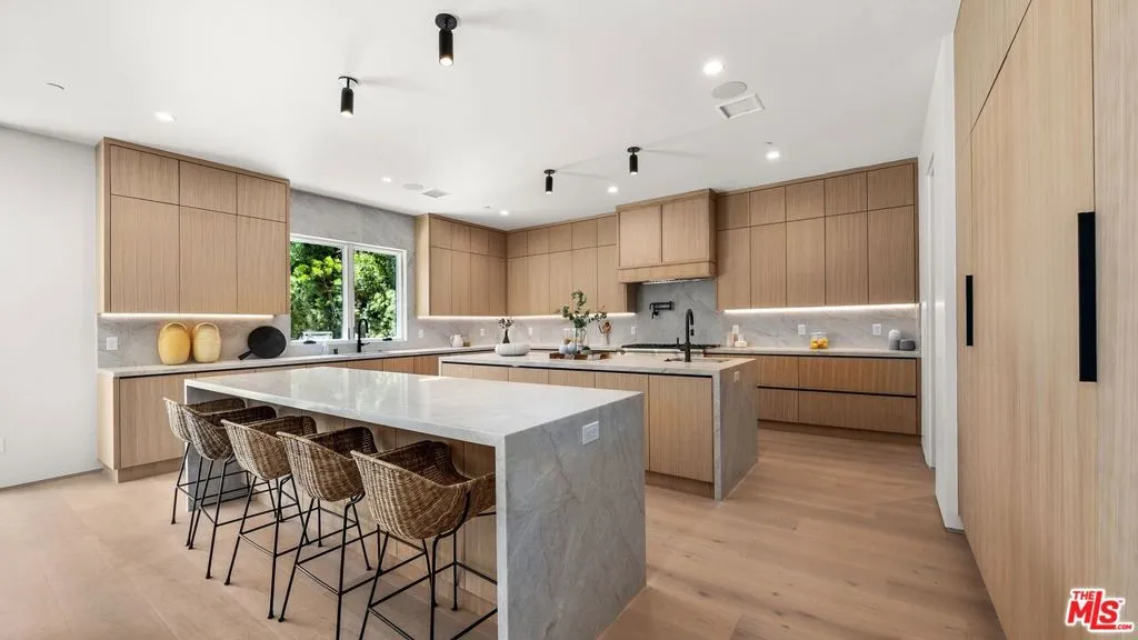 Located in the highly desirable Westdale pocket of Mar Vista, this exceptional new construction offers a rare blend of style, comfort, and thoughtful design. The home features a warm, modern aesthetic with an open-concept layout designed for both everyday living and effortless entertaining. A standout double-island kitchen offers both functionality and visual impact, complete with custom rift white oak cabinetry and elegant Taj Mahal stone surfaces. Just off the main living areas, a built-in bar creates the perfect setting for hosting. Expansive pocket sliders with Fleetwood doors open to create a seamless indoor-outdoor flow, enhancing the overall living experience. Generous living spaces, a dedicated movie room, and an oversized primary suite provide comfort and versatility, while Porcelanosa tile finishes add a refined, modern touch throughout. A rare opportunity in one of Mar Vista's most sought-after neighborhoodshomes of this size and quality are increasingly hard to find in this pocket.