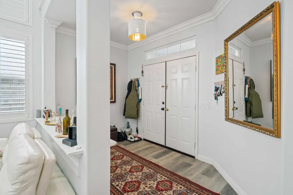 Welcome to this beautiful upgraded house. The pool home has an open floor plan that is complemented with plenty of windows, vaulted ceilings, and ample space. It features a high ceiling living room and dining area. Adjacent to the remodeled kitchen with an island, is a family room with a brick fireplace. Upstairs has 4 bedrooms including a Primary Suite and 2 bathrooms. Downstairs has one bedroom and a bathroom. The 3rd garage space has been converted to a room with permit. Downstairs has waterproof vinyl floor and bedrooms upstairs have wood floors. The shutters throughout the house and the crown molding add extra great elements to the home. Also, the backyard presents a remodeled pebble pool and spa, artificial turf and a new gazebo. New features include solar panels, Heat Pump A/C unit, shutters throughout, car charger, and a gazebo in the backyard along with artificial turf and cactuses. Also, the amazing pool and spa have been remodeled. The outside house walls are freshly painted (total of more than $120K). The house is situated within walking distance of the award-winning elementary school and a beautiful park. Six Flags Magic Mountain is nearby. Stevenson Ranch offers easy freeway access. The seller has purchased (about $52K) and installed the solar panels. The solar panel's loan balance is about $17000 ($105 monthly payment). The buyer to accept to pay off the balance or work with Sunrun on arranging the loan transfer. Call Abe for the details and the electricity bills..