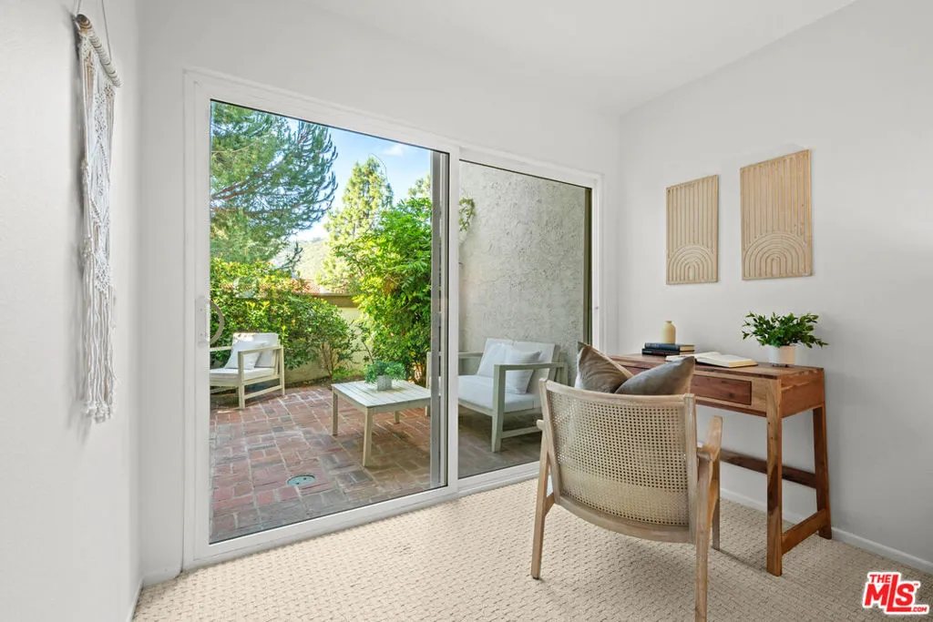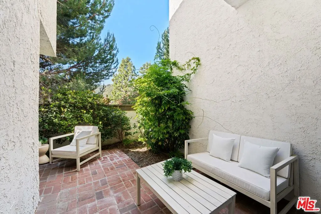 Tucked away in the coveted Palisades Highlands, this elegant 2-bedroom, 3-bathroom townhome offers a peaceful retreat surrounded by nature's beauty. Designed for both comfort and effortless living, the home features two spacious bedrooms on the ground level, including a serene primary suite with a walk-in closet, en-suite bath, and direct access to an expansive private patio enveloped by lush greenery and distant mountain vistas. The guest bedroom also opens to the patio, creating a seamless indoor-outdoor experience. Upstairs, a dramatic light-filled living space unfolds, where soaring floor-to-ceiling windows frame tranquil treetop and distant mountain views, bringing a sense of calm and connection to the outdoors. A cozy fireplace and wet bar enhance the space, while the private balcony invites moments of quiet reflection, morning coffee, or evening relaxation surrounded by nature. The dining area, bathed in natural light, flows effortlessly into a well-appointed kitchen with generous cabinetry, ample counter space, and a charming breakfast nook that opens to a private back patio-perfect for intimate gatherings or al fresco dining. Completing the home is a direct-access two-car garage, offering both convenience and security. Residents of the Palisades Highlands enjoy access to resort-style amenities, including tennis courts, a fitness center, and an oversized pool and spa-all set within a tranquil, scenic community known for its privacy, beauty, and sought-after lifestyle. Don't miss the opportunity to call this peaceful retreat home.