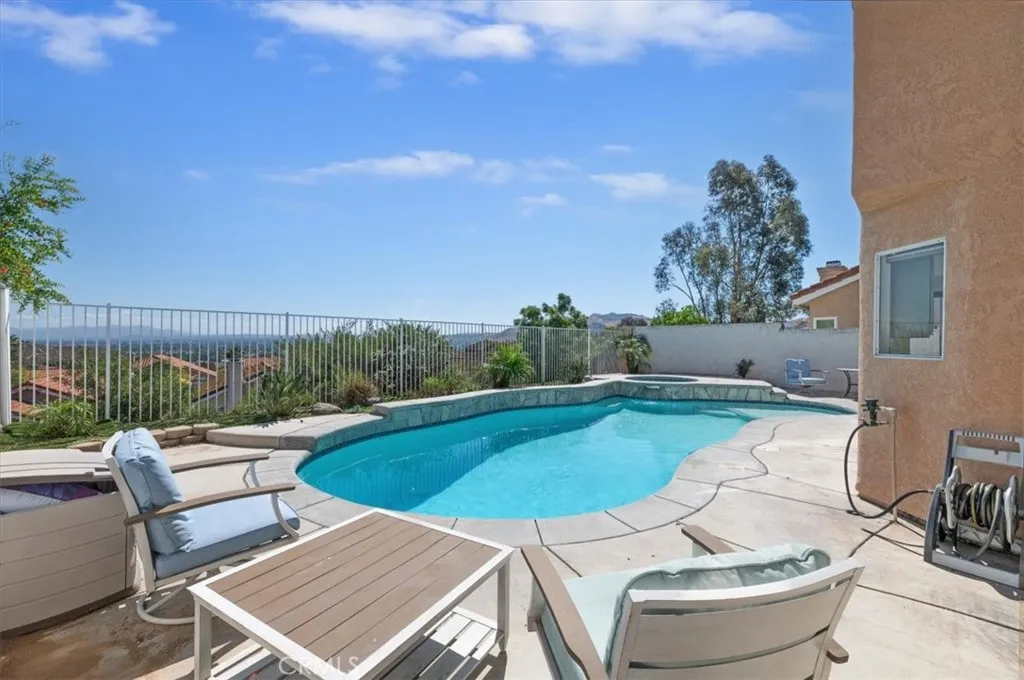 Welcome to 585 Calhoun Circle, a well-kept 4 bedroom, 2 bathroom home located on a quiet cul-de-sac with sweeping city and mountain views. From the moment you arrive, the home offers strong curb appeal with a clean stucco exterior, tile roof, and a wide driveway leading to a 3-car garage, while inside you’re greeted by vaulted ceilings and abundant natural light that opens up the main living and dining areas. The layout flows seamlessly into a bright kitchen featuring granite countertops, white cabinetry, and multiple windows overlooking the backyard and pool, all connecting to a comfortable family room with a fireplace. Upstairs, the primary suite stands out with elevated views and private balcony access, along with a spacious bathroom that includes dual vanities, a soaking tub, and separate shower, while the additional bedrooms offer flexibility for family, guests, or a home office. The backyard is a highlight, set on an elevated lot with a private pool and spa, no direct rear neighbors, and scenic views that create a great space for relaxing or entertaining. Conveniently located near schools, shopping, and commuter routes, this home offers a balanced mix of space, comfort, and lifestyle.