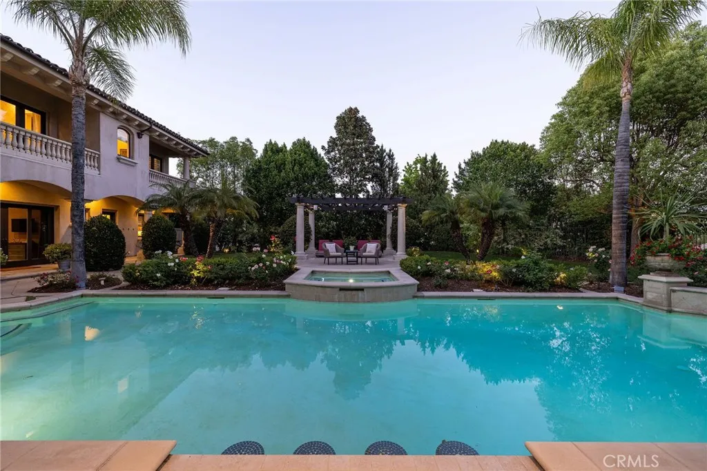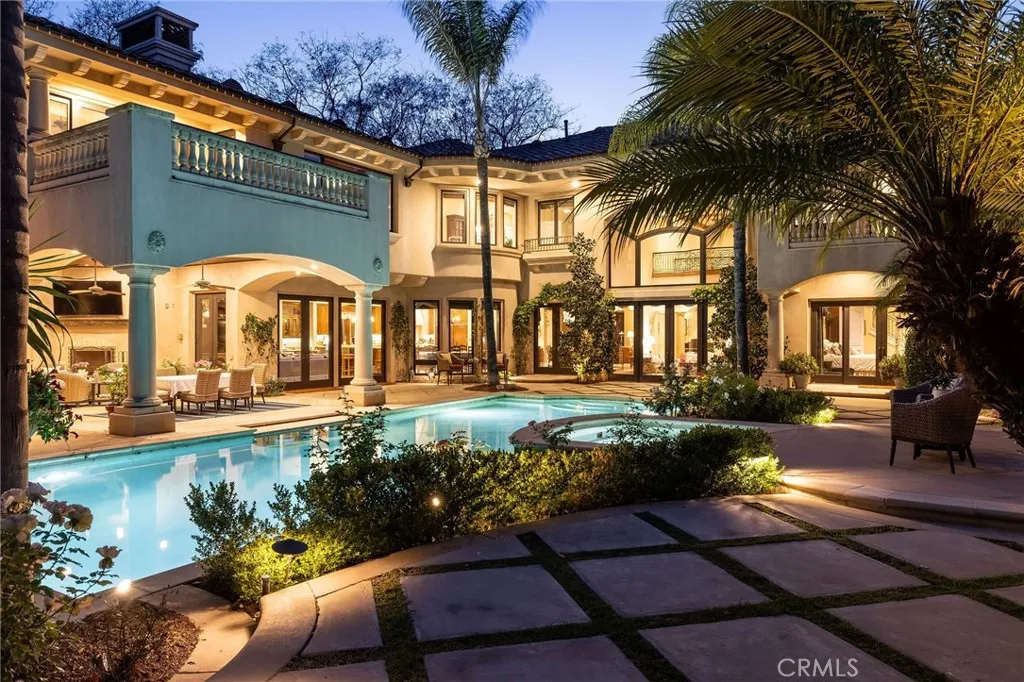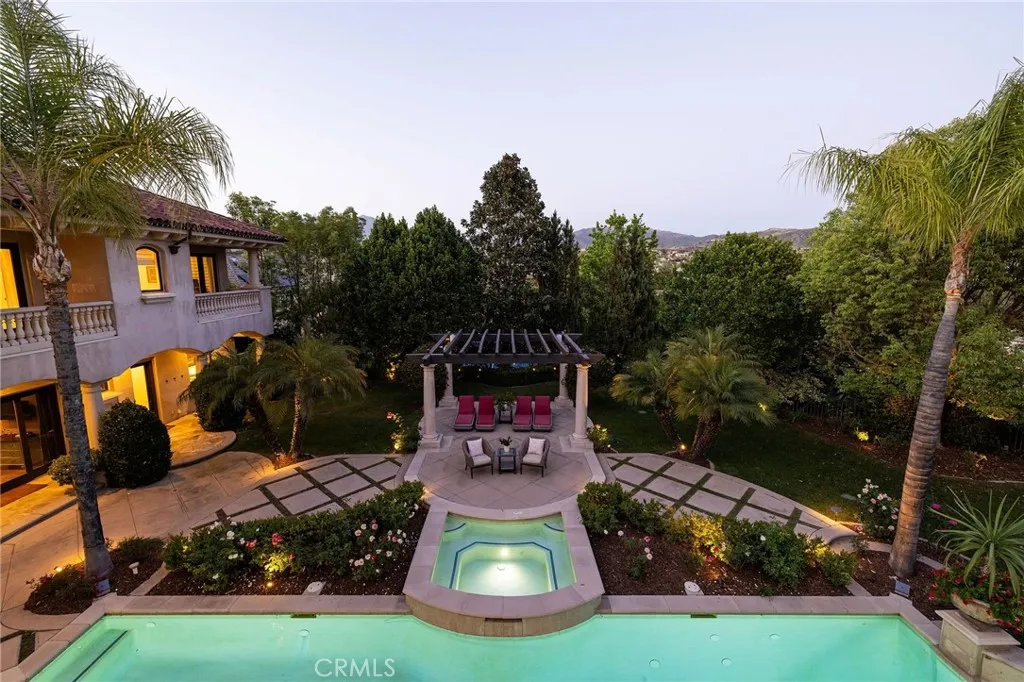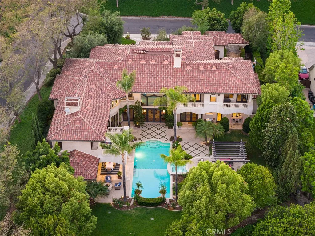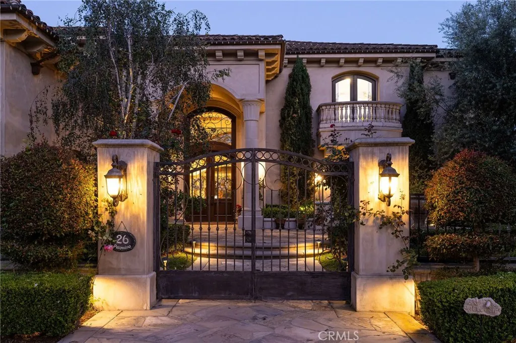 Welcome to 26 Palomino, located within the highly desirable guard-gated community of Coto de Caza. Set on approximately 1 acre in the Woods neighborhood, this custom estate offers 6 beds/7 baths with timeless architectural detail throughout. Upon arrival you see the lush Mediterranean curb appeal with a gated court yard and a gated motor court with porte-cochere leading to a 6.5-car garage. From the moment you enter the home, you’re greeted by soaring two-story ceilings, a stunning rotunda above the staircase, and walls of doors and windows that frame the backyard and flood the home with natural light. Rich wood and stone flooring, solid wood doors, detailed molding, and beautiful arched hallways carry throughout much of the home. The expansive kitchen features a large island, high-end appliances, double dishwashers, and a bright breakfast nook detailed with bay windows. It opens seamlessly to an oversized family room with soaring beamed ceilings, wood floors, and a statement fireplace. A wine cellar, full walk-in pantry, and abundant storage add both function and convenience. Equally impressive, the living room has a stunning fireplace and soaring ceilings, dining room with a lighted inset ceiling, and an office with floor-to-ceiling woodwork and coffered ceilings. Additional downstairs highlights include a downstairs bedroom with en-suite bath, dual staircases, and an oversized laundry room. Upstairs, the primary suite is its own private sanctuary, featuring a sitting area, fireplace, balcony with hillside and mountain views, 2 additional flex rooms, and a spacious walk-in closet. The primary bath offers dual vanities and an additional seated vanity, a soaking tub, oversized shower, and two water closets. The upstairs is completed by 4 additional bedrooms each with their own dedicated bathrooms and walk-in closets, along with a theater room with stadium seating. The backyard is a true retreat, complete with a resort-style pool and spa, gazebo, covered outdoor kitchen and entertaining area with fireplace, built-in BBQ, refrigerator, side burner, expansive lawn, and beautiful views of the Coto hillsides and mountains. This is an exceptional opportunity to make 26 Palomino your home.