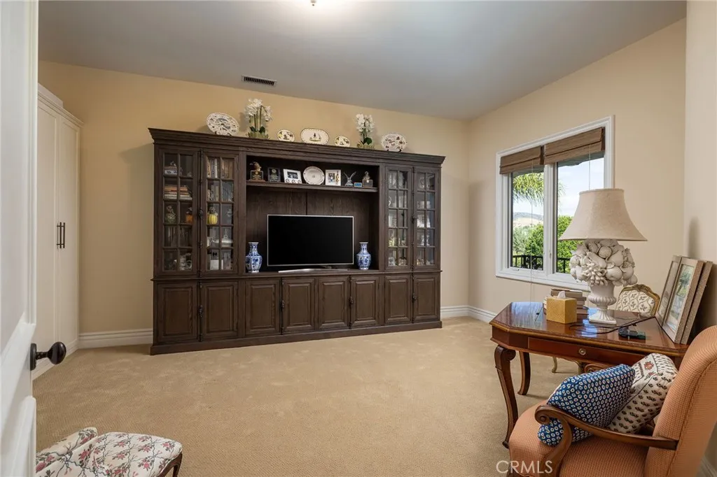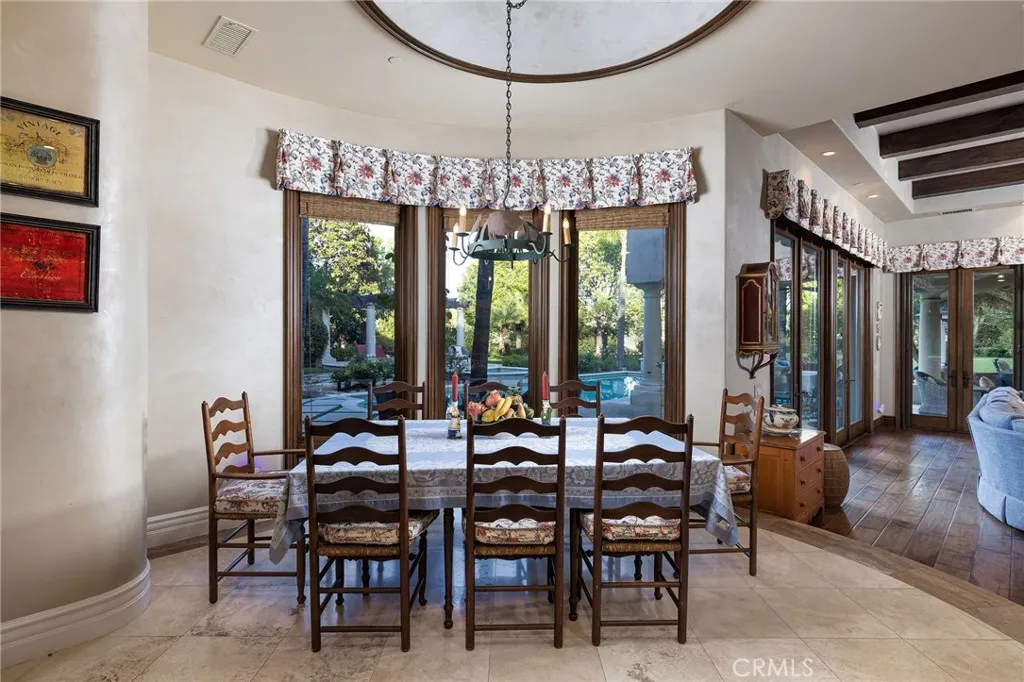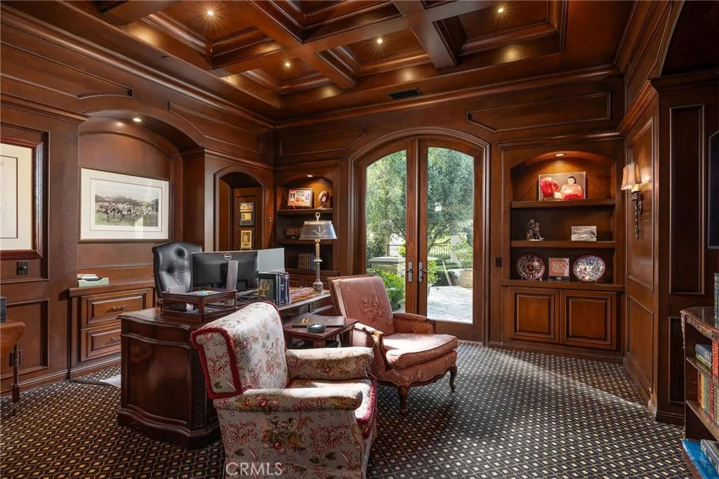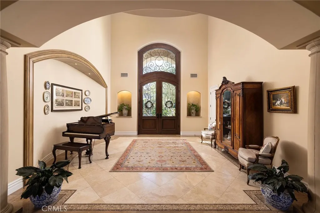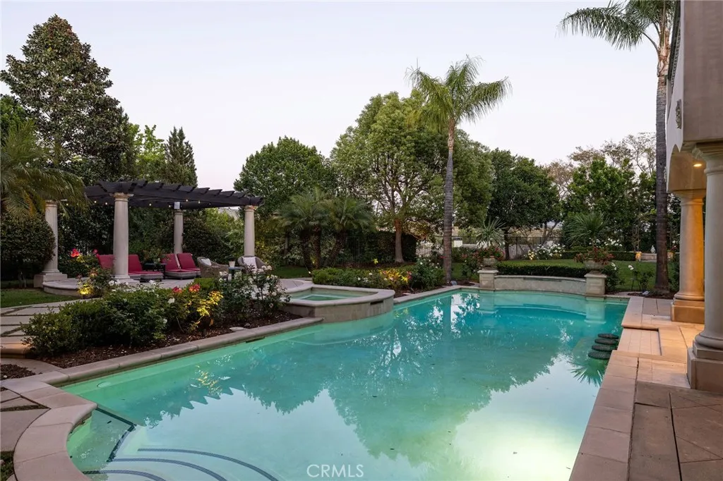 Welcome to 26 Palomino, located within the highly desirable guard-gated community of Coto de Caza. Set on approximately 1 acre in the Woods neighborhood, this custom estate offers 6 beds/7 baths with timeless architectural detail throughout. Upon arrival you see the lush Mediterranean curb appeal with a gated court yard and a gated motor court with porte-cochere leading to a 6.5-car garage. From the moment you enter the home, you’re greeted by soaring two-story ceilings, a stunning rotunda above the staircase, and walls of doors and windows that frame the backyard and flood the home with natural light. Rich wood and stone flooring, solid wood doors, detailed molding, and beautiful arched hallways carry throughout much of the home. The expansive kitchen features a large island, high-end appliances, double dishwashers, and a bright breakfast nook detailed with bay windows. It opens seamlessly to an oversized family room with soaring beamed ceilings, wood floors, and a statement fireplace. A wine cellar, full walk-in pantry, and abundant storage add both function and convenience. Equally impressive, the living room has a stunning fireplace and soaring ceilings, dining room with a lighted inset ceiling, and an office with floor-to-ceiling woodwork and coffered ceilings. Additional downstairs highlights include a downstairs bedroom with en-suite bath, dual staircases, and an oversized laundry room. Upstairs, the primary suite is its own private sanctuary, featuring a sitting area, fireplace, balcony with hillside and mountain views, 2 additional flex rooms, and a spacious walk-in closet. The primary bath offers dual vanities and an additional seated vanity, a soaking tub, oversized shower, and two water closets. The upstairs is completed by 4 additional bedrooms each with their own dedicated bathrooms and walk-in closets, along with a theater room with stadium seating. The backyard is a true retreat, complete with a resort-style pool and spa, gazebo, covered outdoor kitchen and entertaining area with fireplace, built-in BBQ, refrigerator, side burner, expansive lawn, and beautiful views of the Coto hillsides and mountains. This is an exceptional opportunity to make 26 Palomino your home.