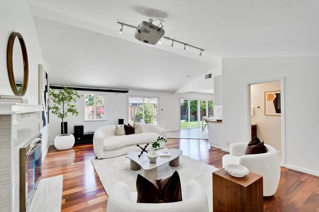 Welcome to a masterfully refreshed single-story residence, Nestled in a peaceful, tree-lined pocket of Willow Glen surrounded by community landmarks, this home offers an unparalleled sense of tranquility and neighborhood belonging. Step inside to a voluminous open-concept layout defined by soaring vaulted ceilings and bathed in the crisp. Oversized sliding glass doors creates a fluid transition to the lush backyard. Whether hosting in the light-filled great room or relaxing under the vibrant bougainvillea-framed patio, the harmony between the polished hardwoods and the natural exterior is seamless. Eco-Conscious Power: Equipped with Solar Panels, significantly reducing energy costs while supporting a sustainable future. Modern Amenities: High-end aesthetic touches throughout ensure the home is move-in ready, featuring a cinema-ready projection setup perfect for the tech-forward enthusiast. Prime location near parks, churches, top commute access, shopping, and sought-after schools. A wonderful place to call home!