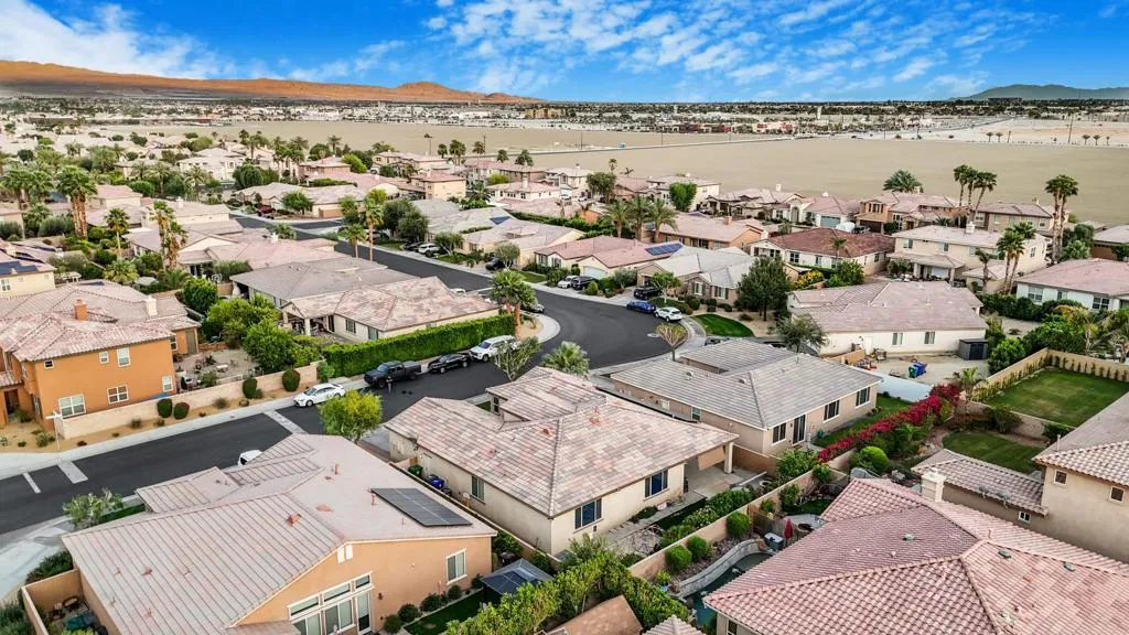 Welcome to 41311 Villa Terracina in the beautiful city of Indio Ca, nestled in the vibrant community of Palazzo. Your dream of home ownership becomes reality here. This charming 4 bedroom 2.5 bath residence is perfect for growing families and first time home buyers seeking comfort, as you enter the front door you will enter into a huge living room with a custom built in media center, kitchen has recessed lighting, lots of cabinet space, walk in pantry, large kitchen island with breakfast bar, granite counters. Retreat to the large master suite, which boasts a walk-in closet, a luxurious soaking tub, and a separate shower, backyard has a nice covered private patio for entertaining. Home has solar panels, garage is a 3 car garage. Conveniently located close to the freeway, schools, parks, shopping and restaurants.