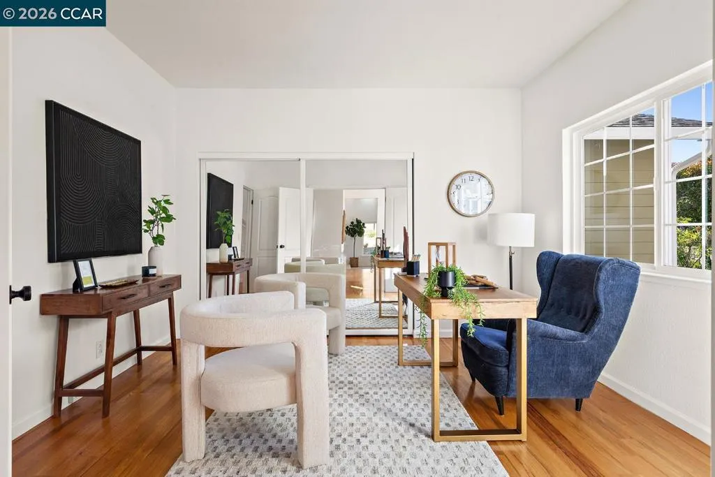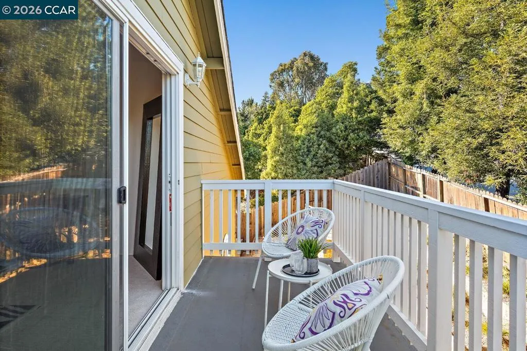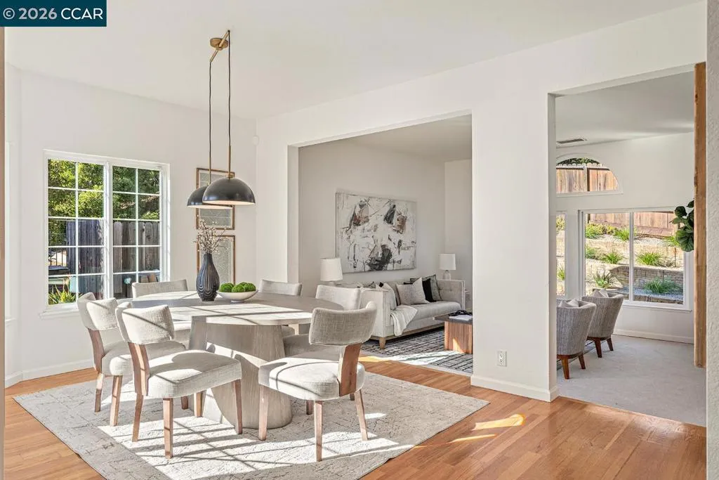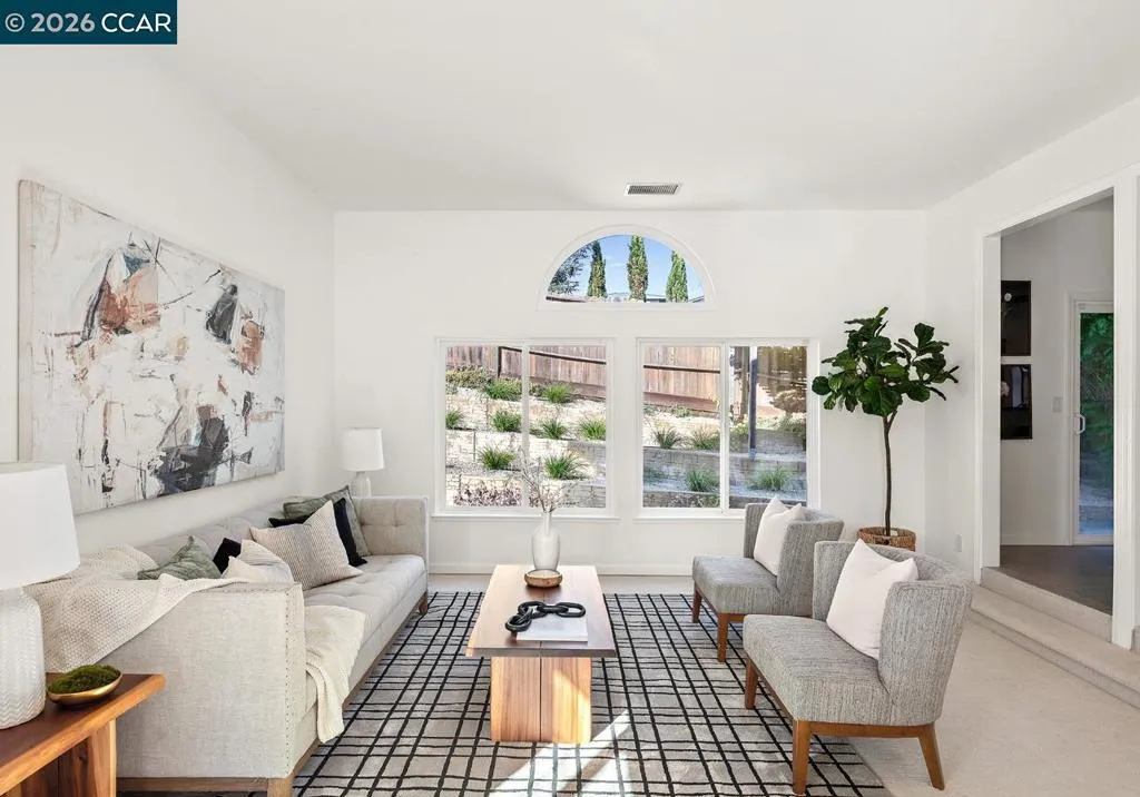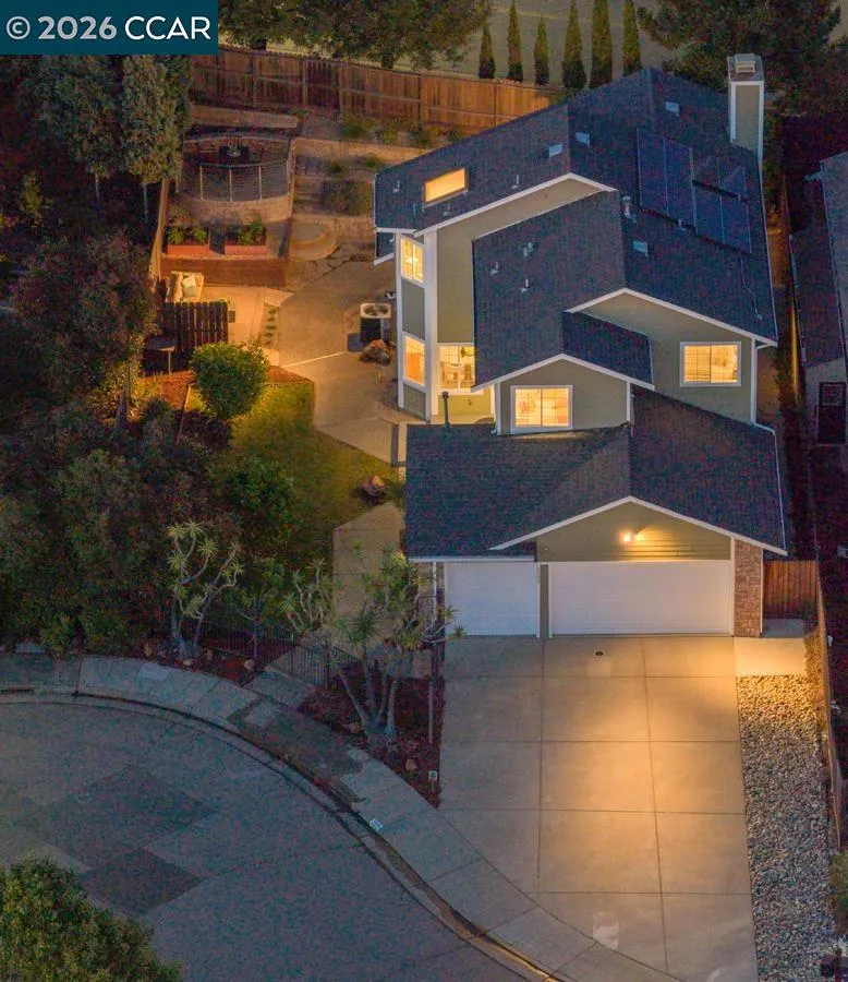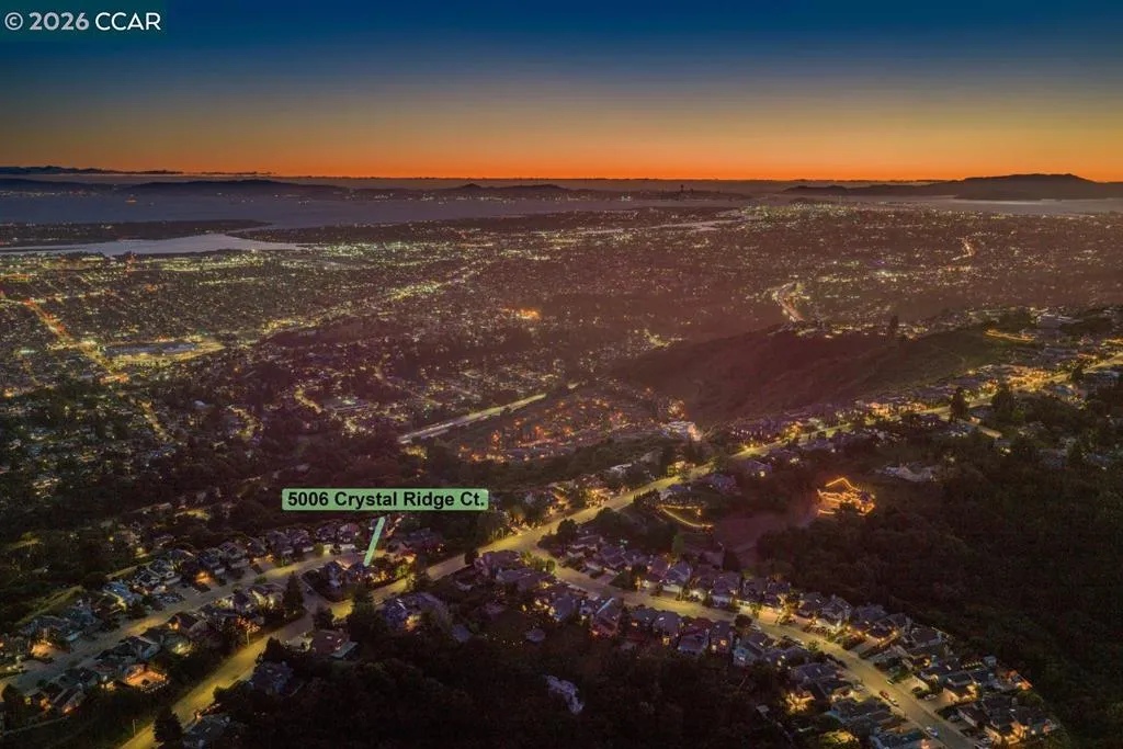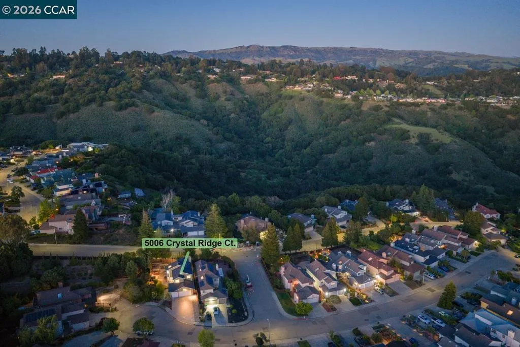 Welcome to 5006 Crystal Ridge Court, located on a cul-de-sac in the coveted Ridgemont neighborhood, a light-filled 4-bedroom, 3-bath home with a three-car garage, offering an open, easy flow in a peaceful hillside setting. Fresh interior paint, hardwood floors, updated lighting, and new carpet create a cohesive, refreshed feel throughout. The main level features a spacious kitchen with stainless steel appliances and a breakfast bar, opening to inviting living and family rooms with a fireplace and direct backyard access. A bedroom or office and full bath complete this level. Upstairs, the primary suite offers a walk-in closet, spa-like bath, and bonus flex space, along with two additional bedrooms and a hall bath with dual vanities. The wraparound yard features multiple sitting areas, fruit trees, terraced gardens, and a private, serene setting. A three-car garage with ample storage and solar panels enhances efficiency and everyday convenience. Located close to hiking trails, open space, and just minutes from Montclair Village. Open SAT & SUN