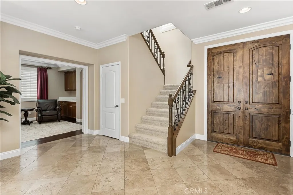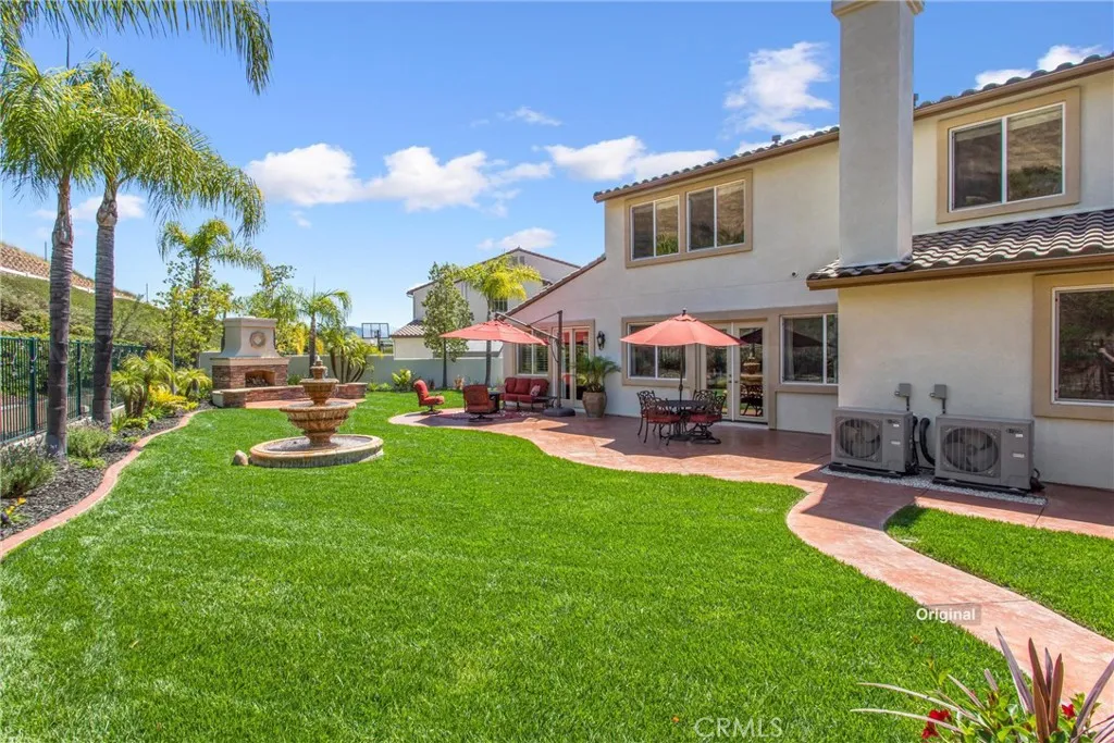 Perched at the end of a cul-de-sac in the highly sought-after Chapman Heights community, this exceptional residence is a true showcase of pride of ownership. Lovingly maintained and thoughtfully upgraded by its original owner, every inch of this home reflects incredible care, attention, and investment throughout the years. Step inside to expansive formal living and dining spaces, filled with natural light and perfectly positioned to capture serene, unobstructed views of the beautifully landscaped backyard. The heart of the home unfolds in the inviting great room, where the kitchen, dining, and family areas come together seamlessly—creating an ideal setting for both everyday living and memorable gatherings. The updated kitchen is as functional as it is beautiful, featuring granite countertops, an oversized island, and new stainless steel appliances including a double wall oven, gas cooktop, and dishwasher. A generous walk-in pantry and charming breakfast nook complete the space, all opening to the warm and welcoming family room with a cozy gas fireplace and direct access to the backyard. A true highlight of the home is the expansive downstairs primary suite—a private retreat offering a double-sided fireplace, comfortable sitting area with a convenient wet bar, and a spacious ensuite bath complete with dual vanities, soaking tub, glass-enclosed walk-in shower, and an impressive dual walk-in closet. Upstairs offers plush carpeting, a versatile loft ideal for a media room, home office, or additional living space, and three generously sized bedrooms—each with walk-in closets—along with two full bathrooms, both offering double sinks and shower/tub combinations. Upgrades include fresh exterior paint, 3 new A/C units, updated kitchen appliances, newer garage doors, plantation shutters, crown molding, custom interior paint, hardwood and travertine flooring downstairs, a custom wood and wrought iron staircase, and a newer oversized water heater. Step outside to your own private backyard retreat, thoughtfully designed for both entertaining and relaxation. Enjoy the fully equipped outdoor kitchen featuring a Fire Magic BBQ, granite countertops, and refrigerator. Gather around the custom fireplace with built-in seating, or unwind to the soothing ambiance of the stunning three-tier cascading fountain. A side yard with Tuff Shed and a 3-car garage with built-in storage complete this remarkable home. Ideally located near shopping, dining, and freeways.