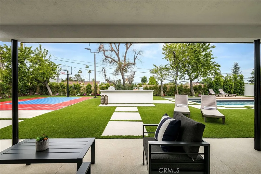 Available May 20, 2026. Offered fully furnished, this long or short term rental property (3 month min) offers everything desired in a luxury rental. A perfectly reimagined mid-century architectural find, found in the loveliest of neighborhoods, and appropriately situated in a peaceful cul-de-sac. Completely remodeled, yet retaining all the character and authentic feel, so difficult to find in new construction! With gracious and expansive curb appeal, and inviting front porch, this home does not disappoint, leading you into a beautifully appointed entry, with a spacious yet cozy office to your left, and the true heart of the home, the welcoming kitchen and family room, complete with original fireplace and tile. Designed for entertaining, this home features a dining room true to period with informal sitting area. All the main living areas feature sliders, opening out into the spectacular, ultra private backyard oasis, complete with sparkling pool, basketball court, fire pit area, outdoor kitchen and seating, with significant outdoor lounging and dining areas. No unchecked boxes here, this is a true family home with all of your entertainment needs exceeded. Your primary retreat, complete with its own outdoor patio, is located at the far end of the house, offering privacy, with significant built-in closets and storage and dressing areas, including built in vanity, and gorgeous bath. Both secondary bedrooms are en-suite, both spacious and with extensive storage and light. A convenient side entrance opens to gorgeous and very convenient, mudroom and laundry, with a guest bathroom.