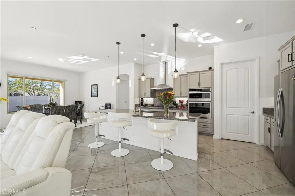 This 2-bed home in Rancho Mirage at Del Webb offers refined desert living with a private pool and spa, mountain views, and upgraded interiors, all within a premier 55+ gated community known for its resort-style amenities and active lifestyle. Welcome to 61 Cabernet in Del Webb Rancho Mirage. This 2-bedroom, 2-bath residence features a thoughtfully designed open-concept layout with seamless flow between the great room, dining area, and kitchen, creating a comfortable and functional living environment. The kitchen is well-appointed with granite countertops, upgraded cabinetry, a spacious peninsula with seating, and a walk-in pantry, offering both convenience and connection to the main living space. Interior highlights include porcelain tile flooring, custom window treatments, ceiling fans, and a built-in surround sound system in the great room. The primary suite includes a spacious walk-in closet and an ensuite bath with dual vanities and a glass-enclosed shower. The guest bedroom is positioned on the opposite side of the home, providing privacy with easy access to a nearby full bathroom. A dedicated laundry room with washer and dryer, leased solar, and a 2-car garage add to the home’s functionality. The outdoor space is designed for everyday enjoyment, featuring a covered patio, private pool and spa, built-in speakers, and mountain views. The yard offers a peaceful setting for relaxing or entertaining. Del Webb Rancho Mirage provides access to a clubhouse, resort-style pool and spa, fitness center, tennis courts, pickleball courts, bocce ball, and a variety of social activities. This 2-bed home in Rancho Mirage presents a well-balanced combination of comfort, design, and community living within a gated environment.