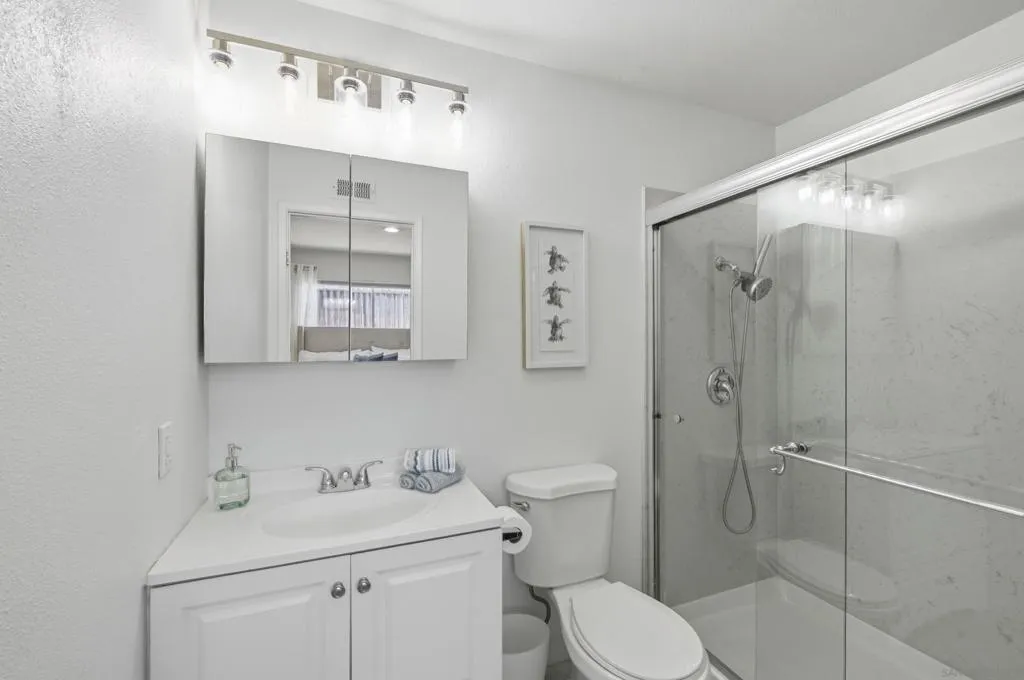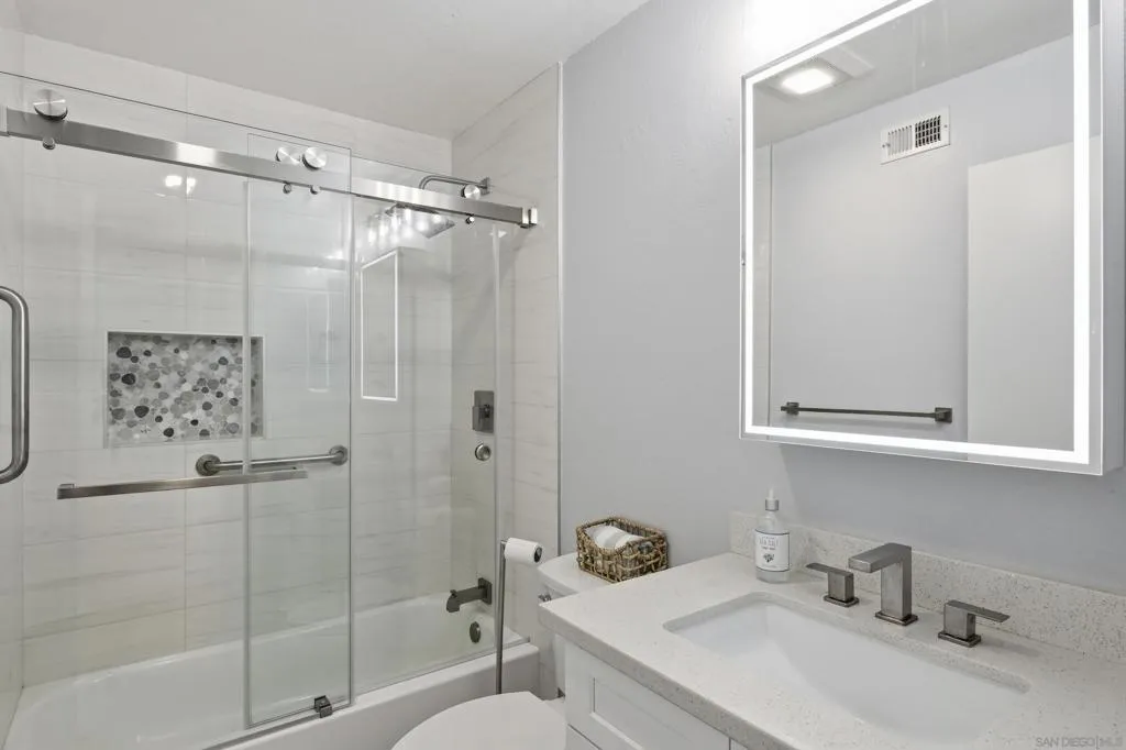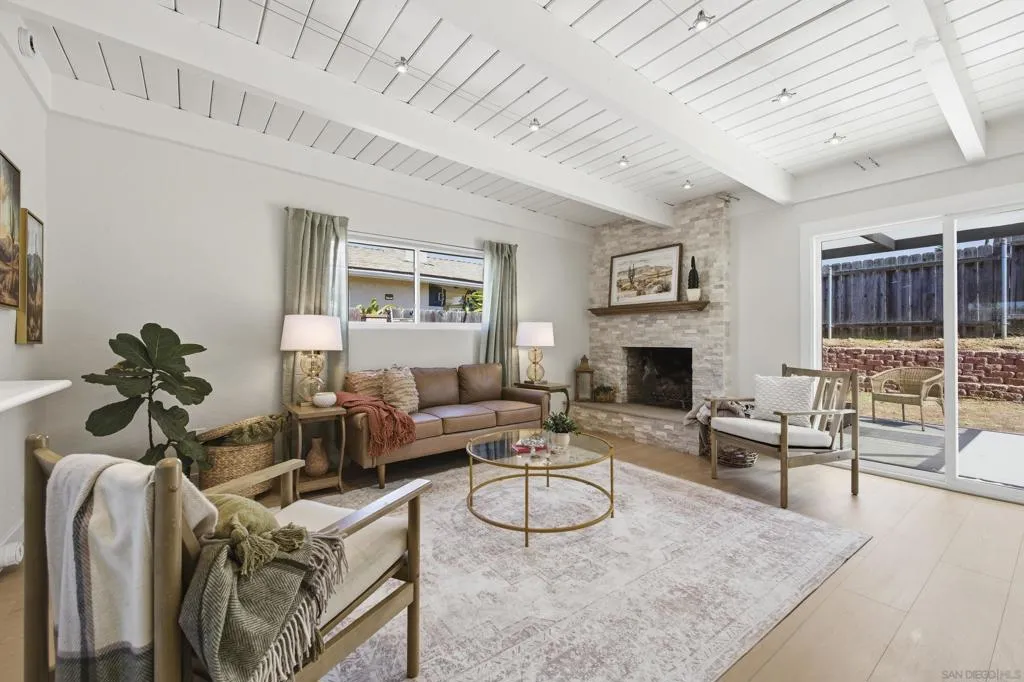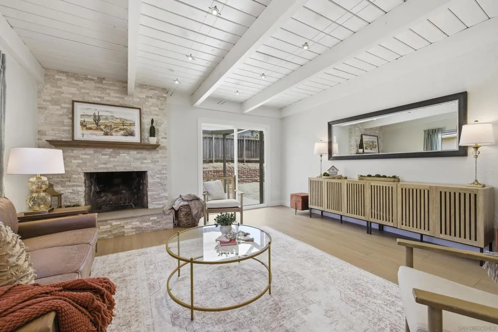 This beautifully reimagined 4-bedroom, 2-bathroom home has been completely transformed from its original design into a modern, move-in-ready space. Every room has been thoughtfully renovated, leaving no trace of the past—goodbye shag carpet, dated finishes, and popcorn ceilings. The result is a light, fresh, “like-new” home ready for its next chapter. Recent upgrades include a new roof, interior and exterior paint, dual-pane vinyl windows and sliding doors, luxury vinyl plank flooring throughout, updated baseboards, and fully renovated bathrooms. The kitchen is a standout feature, showcasing a stunning waterfall-edge island, stainless steel appliances, and an open, functional layout. A stacked stone fireplace and recessed lighting add warmth and style to the main living space. Ideally located, this home offers convenient access—approximately 10 to 20 minutes—to major employers and hubs including Qualcomm, Apple, Google, UCSD, Miramar Naval Air Station, and the biotech corridor of Sorrento Valley.