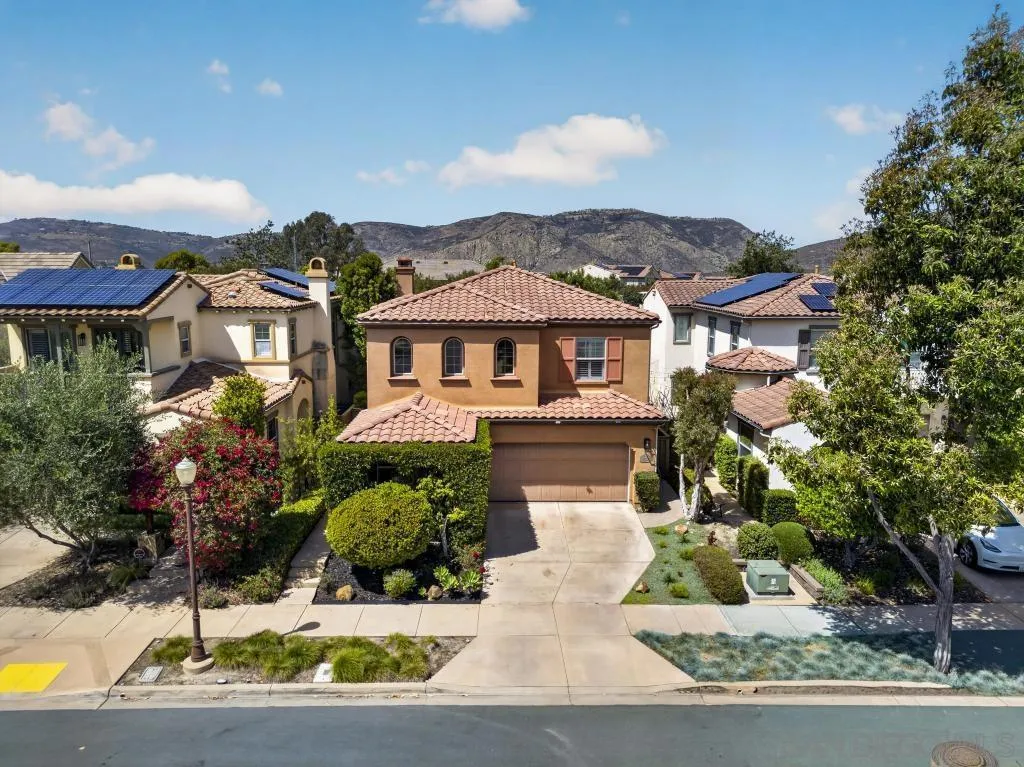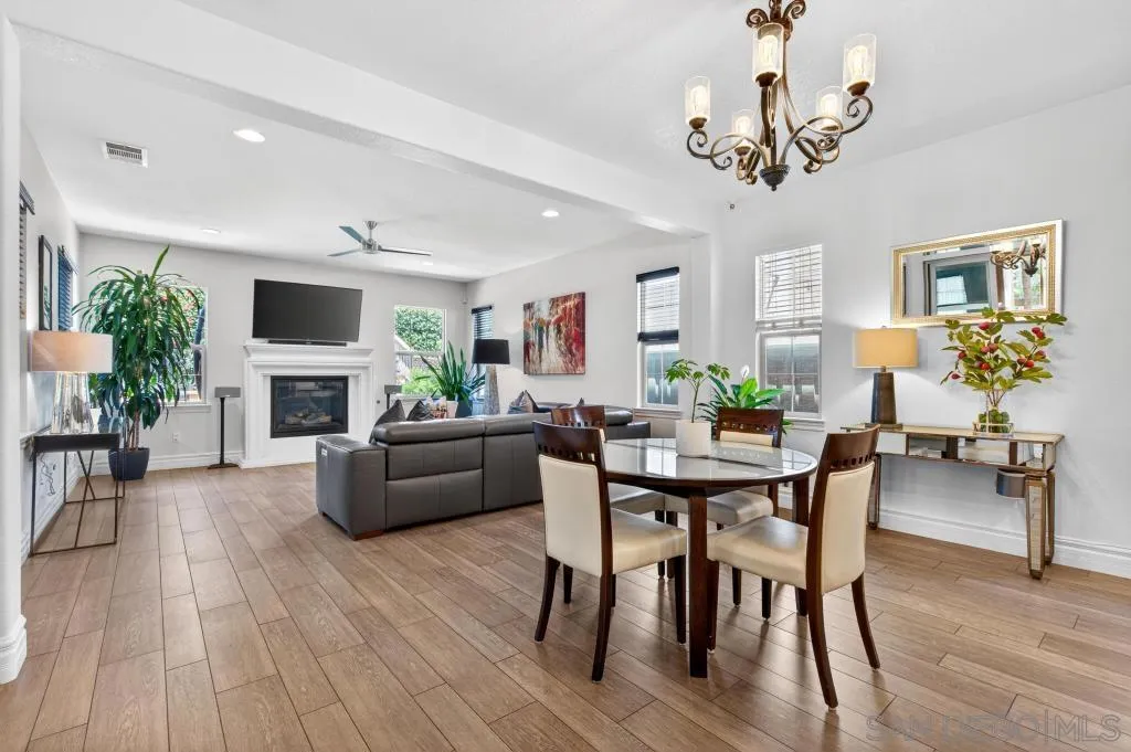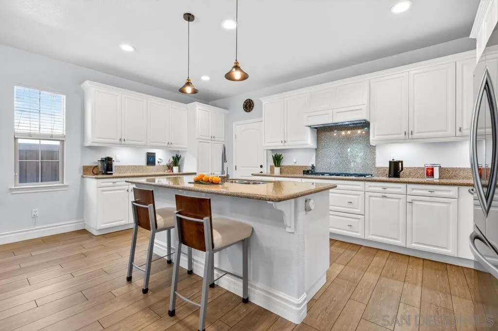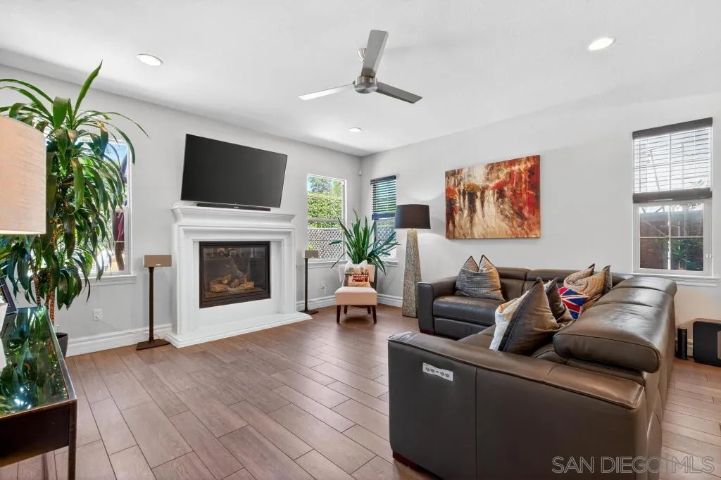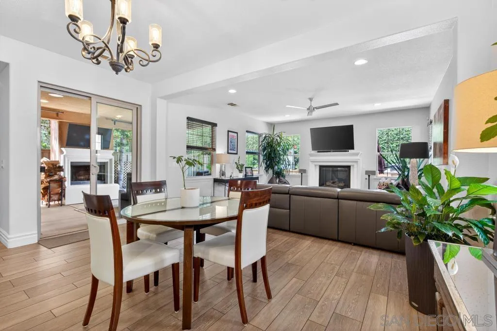 Gorgeous Del Sur home with modern renovations! Grand entry with soaring ceilings open to the upstairs. Entertain in great room concept living including access to the private yard with covered patio complete with outdoor fireplace, above ground spa and always green and easily maintained turf. Upgraded kitchen features granite counters, modern white cabinets, stainless appliances and huge center island. Full bedroom with it's own entry and full bathroom downstairs! 4 bedrooms upstairs including the oversized primary bedroom and bathroom with soaking tub and huge walk in closet. Newer high end LVP flooring throughout. Del Sur includes pools, parks, open green spaces, community events and clubhouse! Close to shopping and part of the award winning Poway Unified School District!