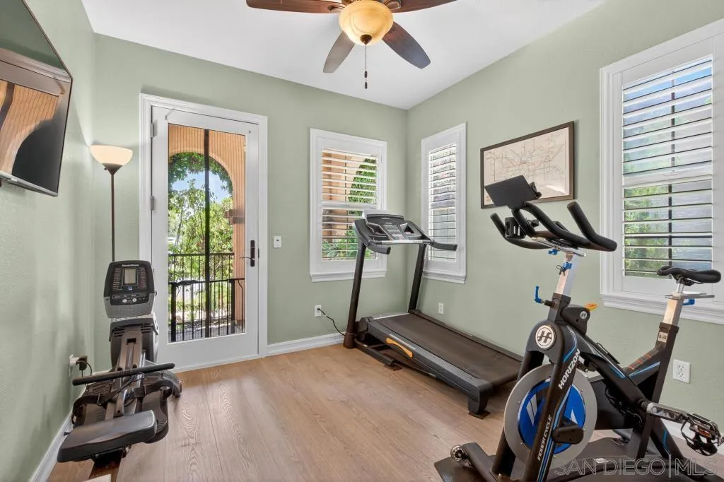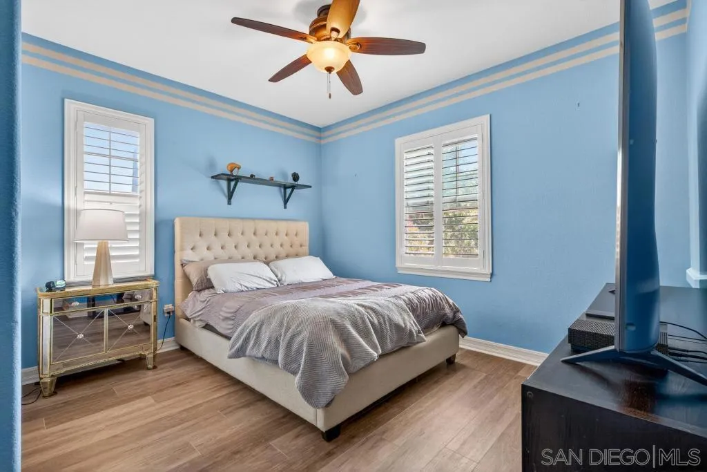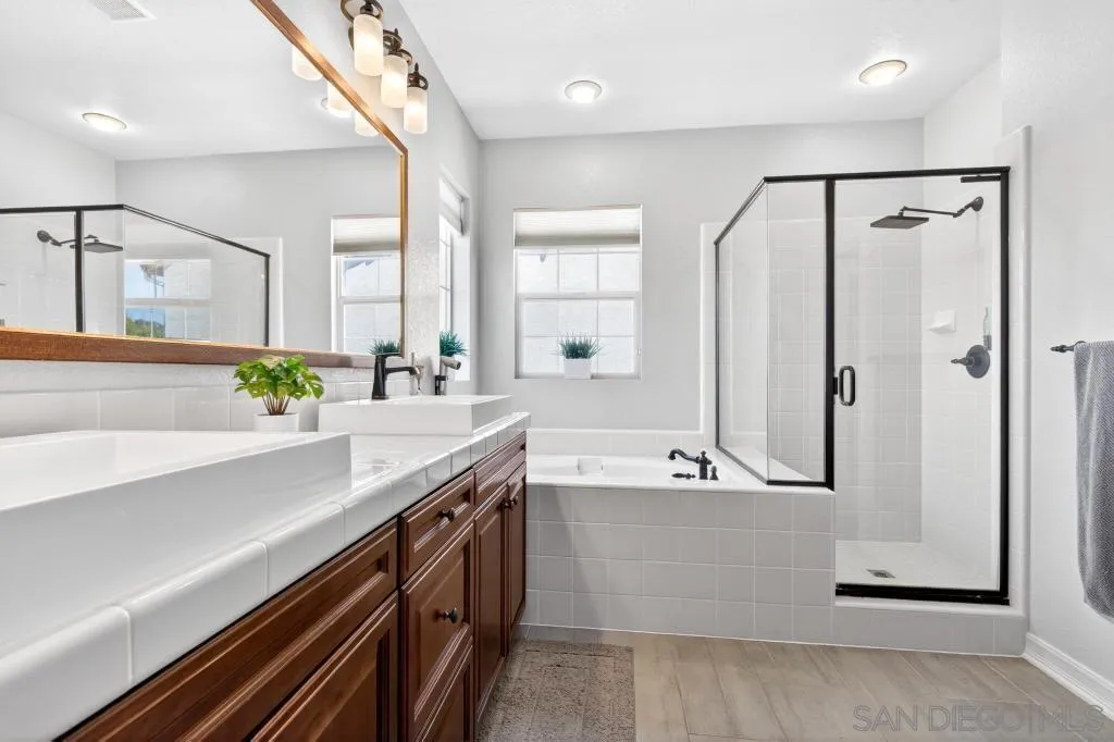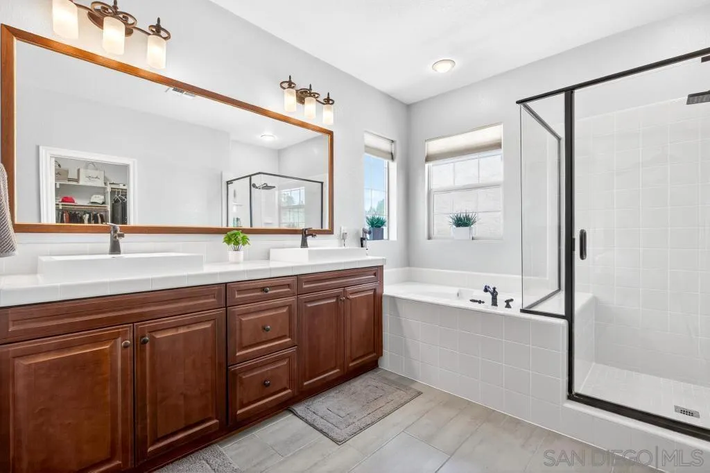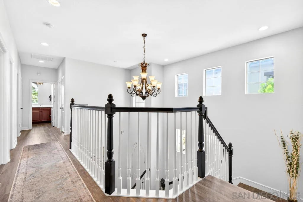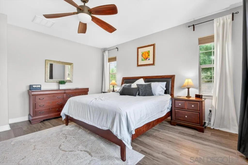 Gorgeous Del Sur home with modern renovations! Grand entry with soaring ceilings open to the upstairs. Entertain in great room concept living including access to the private yard with covered patio complete with outdoor fireplace, above ground spa and always green and easily maintained turf. Upgraded kitchen features granite counters, modern white cabinets, stainless appliances and huge center island. Full bedroom with it's own entry and full bathroom downstairs! 4 bedrooms upstairs including the oversized primary bedroom and bathroom with soaking tub and huge walk in closet. Newer high end LVP flooring throughout. Del Sur includes pools, parks, open green spaces, community events and clubhouse! Close to shopping and part of the award winning Poway Unified School District!