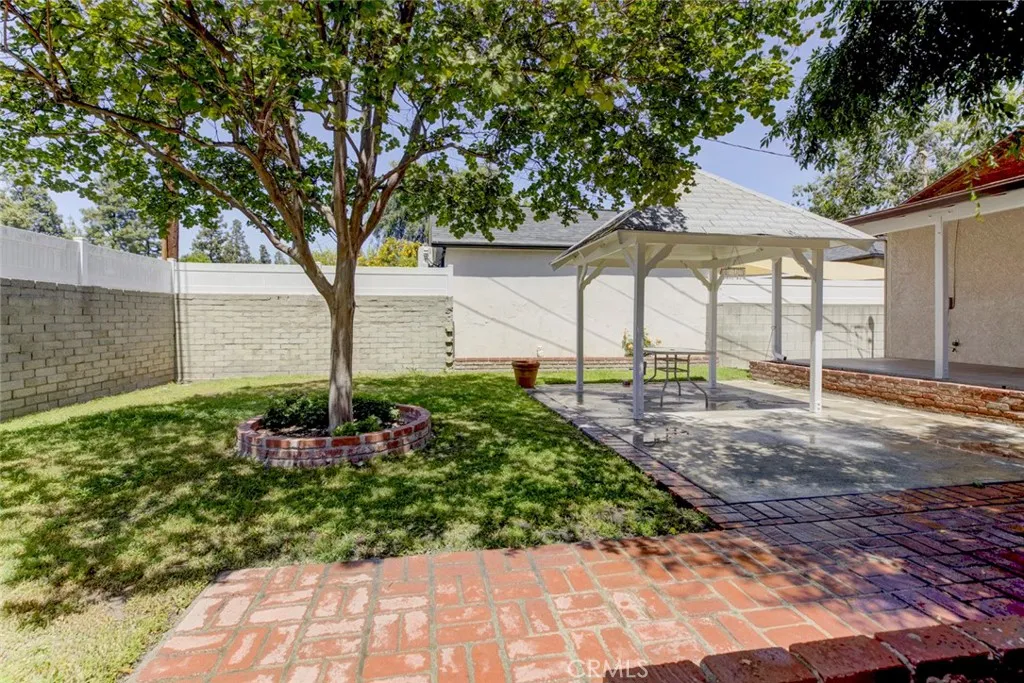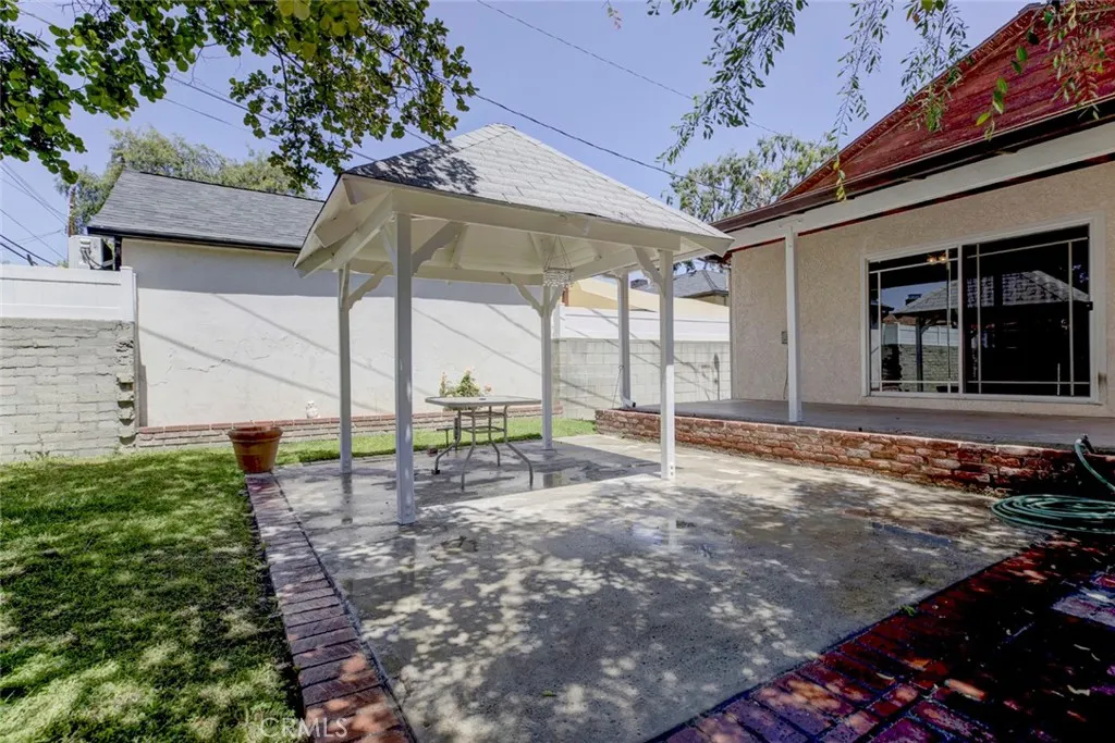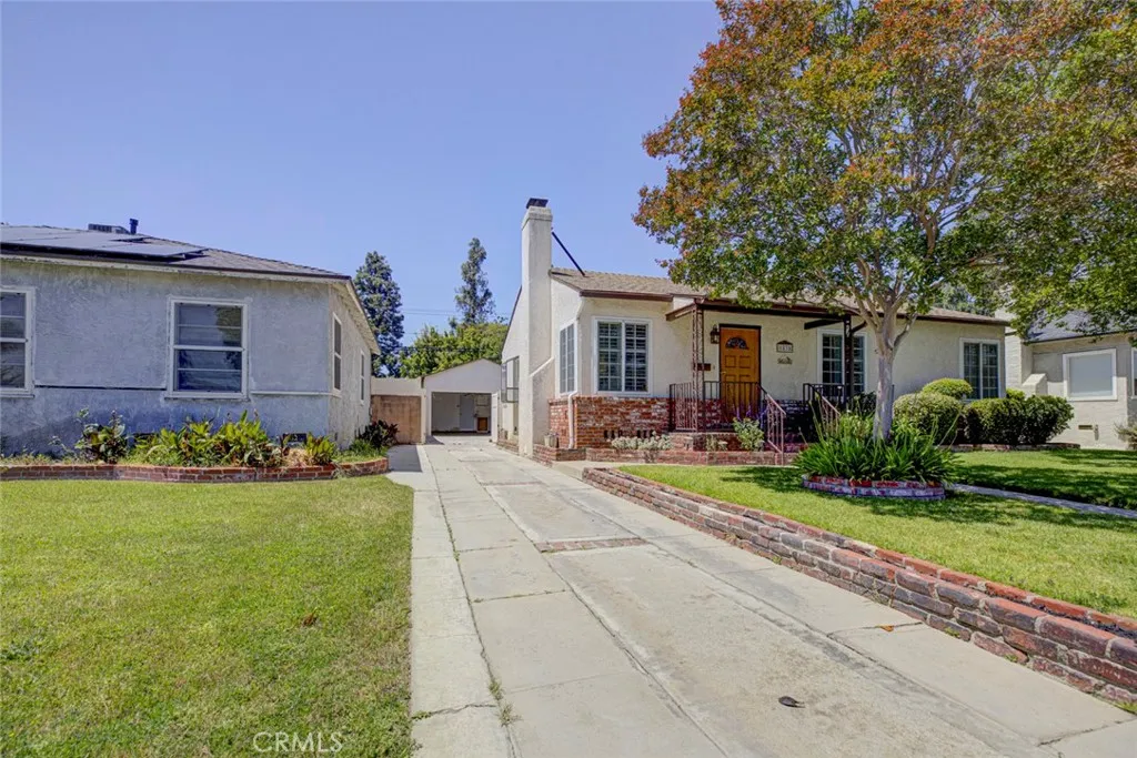Charming and well-loved this 3 bed 2 bath home is in a highly desirable neighborhood with an ideal layout for everyday living and entertaining. This property features newly refinished real hardwood flooring, fresh interior paint, custom shutters and timeless charm throughout. The thoughtful floor plan includes a spacious primary suite with an en-suite bathroom, along with two additional bedrooms that provide flexibility for family, guests or home office. The large family room with soaring open beam ceilings is right off the kitchen. It opens seamlessly to the backyard, creating a true indoor-outdoor living experience. Step outside to a covered patio that spans the width of the home, (almost 27 feet) perfect for gatherings. Just beyond the covered patio is an adorable free standing pergola that adds charm and function for outdoor dining events. Additional highlights include a detached two car garage with finished walls and a built-in-workbench making it a versatile and functional space. The property offers abundant storage, a long driveway for extra parking and gated entrance for added privacy. Generously sized grassy backyard with mature crepe myrtle shade trees that have gorgeous trunks. . Ideally located within walking distance to Bret Harte Elementary School, and Luther Burbank Middle School, this home combines comfort, convenience, and community. Updated HVAC in 2024. Fireplace is decorative