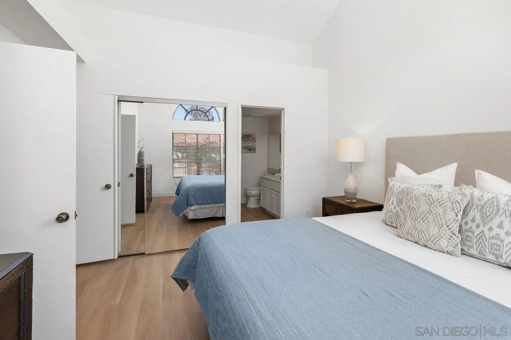 Exceptional upper corner residence in the highly sought-after Arborlake community of Carmel Valley. This light-filled single-level 2-bedroom, 2-bath home features soaring vaulted ceilings that create an open, airy ambiance throughout. Ideally positioned with tranquil lake views just outside your door, the home offers a rare blend of privacy, serenity, and natural beauty. Thoughtfully refreshed, the interior showcases new luxury vinyl plank flooring, fresh designer paint, air conditioning, and updated lighting, delivering a clean, modern aesthetic. The kitchen is appointed with granite countertops and stainless steel appliances, seamlessly opening to the main living area—perfect for both everyday living and effortless entertaining. Enjoy a premier location within Arborlake, known for its lush, park-like setting with scenic lakes, streams, and walking paths. Resort-style amenities include a clubhouse, pool, two spas, and tennis courts. Ideally located near shopping, dining, and Carmel Grove Park, and just minutes to Torrey Pines State Beach and major commuter routes. Situated within the boundaries of top-rated schools including Torrey Pines High School and Canyon Crest Academy. A rare opportunity to own in one of Carmel Valley’s most desirable communities.