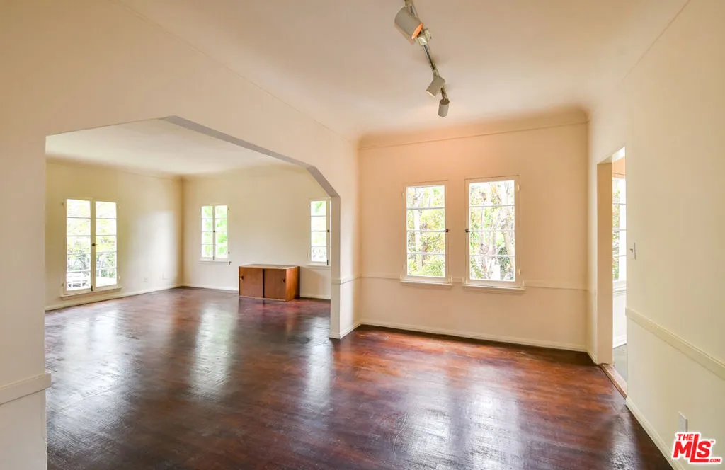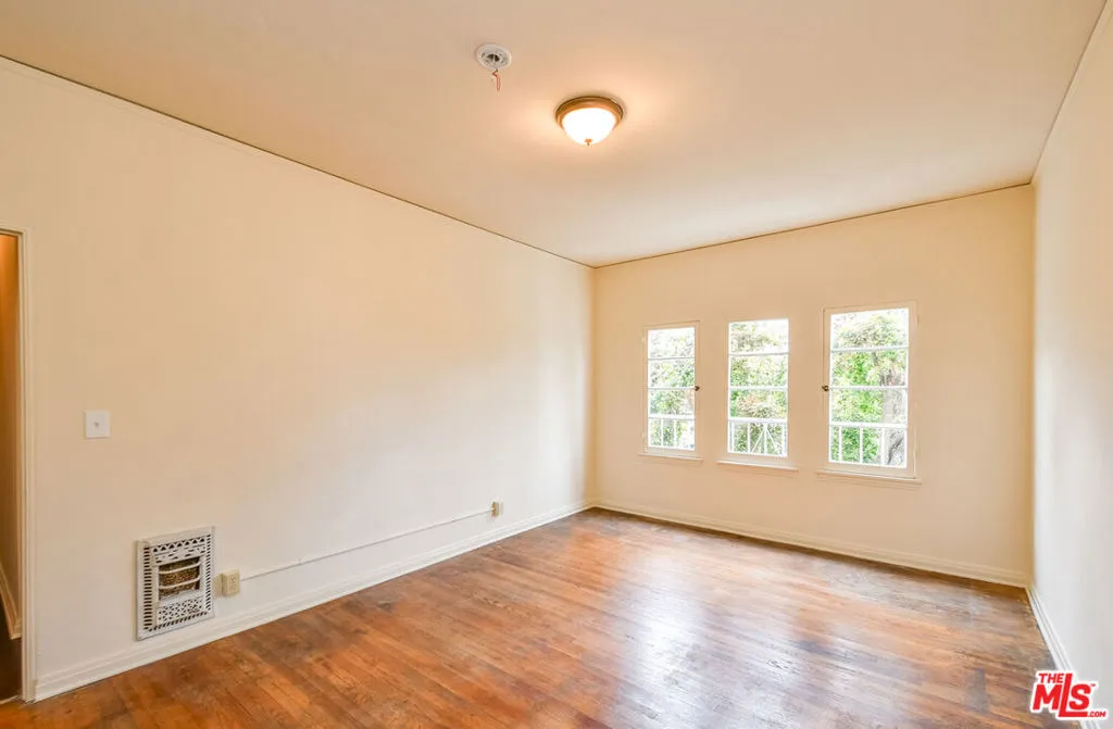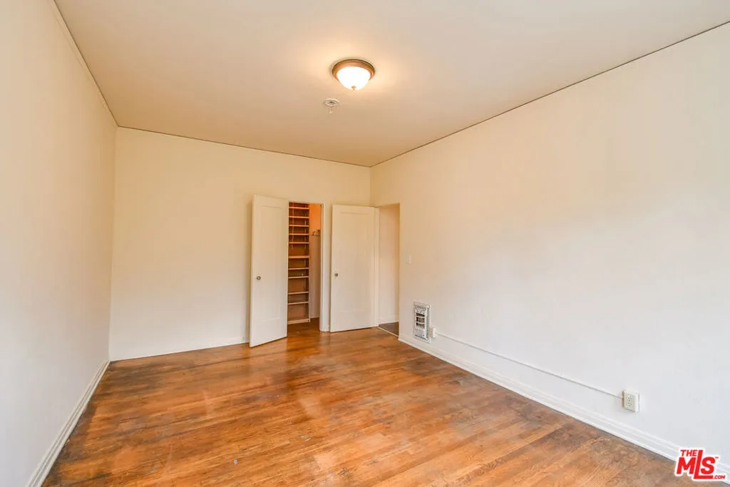 Charming 1930s Spanish-Deco style 1-bedroom/1-bath apartment with tons of storage space on the second floor of a six-unit building. Beautifully maintained with original details intact throughout. Features include hardwood floors, classic built-ins, and 3 walk-in closets. The bright, spacious living room flows into the formal dining room and charming kitchen with additional space for an eat-in nook. Brand new stove and refrigerator. The full bathroom showcases original 1930s tile with a fresh refinish on the bath tub and shower. A long hallway leads to the spacious bedroom, complete with a large walk-in closet. This lovely corner building is perfectly located near La Cienega and Melrose shops and dining, as well as the Melrose Place Farmers Market held every Sunday.
