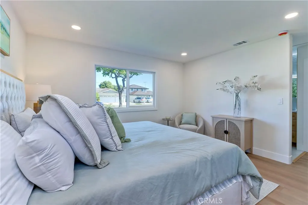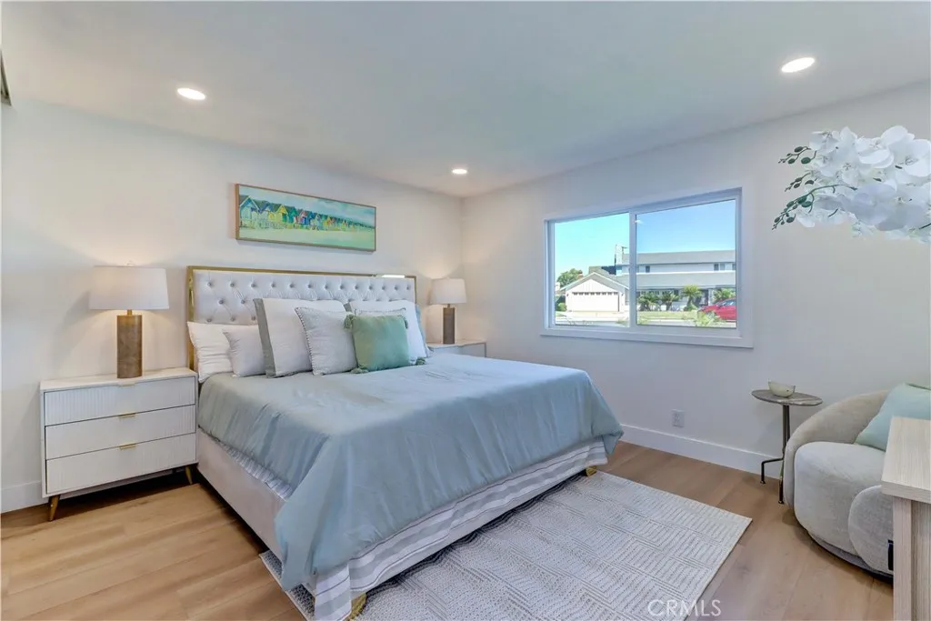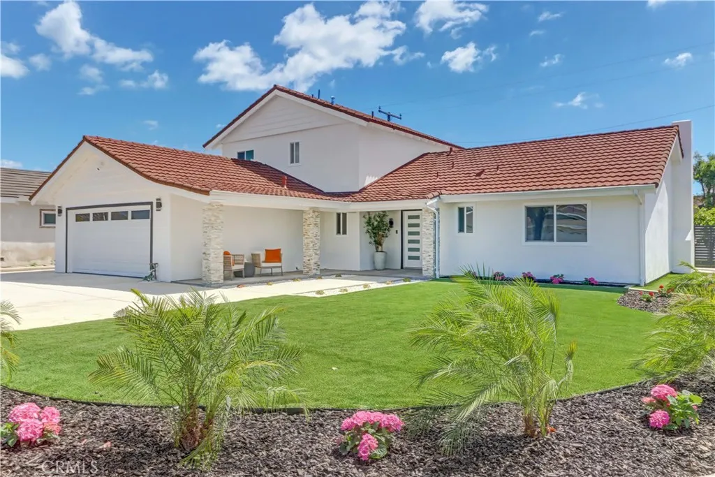 • Two Master Bedrooms — ideal for multi-generational living or guest accommodations . • Fully renovated 6-bedroom, 4-bath home on a desirable corner lot in Fountain Valley. Beautifully renovated and fully permitted, this spacious 6-bedroom, 4-bathroom home features a bright, open floor plan with modern upgrades throughout. The remodeled kitchen includes brand-new appliances and opens to the main living areas. All bedrooms and bathrooms have been tastefully updated, complemented by new interior and exterior paint, recessed lighting, and a contemporary fireplace. Smart-home features allow control of lighting, security cameras, and the HVAC system through the Alexa app. Major improvements include new windows, new doors, and a complete HVAC system. The finished garage with epoxy flooring adds additional functionality. Two newly added full bathrooms upstairs provide enhanced convenience for larger households. Exterior upgrades include new landscaping, a redesigned driveway for added privacy and curb appeal. Located near Mile Square Park, shopping, dining, major freeways, and the Little Saigon community, this move-in-ready home offers exceptional space, modern upgrades, and a prime Fountain Valley location.