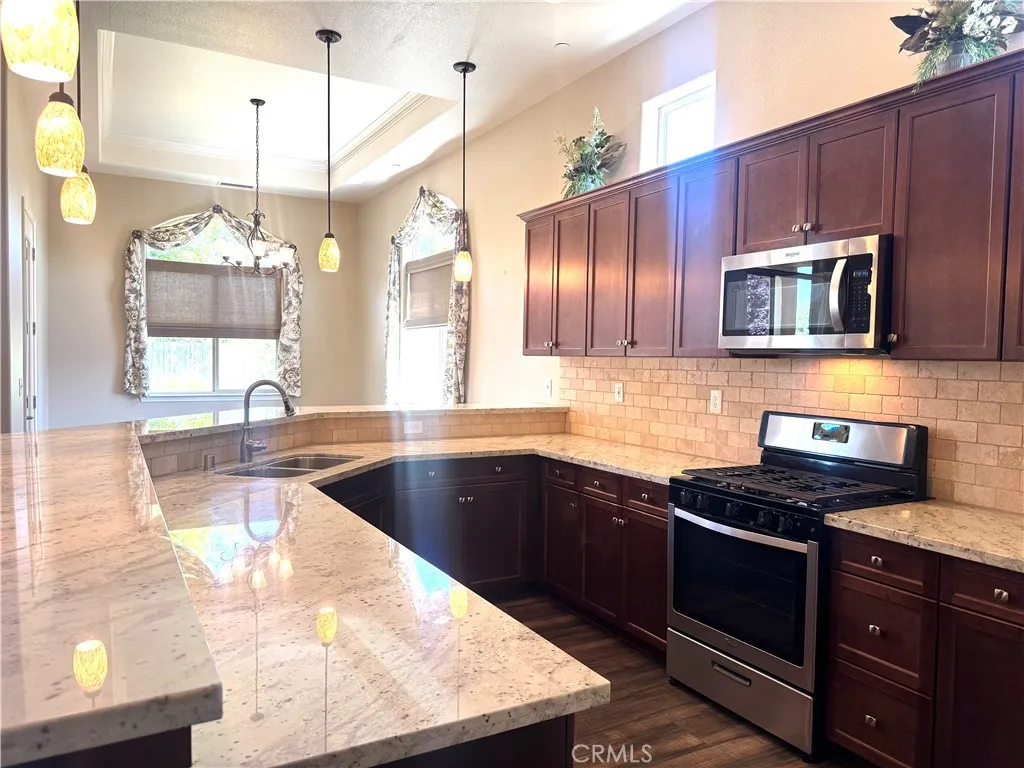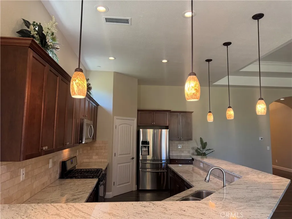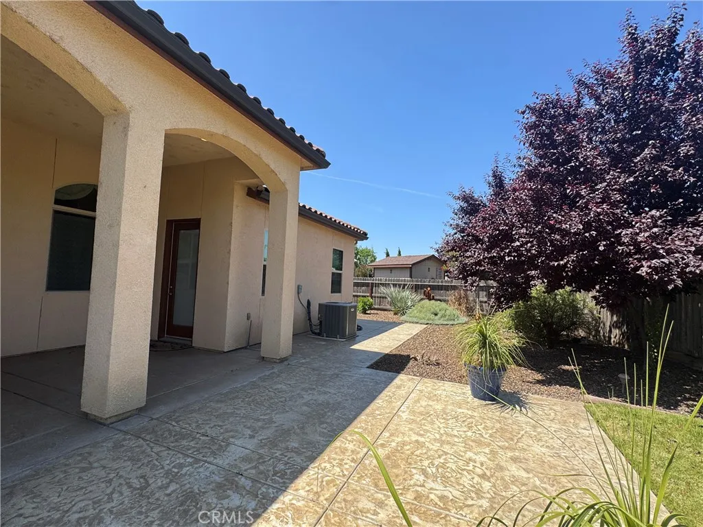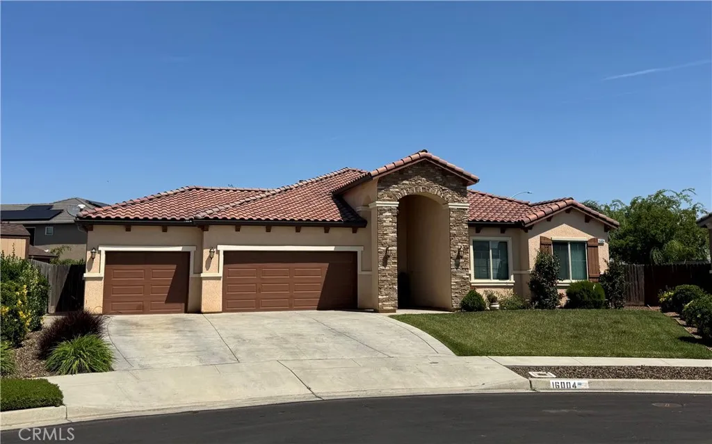 Beautiful, spacious 2267 SF home built in 2018 by Crown Homes. This turn key home has been lovingly cared for. Elegant wood look ceramic plank tile flooring, granite counter tops and tile work, large breakfast bar, open floor plan and extra large backyard with room for a pool. Spacious kitchen with a lot of cabinetry for storage, walk-in pantry and ample counter space to cook and entertain to your hearts content. High ceilings with tray ceiling details. Beautiful windows keeps the home bright and and full of natural light. Featuring 4 Bedrooms and 2 Baths. Primary Suite is quite roomy and En Suite bathroom is larger with dual vanities, walk-in glass shower, roomy, custom soaking tub and walk-in closet. Great lot size and shape at the end of a cul-de-sac and has had a lot of cement work and some is upgraded stamped concrete. Home features a three car garage and large driveway. Lot is fully landscaped in the front and back with mature plants and trees. Park like setting with large gazebo. Nice and quiet neighborhood. Bedroom community to Fresno and Madera, live in the country and commute to work in the city. Metal yard art, potted plants and floor rug not included. Convenient distance to shopping, restaurants and schools. This home is a must see and may sell quickly. Don't Miss Out.....Call today to schedule your showing!