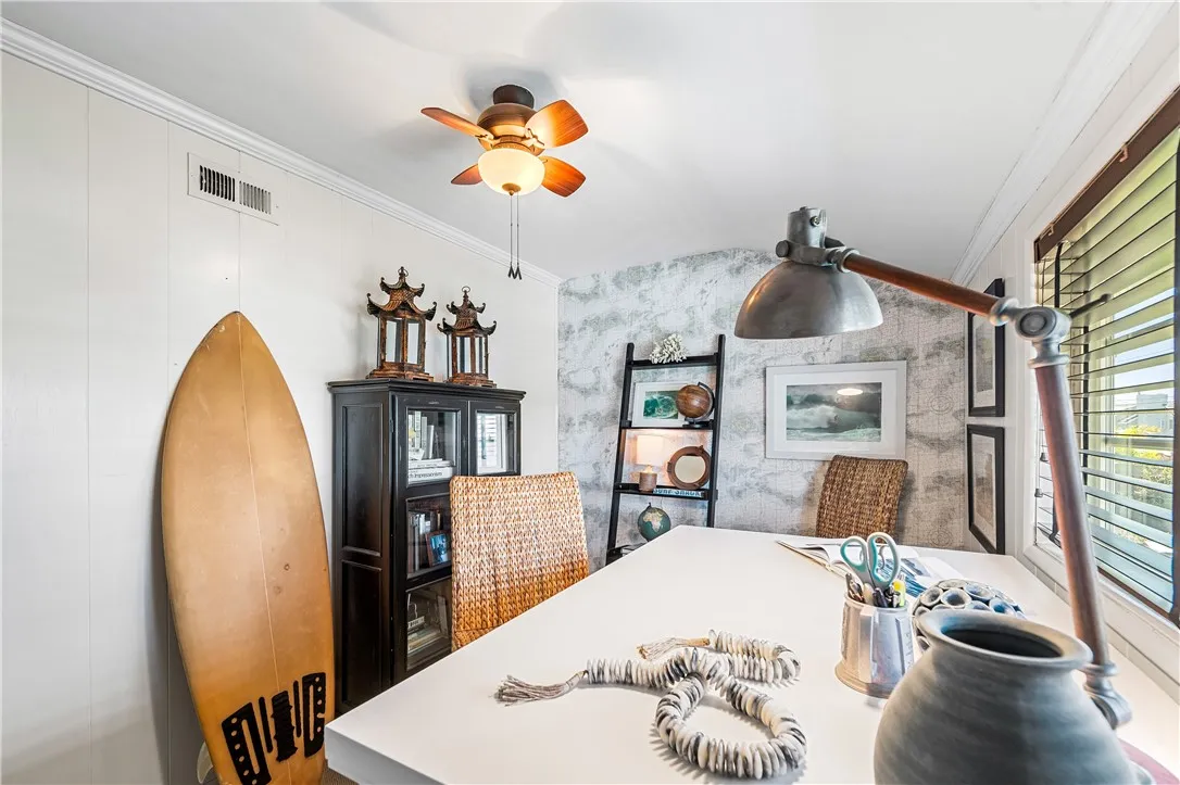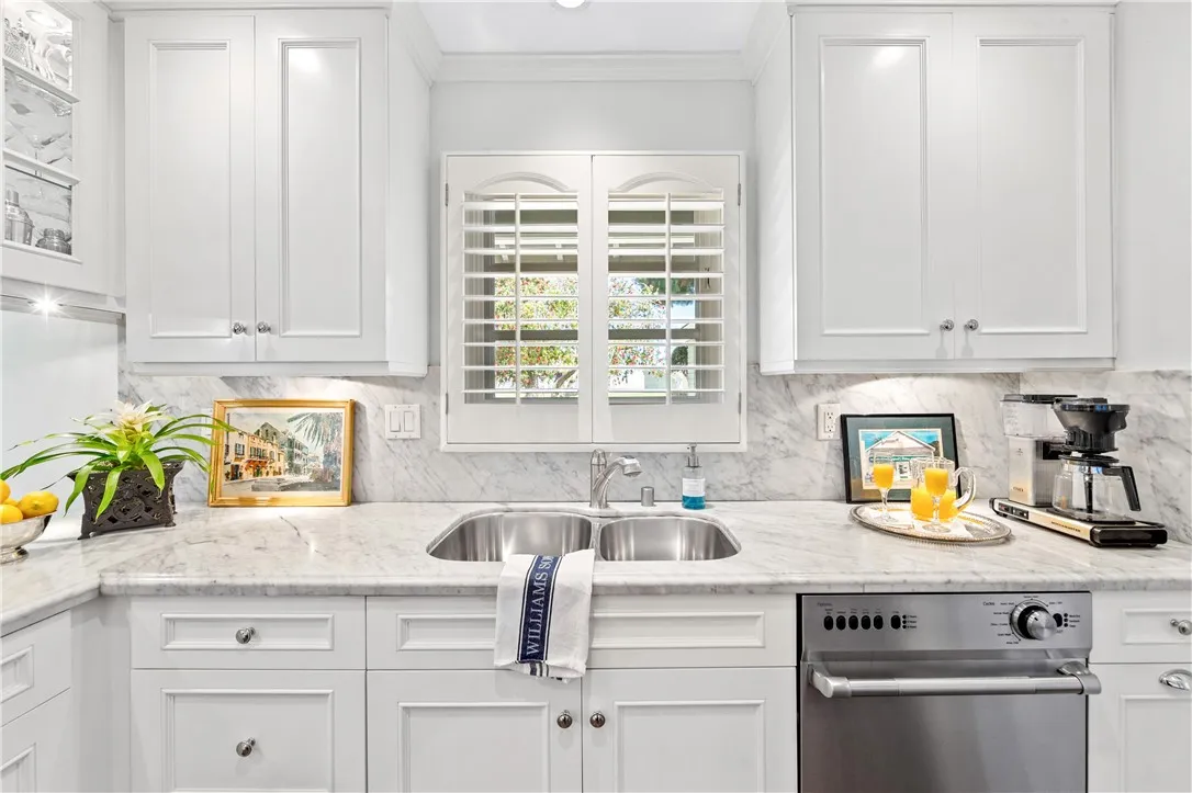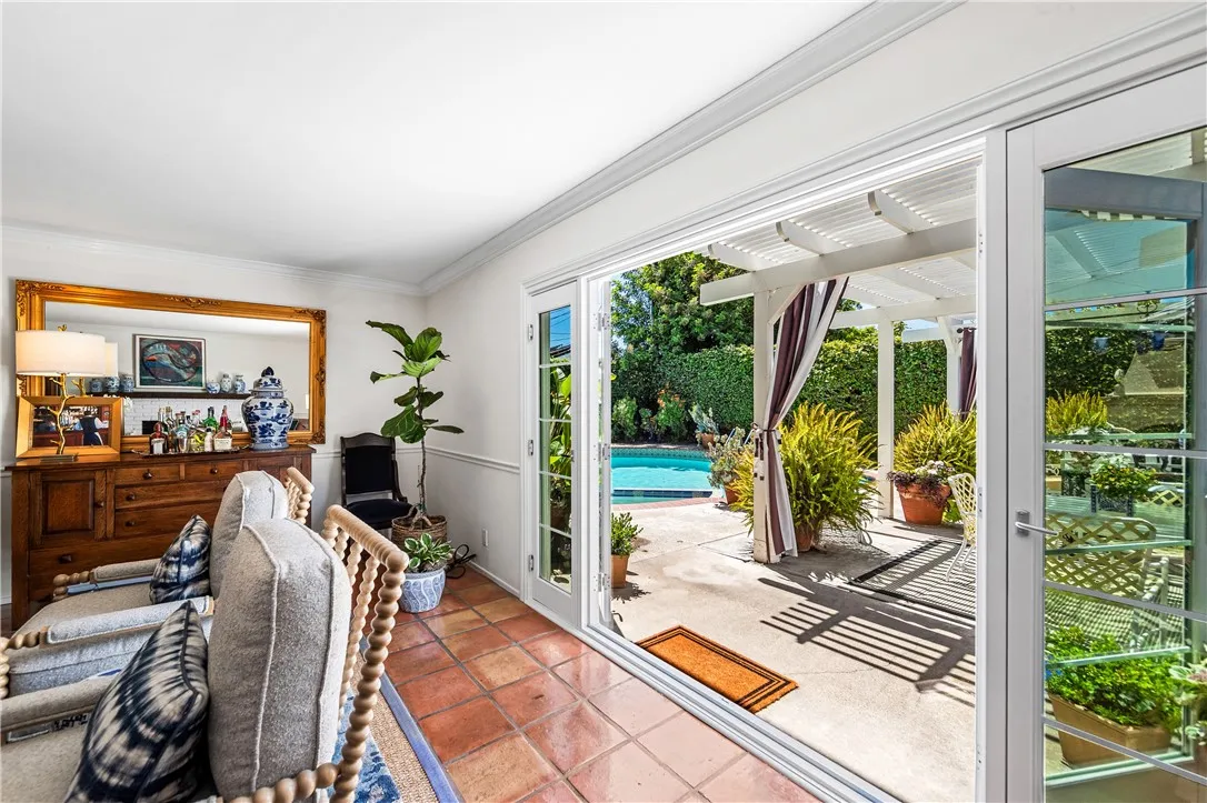 Tucked along a picturesque tree lined street in the heart of West Garden Grove, this exceptional Garden Park Plan 8, built by S&S Construction offers a rare opportunity to own one of the largest and most coveted floorplans in the neighborhood. Perfectly positioned directly across from Edgar Park, this 5 bedroom, 2 bathroom residence blends timeless character with elevated design, creating a true showpiece that checks all the boxes. Lovingly maintained by the original family since 1963, the home showcases craftsmanship rarely found today, including classic lathe and plaster construction. From the moment you step inside, Saltillo tile floors set a warm, inviting tone, flowing throughout the main living spaces and into the downstairs bedrooms. The reimagined guest bathroom is a designer moment, featuring a Kohler Village tub, white subway tile surround, Carrera marble vanity, and seagrass wall coverings. The interior has been elevated with smooth ceilings, recessed lighting, and crown molding, while dual-pane Simonton windows fill the home with natural light. At the heart of the home, the kitchen is both functional and refined, appointed with shaker cabinetry, pull-out shelving, spice racks, and stainless steel Jenn-Air appliances, including a 6-burner range. Designed with a curated aesthetic, this Acadian inspired residence features Ralph Lauren finishes, evoking the feeling of stepping into a Ballard Designs catalog. Upstairs, the primary suite is a true retreat, offering serene park views, a fireplace, and a walk-in closet. The spa-like bathroom is finished with Calcutta marble across the vanity and shower, complemented by a charming window seat. French doors open to a private backyard oasis designed for indoor-outdoor living, complete with a pool, gas outdoor fireplace, and inviting side yard. Ideally located just minutes from the beach with easy access to the 405, 22, and 605 freeways, this home is also close to shopping, dining, and entertainment. Living in West Garden Grove is about community and lifestyle, centered around Edgar Park, known for its annual Opening Day Parade and local events. Serviced by top-rated schools including Barker Elementary School, Bell Intermediate School, and Pacifica High School, this turnkey home offers the perfect blend of location, lifestyle, and luxury.