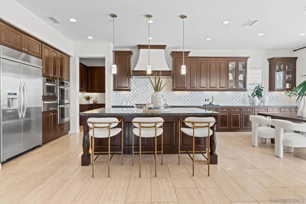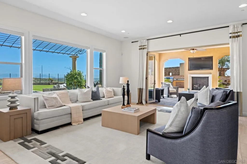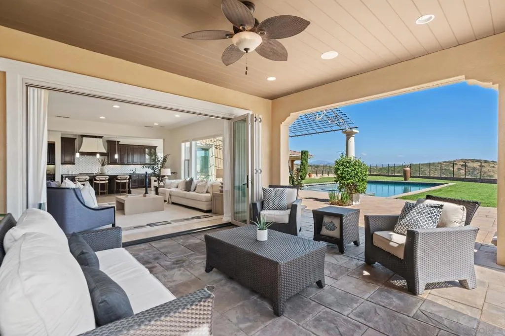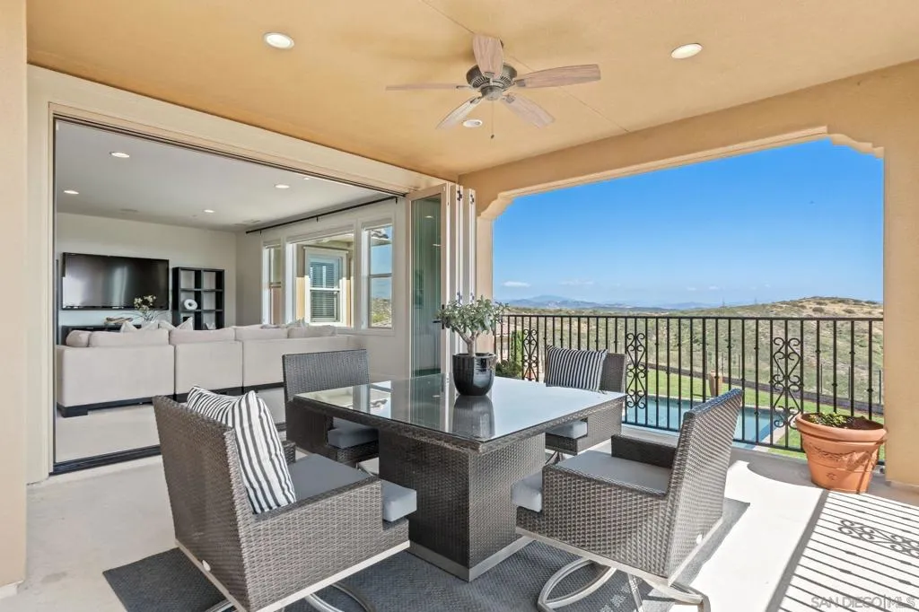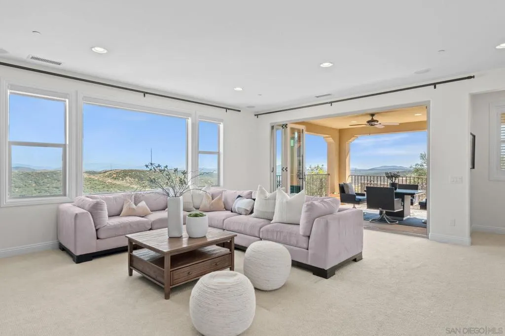 Set on a quiet cul-de-sac on one of the largest and most exceptional elevated view lots in all of Scripps Ranch, spanning over 1/2 acre, this premier Stonebridge Estates home showcases SWEEPING UNOBSTRUCTED PRESERVE VIEWS, offering a high level of privacy and openness seldom found in the area. Featuring 5 bedrooms & 4.5 baths in the main residence, plus a detached guest casita w/ full bath & an attached 3-car garage, this stunning home is designed for true resort-style living. The backyard features a beautifully designed heated pool & spa, built-in BBQ w/ dedicated gas line & refrigerator, fire pit, & a covered loggia w/ outdoor fireplace & TV, along w/ a vineyard setting & mature fruit trees. The main house offers an open floor plan w/ tall ceilings & seamless indoor-outdoor connection, highlighted by expansive California bi-fold doors. The kitchen features an oversized island w/ counter seating, extensive cabinetry, and flows into the inviting living room, w/ a tucked-away butler’s pantry area w/ additional refrigerator & walk-in pantry. Additional highlights include a formal dining room, main-level bedroom w/ ensuite bath, office, & an upstairs loft/great room positioned to capture the views, w/ a large covered balcony. The primary suite is a private retreat, featuring a spacious bath w/ a large soaking tub, enclosed shower, and dual vanities. The casita includes a living/sleeping area, kitchenette, walk-in closet, full bath, & covered porch. This is a rare opportunity to own one of the most significant view properties in Scripps Ranch.