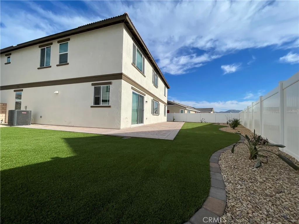 Stunning like-new 2023 Beazer home in the coveted Boulder Creek community of Wildomar, on a quiet cul-de-sac just blocks from Murrieta. Skip the dirt backyard of new construction — this one's already a finished outdoor oasis with a wrap-around stamped colored-concrete patio, lush artificial turf, trees and flowers on automatic drip irrigation. Builder-designated RV-eligible lot with extra-width side yard and wide curb for ample parking. The versatile 3,462 sq ft floor plan features 9-foot ceilings on each floor, five bedrooms, a huge upstairs loft, and a dedicated main-floor office perfect for working from home or a formal dining room. A main-floor bedroom with direct full-bath access adds flexibility as a guest suite or in-law retreat. The primary suite upstairs offers double vanities, a luxury bathtub, separate shower, and two closets; three additional upstairs bedrooms include two with walk-in closets and one with direct access to a full bath featuring double vanities and a separate shower room. Premium upgrades throughout include luxury vinyl plank flooring, designer hardware, custom faucets, ceiling fans and designer lighting (a pre-wired upgrade standard builder plans don't include), and upgraded shower enclosures in every bath. The chef-caliber kitchen features a large granite island seating four, pendant lighting, Whirlpool stainless steel appliances, and an extra-large wrap-around pantry, flowing into a great room with custom TV wall prep. Beazer's premium build includes a continuous weather-resistive wrap, blower-door-tested air-tight envelope, ENERGY STAR certified windows, and a whole-house fresh-air filtration system. Fully owned solar slashes utility bills from day one. Transferable balance of Beazer's 10-year structural warranty. Two community parks maintained by the City of Wildomar keep HOA dues at just $29/month. Minutes to Bear Creek Golf Club, the Santa Rosa Plateau, the new Kaiser Permanente medical campus, Temecula wineries, Pechanga Resort, and easy freeway access to San Diego, OC, and the IE. Why wait months for a new build to feel like home? This one already does. Schedule your private tour today.