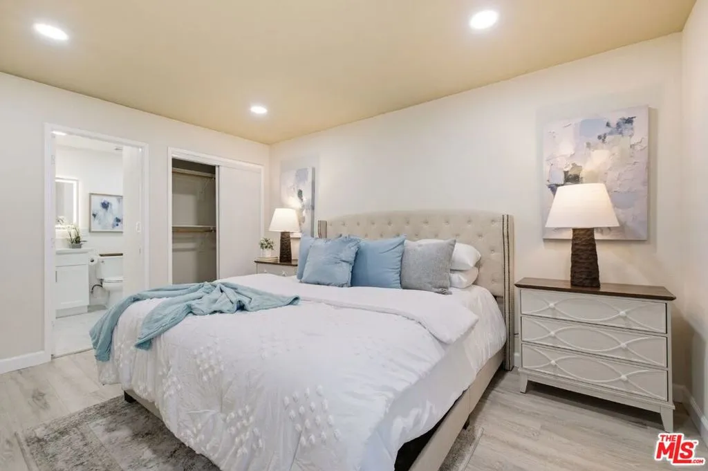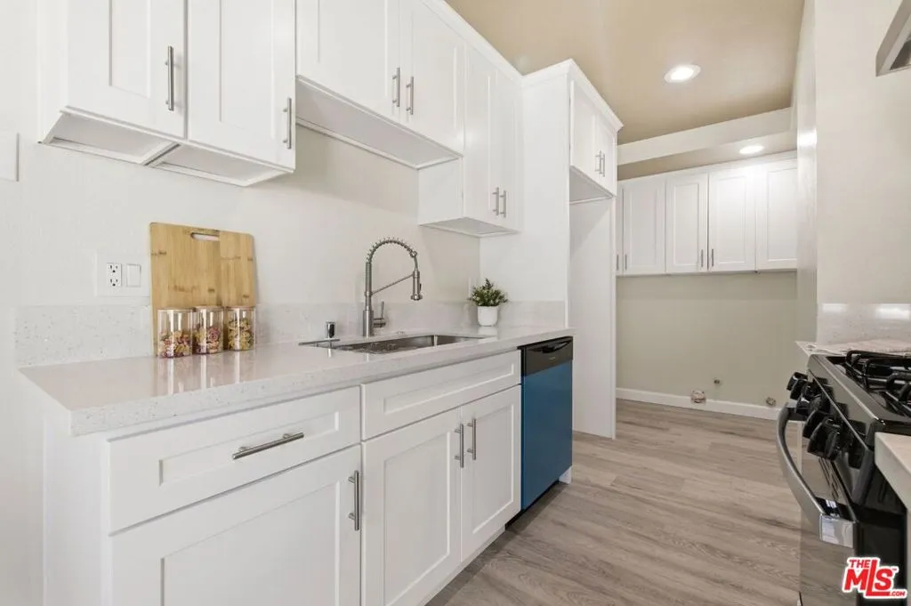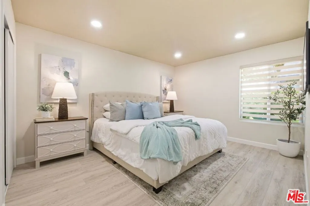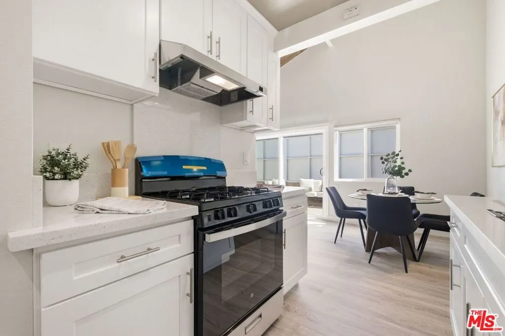 This is not your typical unit-- fully reimagined, light-filled, and upgraded in all the ways that matter, including a rare full second bathroom. Every inch has been thoughtfully redone, from the wide-plank flooring to the redesigned kitchen, modernized bathrooms, and upgraded windows-- offering a true turnkey experience with nothing left to do. Vaulted ceilings and an open layout create an airy feel, while clean, contemporary finishes give the home a cohesive and elevated look throughout. Sliding glass doors open to a private patio, with additional highlights including in-unit laundry and a functional layout designed for everyday living. Located in a well-maintained community near shopping, dining, and major freeways, the HOA includes water, trash, pool access, and exterior landscaping-- adding both convenience and value.