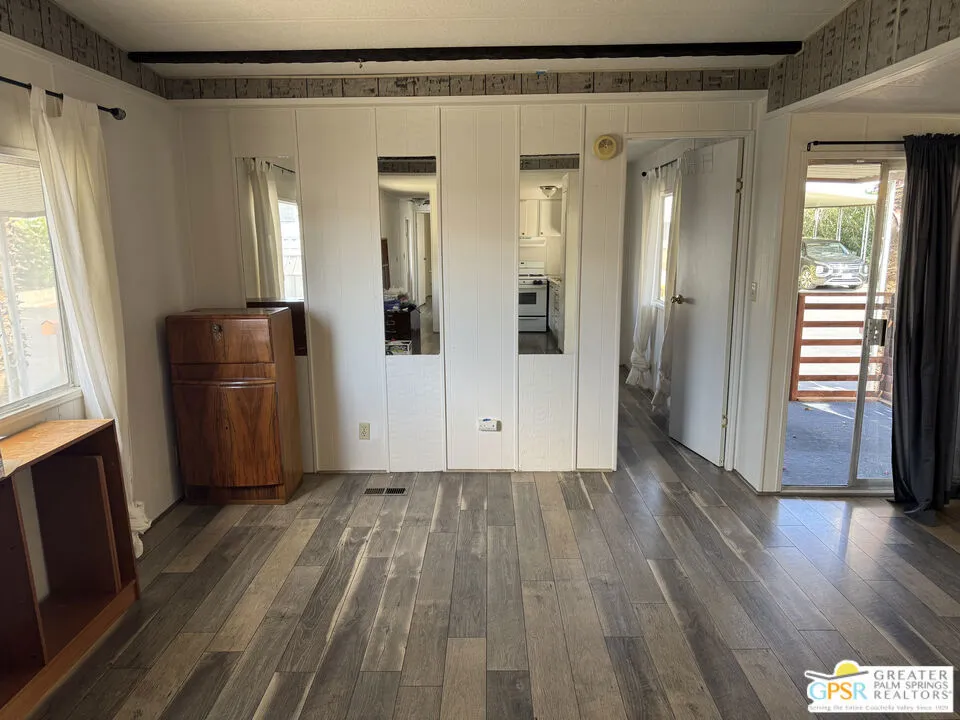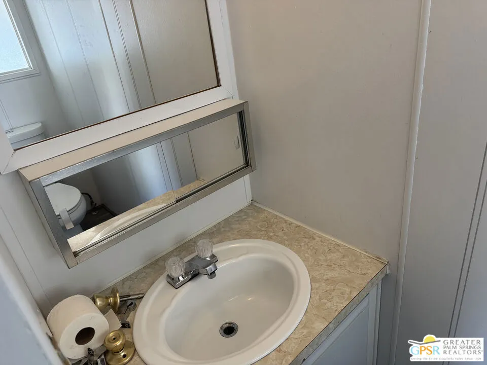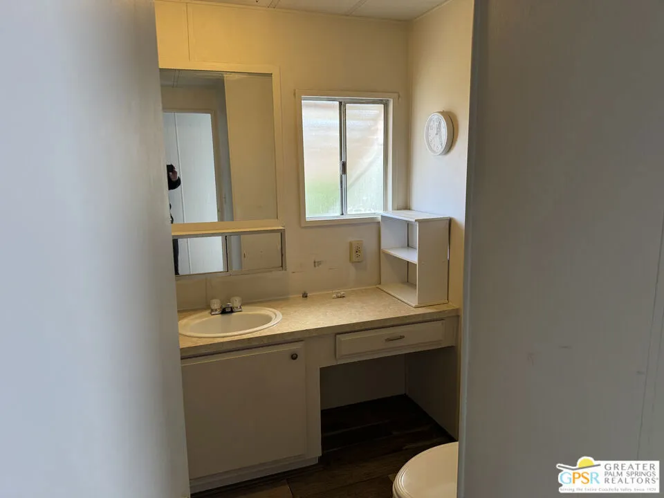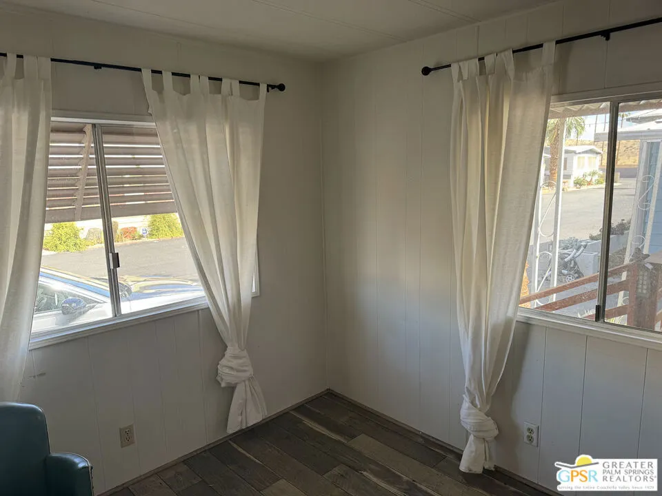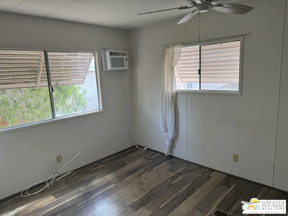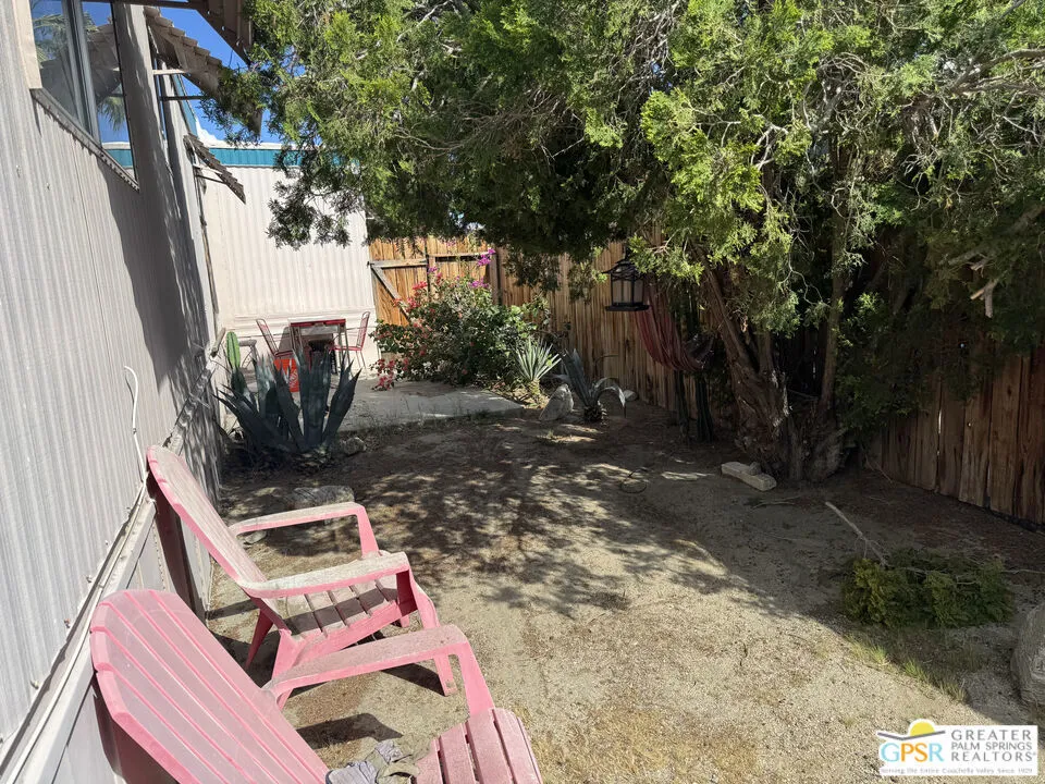 Welcome home to Desert View Mobile Home Club. Very private community which is located in east Desert Hot Springs. This 2 Bedroom 1.5 Bath Mobile Home is ready for your updates. It features an open great room in it's approximately 800 sf and has a lovely rear yard with trees. The great room features a mini-split heat pump and the main bedroom offers a window wall Air Conditioning unit. The front bedroom has it's own half bath, with toilet and sink. This home is very close to the large clubhouse and pool and spas. Why not make this great home your new home today.