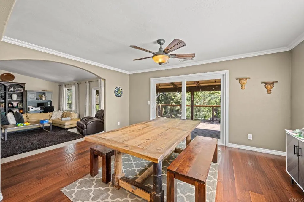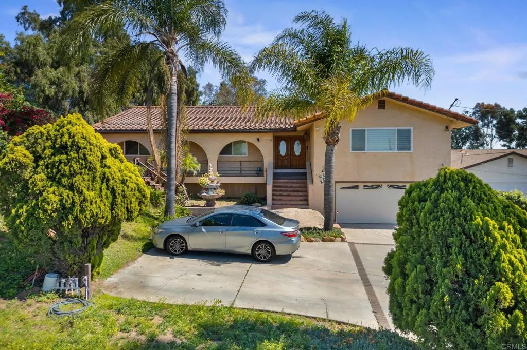 Beautiful Split-Level Home with Panoramic Views in Escondido Enjoy the best of California living in this well-maintained, custom split-level home, perfectly positioned to capture panoramic views and stunning sunsets. Whether you're relaxing after a long day in your jacuzzi or hosting friends and family, the setting provides a peaceful and scenic backdrop. The home features a spacious open floor plan, ideal for both everyday living and entertaining. The gourmet kitchen is thoughtfully designed with granite countertops, a large center island, and hardwood floors, offering plenty of space to cook and gather. In the family room, a cozy fireplace adds warmth and charm, while the large outdoor deck is a great place to entertain or simply enjoy the beautiful California weather. Dual-pane windows and plantation shutters throughout the home offer comfort, style, and energy efficiency. All main living areas are located on the primary level, with a bonus room and full bathroom downstairs—perfect for use as a guest suite, home office, or optional fourth bedroom. The property also includes RV parking and is centrally located in Escondido, close to schools, shopping, dining, and more. This home offers a great balance of space, functionality, and location.