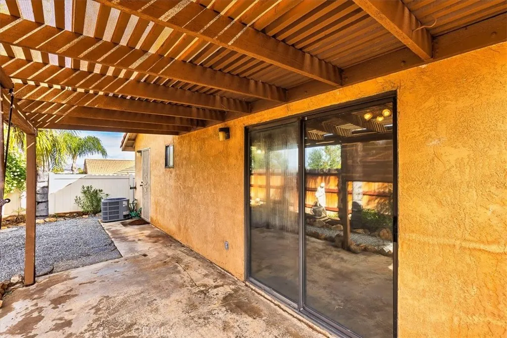Welcome to the desirable 55+ community of Hermosa in Menifee! This charming single-story detached home sits on a rare elevated lot, allowing for an added level of privacy in this well-established community. Featuring 2 bedrooms and 2 bathrooms, the home offers an open, airy, and highly functional floor plan with tile flooring throughout, providing both style and easy maintenance. Step into the spacious living and dining room combination, where vaulted ceilings and abundant natural light create a bright and inviting atmosphere. The kitchen offers generous cabinet space and a charming atrium window above the sink, bringing in additional light and character. Just off the kitchen, the indoor laundry area includes a washer and dryer along with ample overhead storage. From the laundry area, enjoy direct access to the private backyard—perfect for relaxing or entertaining under the covered patio. The primary suite features vaulted ceilings, dual sinks and vanities, and a large sliding door with direct backyard access, while the secondary bedroom and full hall bath offer comfortable accommodations for guests. Additional highlights include an over-sized single-car garage with a roll-up door and automatic opener, low property taxes, and a very low annual HOA—making this home an exceptional value. Ideally located just a few minutes from the 215 Freeway and close to golf courses, parks, shopping, hospitals, and everyday conveniences, this home offers the perfect blend of comfort, convenience, and low-maintenance living in a welcoming 55+ community.