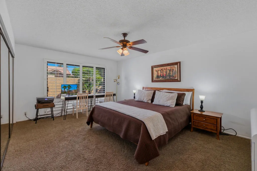 Welcome to the BEST non-golf course community in Palm Desert. Silver Sands Racquet Club is strategically located adjacentto the J.W. Marriott Desert Springs Resort and across from Desert Willow Golf Resort wherePalm Desert homeowners play for reduced rates. This highly sought-after community consists of 256 homes where every property has a private side courtyard, a fireplace and a 2 car attached garage. The FEATURED HOME is a 2 bedroom/2 bath unit with approximately 1212 square feet. Family owned for 27 years. Desirable end unit(no neighbor on one side).Mountain view from the extended back patio.Newer kitchen appliances..Newer A/C and furnace...Tile floors in living area...carpet in bedrooms...shutters throughout...walk-in shower in primary bath. Bonus...FURNISHED per inventory. Silver Sands Racquet Club amenities include 15 pools/spas, 8 pickleball courts, 6 tennis courts, and a fitness center.There are tennis and pickleball pros on staff in season. THIS IS AN OPPORTUNITY TO OWN YOUR PIECE OF PARADISE. Come see for yourself. Priced to sell...best value in this price range. Please call for a private showing. YOU WILL NOT BE DISAPPOINTED. Silver Sands RC is definitely Palm Desert's BEST KEPT SECRET.