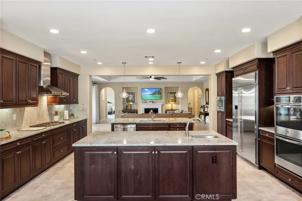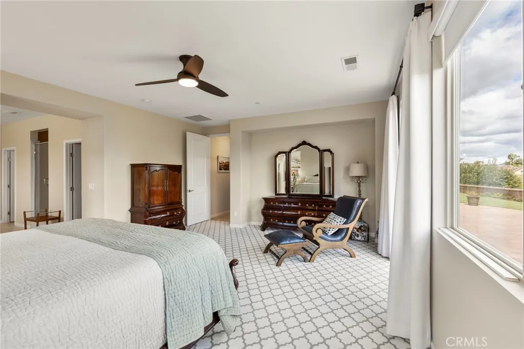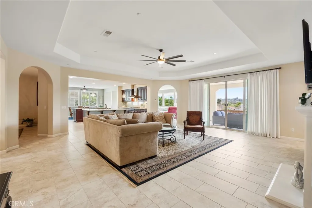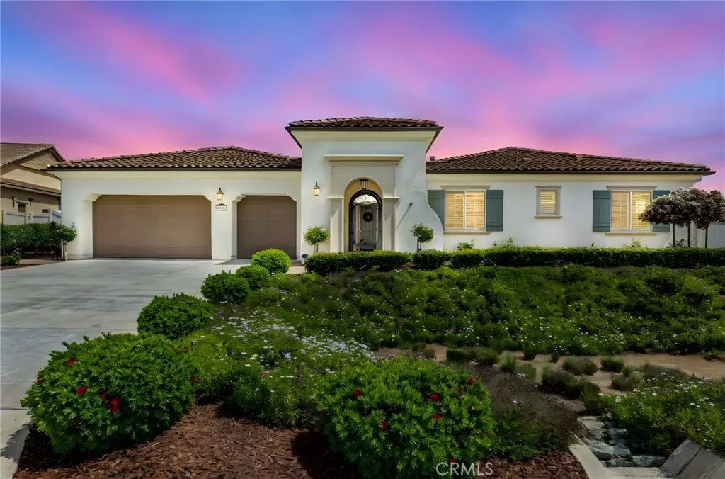 Stunning Mediterranean-inspired single-story home set on an exceptional view lot! This elegant residence features five generously sized bedrooms, perfect for a home office, library, or creative space. The luxurious primary suite offers a spa-like en-suite bath and an expansive walk-in closet. Designed for both comfort and entertaining, the home includes a formal dining room, a spacious and elegant living room, and a welcoming family room with a warm fireplace. The chef’s kitchen is truly the heart of the home, showcasing dual islands, two dishwashers, upgraded stainless steel appliances, and a double convection oven—ideal for hosting gatherings. Energy-efficient LED recessed lighting, remote blackout shades, and custom plantation shutters enhance the refined ambiance throughout. Additional highlights include a large laundry room with built-in shelving and a charming front entry that creates a welcoming first impression. The three-car garage features new epoxy flooring and offers ample space for storage, a workshop, or a home gym. Enjoy breathtaking views of rolling hills from the living room and covered patio, where a beautiful three-tier fountain provides a serene backdrop. The thoughtfully landscaped grounds feature water-efficient plants, mature greenery, and raised garden boxes. An expansive side yard offers room for a future pool or even an infinity-edge retreat. Ideally located in a newer community, this home is within walking distance to Bonsall Elementary and just minutes from the Pacific Ocean, local casinos, and Temecula wine country. With a low property tax rate and no Mello-Roos, this exceptional property presents a rare opportunity.