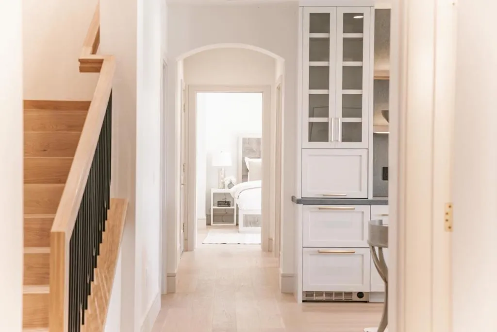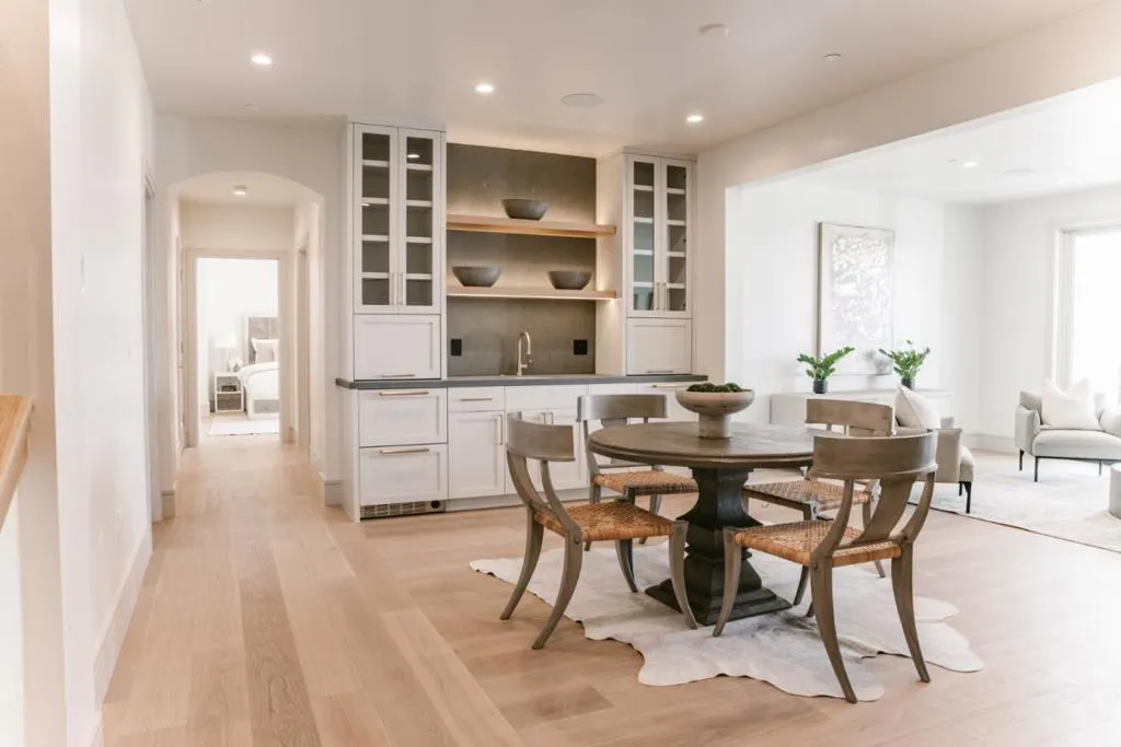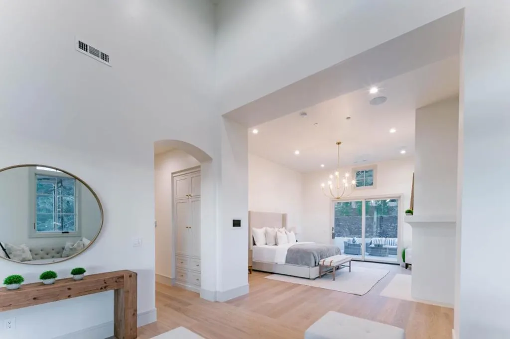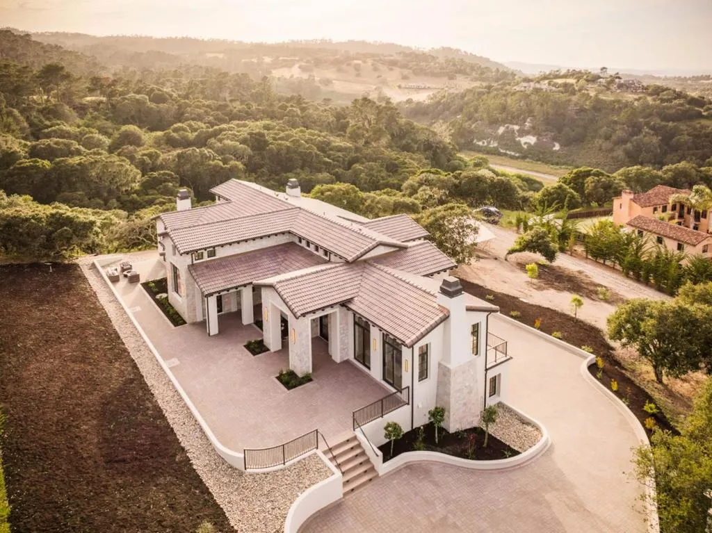 Newly completed contemporary Mediterranean estate in the private, gated community of Monterra Ranch, set on nearly 2 acres with sweeping ocean and forest views. The home pairs timeless materials with clean lines, creating a strong architectural presence. A dramatic entry opens to a light-filled interior with soaring ceilings, French white oak floors, and expansive windows framing landscape. The kitchen features Thermador appliances, a 48-inch range, built-in refrigeration, dual dishwashers, and an oversized quartzite island. A hidden pantry and butlers pantry with 92-bottle wine refrigeration supports effortless hosting. The main level offers a private primary suite with ocean views, spa-like bath, and custom closet with extensive built-in cabinetry. Elevator access connects both levels. The lower level includes a recreation room with custom cabinetry, sink, dishwasher, and refrigerator/freezer drawers, plus three ensuite bedrooms with ocean views. The home includes Control4, whole-home audio, enterprise Wi-Fi, energy-efficient heat pumps, ERV fresh air system, and solar. Outdoor living features expansive terraces and private balconies. Ownership includes a social membership to Tehama Golf Club, offering dining, fitness, pools, tennis, pickleball, and year-round social events.