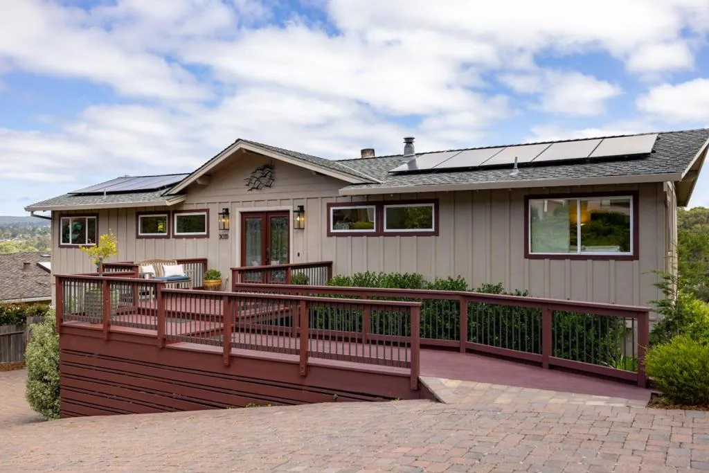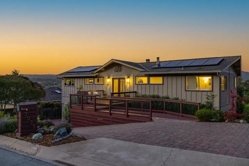 Coastal sophistication meets high-tech resilience! Nestled in the sun-drenched pocket of Carmel Meadows, this residence offers a breathtaking panoramic backdrop of the Palo Corona hills, the Carmel River area and the northern coastline. Featuring 4 bedrooms, 2 1/2 bathrooms, and both a living room and family room, this spacious and smart floorplan grants both privacy and peace to all. The living room serves as a private gallery for the valley-meets-the-sea views, now enhanced with custom smart shades for effortless light control. The home's energy independence is anchored by the fully owned rooftop solar array and Tesla Powerwall system, providing peace of mind and protection from rising utility costs. Other interior refinements include California Closets systems in both the family room and garage, alongside deep-infrastructure upgrades like new sub-floor insulation and a reinforced retaining wall. The backyard is an idyllic outdoor sanctuary featuring multiple decks, a spa, firepit area and plenty of low maintenance yard for fun and games. The location is a nature-lover's dream: just a short stroll to the pristine sands of Ribera Beach-famed for its front-row views of Point Lobos and sprawling trails of Carmel River State Beach. Location, upgraded, organized, energy-independent!