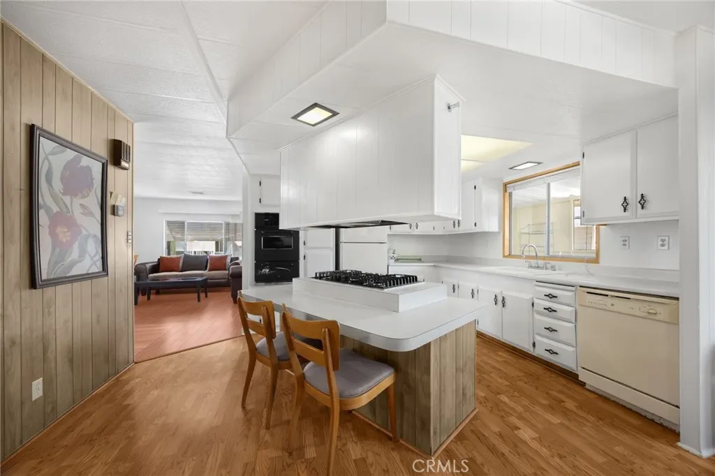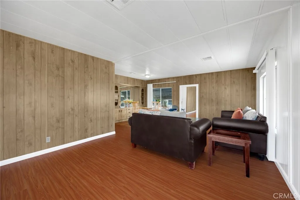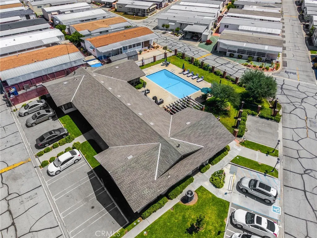 Lovely Villa Nova Mobile Home Park Senior 55plus. Come see this Lovely 2b 2b 1440 sqft home . Move in ready. This is a corner home facing the club house with ample parking for guest. The home does have 2 parking spots on the side of the home. Step up into a small landing front porch, you can add plants or some chairs for those summer evening. Walk into the living room with laminate flooring, and a dinning area with a built in Hutch. The kitchen is open with plenty of cabinets and another dinning area or could be a lounge area to relax and watch your favorite TV show. A sliding door out to the enclosed patio for those wanting some privacy for reading or a nice gathering of friends for entertaining. Adjacent to the kitchen is the Laundry room with washer and dryer, then to the back door out to the side yard and parking. There is a Handicap ramp if needed, is Permitted. Guest bedroom 1, a good size with Large closet and its own bathroom with shower. 2nd master bedroom, a very good size, has a large closet, and its own large bathroom and walk in shower. This home has new inside and outside recent painting. lots of beautiful plants and lemon tree. A good size storage for your garden tools. Home has central heat and cooling. Ceiling fans in both bedrooms, and lounge area. Carbon monoxide and smoke detectors in place. Entertainment at the club house and good size pool. Conveniently located to Shopping, and church, hospital and freeways. A must see.