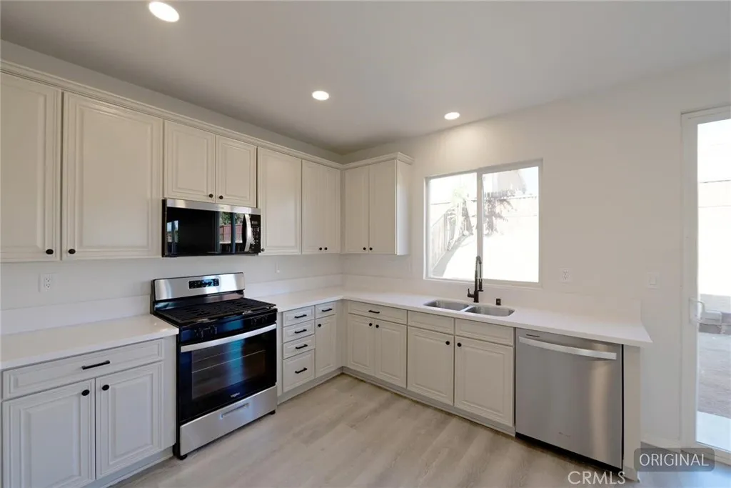 4BR/2.5BA single-family home in Hesperia. Updated kitchen with new counters and appliances. Built 2005, 2-car garage, NO HOA. This 4-bedroom, 2.5-bath single-family home in Hesperia offers 2,602 sq ft of living space on a 5,111 sq ft lot on a cul-de-sac and was built in 2005. Recent updates, including refreshed interior and exterior paint, updated lighting, switches, and hardware, and a serviced HVAC system. With no HOA and a 2-car garage, the property supports buyers seeking fewer restrictions and practical ownership. Inside, the home features new carpet, updated ceiling fans, and replaced closet doors, creating a consistent interior finish. The kitchen has been updated with new counters, appliances, faucets, and hardware, improving function and everyday use. The layout provides multiple living areas and four bedrooms, supporting flexible use for living, work, or shared space needs. System maintenance has been addressed with a recently serviced HVAC system, helping reduce near-term service concerns. Interior updates such as new fixtures, switches, and finishes provide continuity throughout the home and minimize immediate post-close projects. Outdoor improvements include refreshed landscaping, offering a clean and manageable exterior space. The 5,111 sq ft lot balances usable outdoor area with lower upkeep. Exterior paint updates contribute to overall condition and presentation. Located in Hesperia, the property is positioned near parks and commuter routes, supporting access to daily needs and regional travel. The home is within the Hesperia School District. The neighborhood setting offers proximity to outdoor space while remaining connected to surrounding areas.