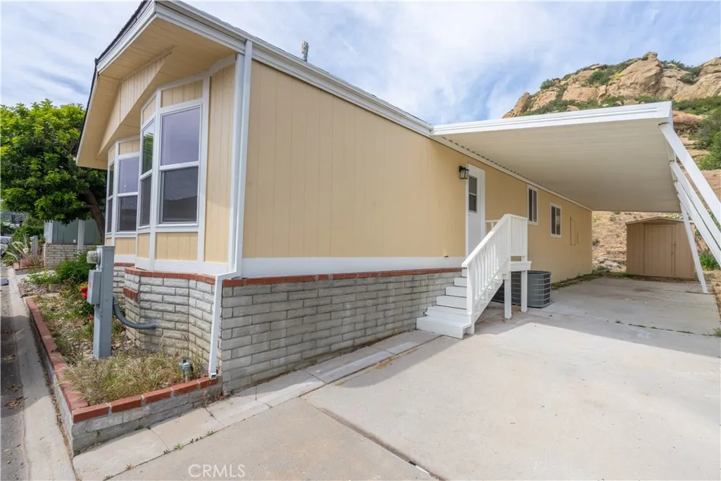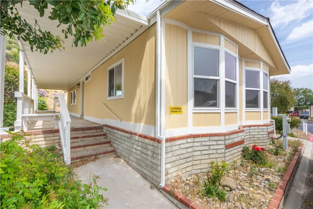 Welcome home to this beautifully remodeled manufactured home located in the prestigious Mountain View Village. Perched in the scenic hills of this gated community and peaceful views from the front porch, this home is truly a rare find. Boasting approximately 1,400 Sq.Ft. of warm, inviting, and modern living space, this residence has been thoughtfully upgraded from top to bottom. Recent renovations include: Brand-new flooring throughout, New central air conditioning system, Fully remodeled kitchen with new cabinets and appliances, Fresh interior and exterior paint, Updated bathrooms, Newer dual-pane windows, New lighting fixtures inside and out. Additional interior features include a cozy wood-burning fireplace, a dedicated laundry room, and a serene mountain setting that enhances the home’s peaceful atmosphere. The exterior includes both a welcoming front porch and a charming hillside backyard with a storage shed—perfect for relaxing or enjoying the natural surroundings. Mountain View Village has resort-style living at its finest, featuring breathtaking mountain and city views, a gated entrance, manicured landscaping, sparkling pool and spa, a comfortable clubhouse with big-screen TV and lounge seating, billiard room, commercial kitchen, fitness center, and a spacious patio with propane BBQ—plus so much more. This home is truly a must-see, and we can’t wait for you to experience the lifestyle that Mountain View Village delivers.
