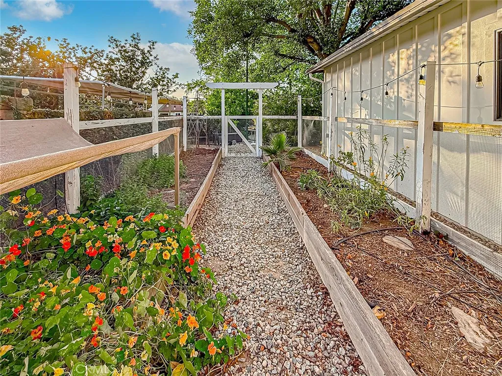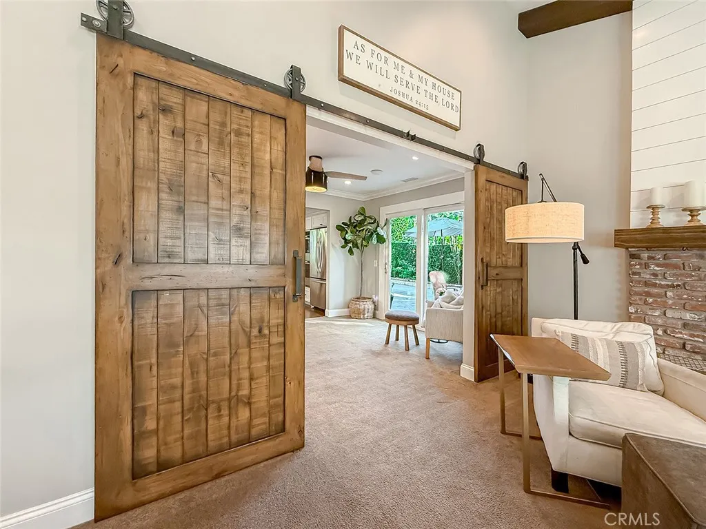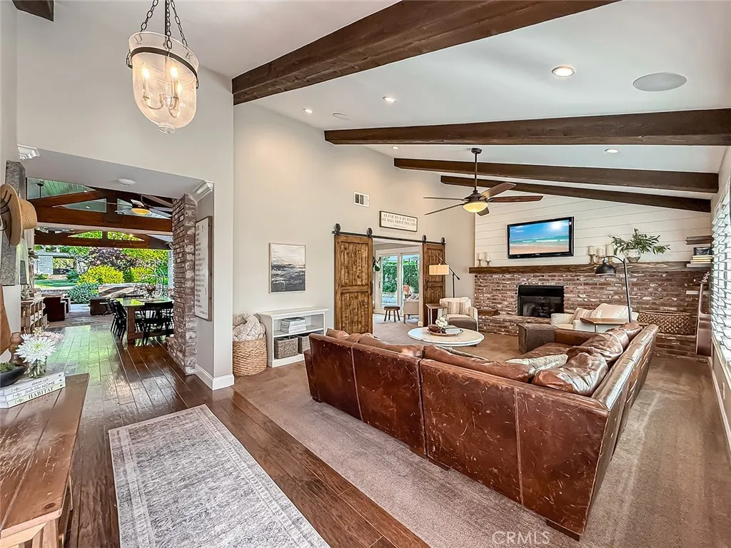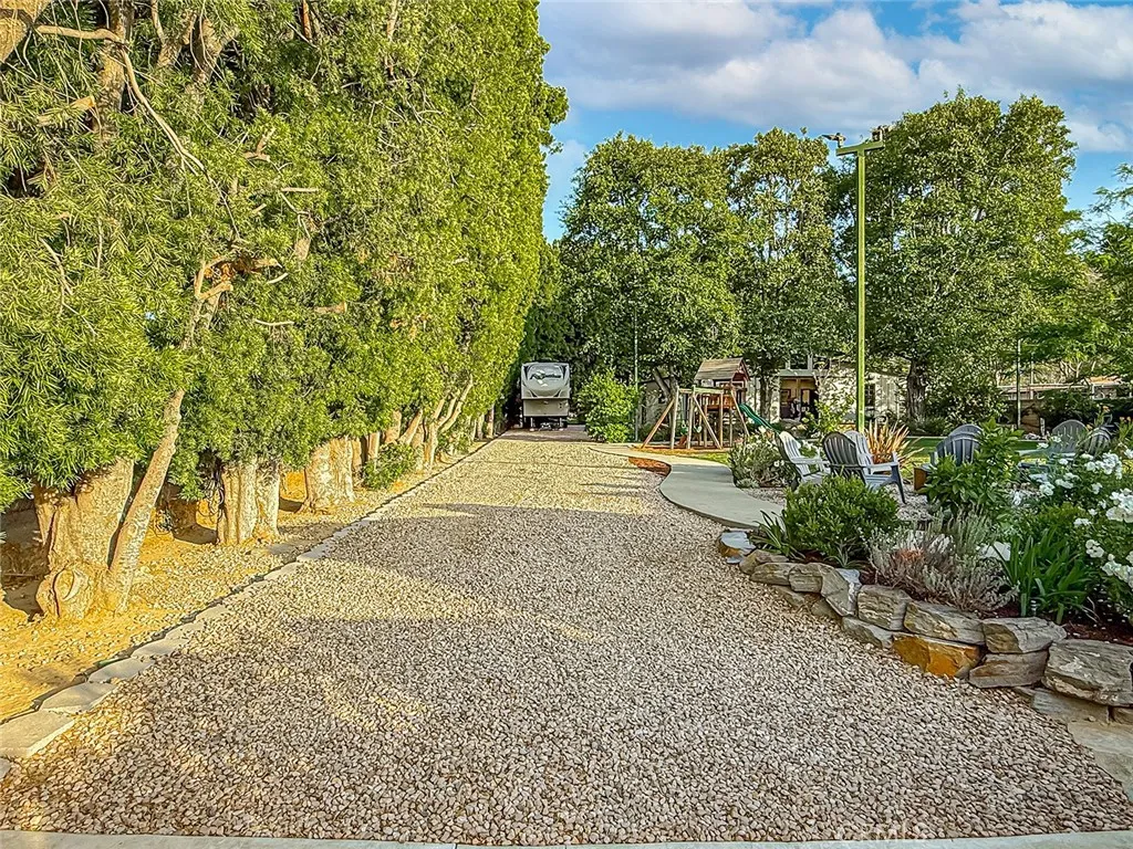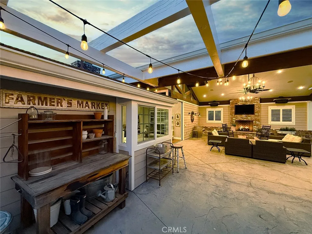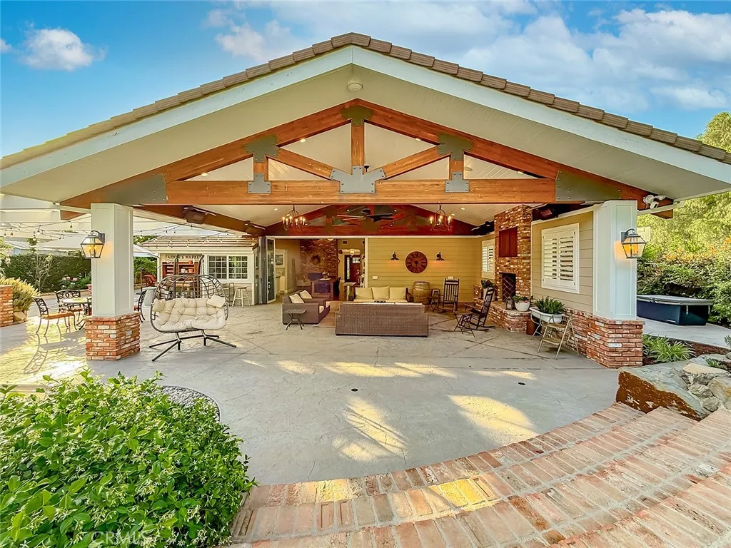 Welcome to 186 Stonebrook, a rare single story farmhouse-inspired home set on a large approximately 32,670 sq ft lot, tucked on a cul-de-sac in the highly desirable Coyote Hills area off Sinaloa and Highland, where luxury and a relaxed country feel come together. From the moment you arrive, the front yard makes a lasting impression with dry river rock, blooming roses, and mature trees. Inside, vaulted ceilings, natural light, and a striking red brick fireplace define the main living space. Expansive folding glass doors open fully, creating a seamless indoor outdoor connection. The kitchen offers stunning upgrades, a butcher block island, and a farmhouse sink beneath a window overlooking the yard. Adjacent library with built-in cabinetry and side yard access. Solid core doors, recessed LED lighting, and numerous upgrades run throughout. Both bathrooms have been fully renovated, most recently in 2025. The backyard is designed for year-round enjoyment with an incredible sense of space, lush green grass, and room to truly spread out. A spectacular covered patio of approximately 780 sq ft features a hardwood tongue and groove ceiling, chandeliers, recessed LED lighting, an industrial fan, and four gas heaters, along with an outdoor fireplace and TV, with the vaulted ceiling continuing from inside to out. Additional outdoor features include a lattice patio cover off the kitchen, built in BBQs, above ground jacuzzi spa, pondless water feature, DG and concrete pathways, master bedroom courtyard, and extensive landscape lighting. The barn has been highly upgraded and offers approximately 864 sq ft of interior space plus an additional 144 sq ft of storage. Complete with concrete flooring, electrical, gas, and plumbing, this versatile structure features sliding barn doors, a rear roll up door for drive through access, and is well suited for a workshop, guest house conversion, or a variety of uses. The property also offers rare RV access extending approximately 280 feet from the street to the rear of the lot. Major infrastructure upgrades include a 400 amp electrical service with subpanels servicing the home, backyard, and barn, along with a gas line extended to the barn and sewer line improvements. Additional features include epoxy garage flooring, tankless water heater, updated HVAC components, and included security system. Lynx gas grill and Big Green Egg BBQ are included. Located within the Fountainwood community with a low HOA