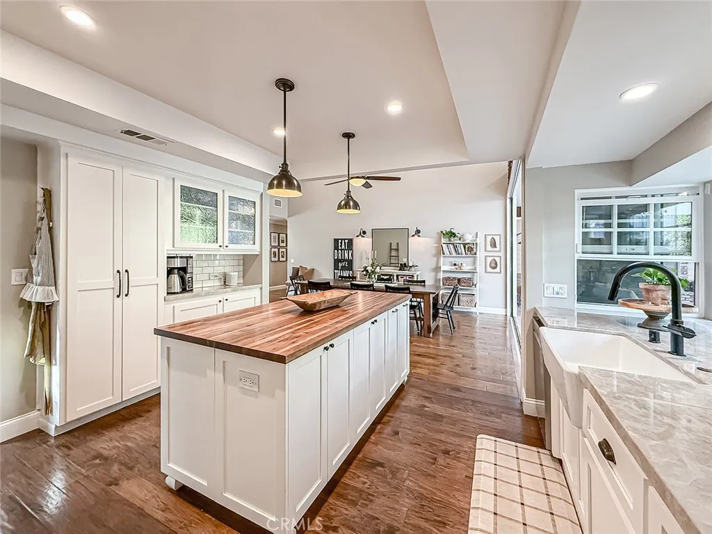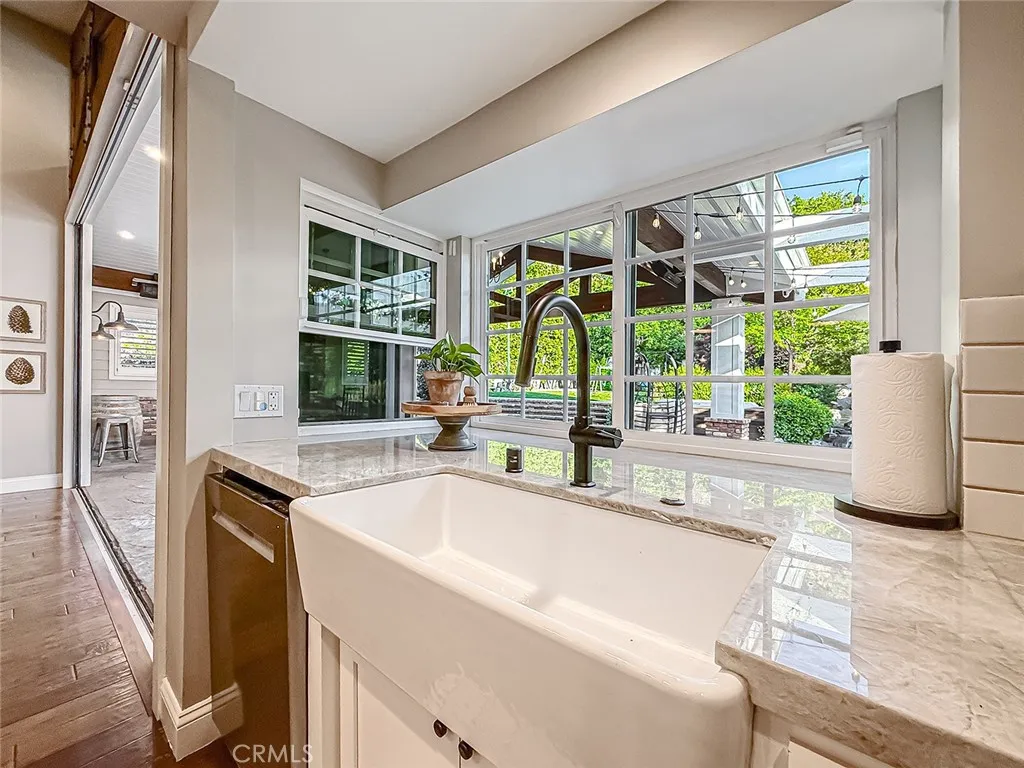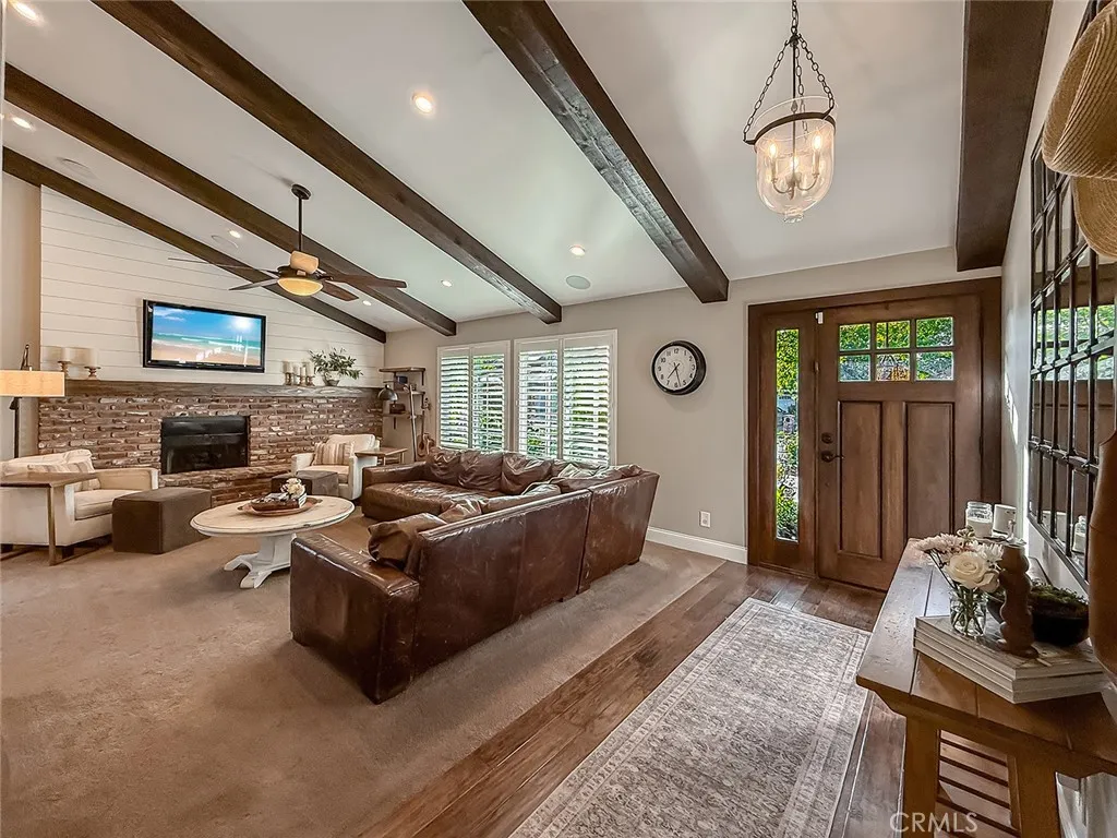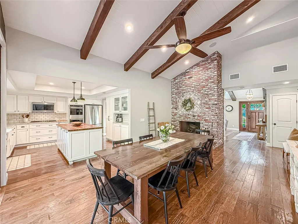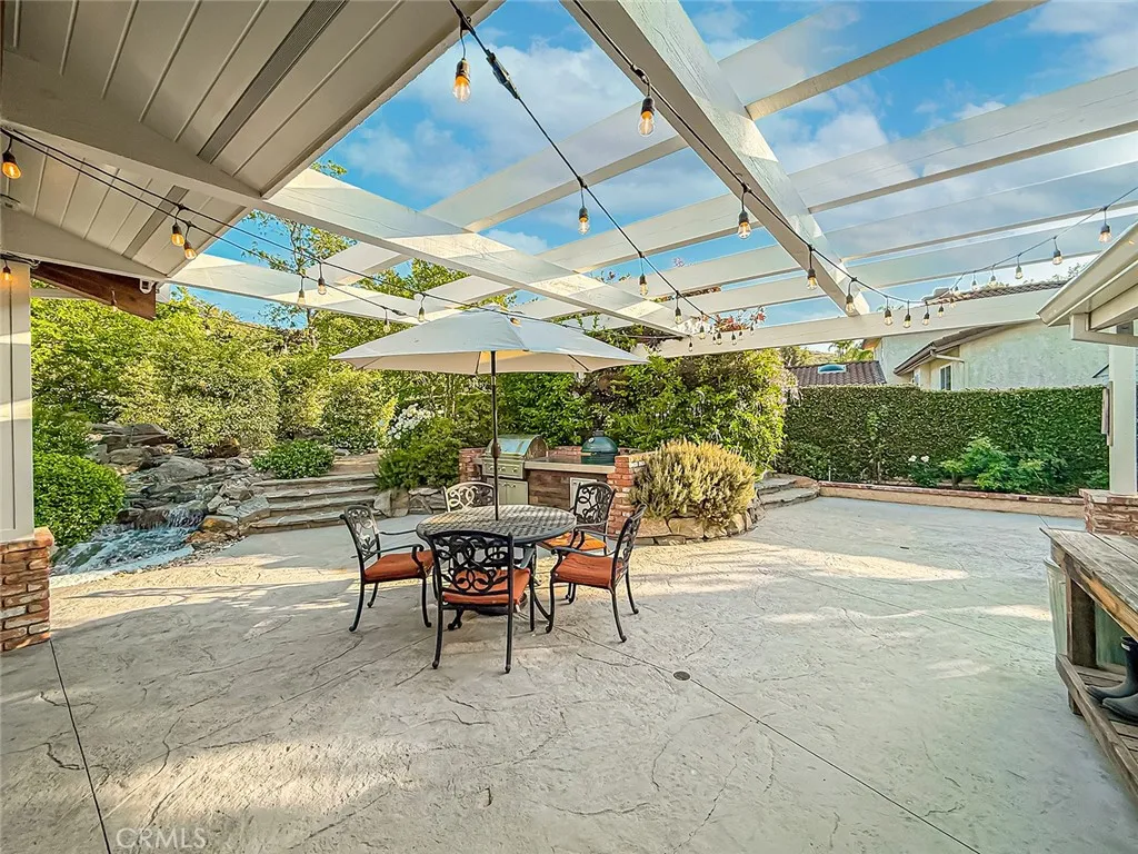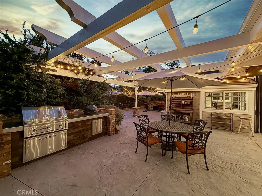 Welcome to 186 Stonebrook, a rare single story farmhouse-inspired home set on a large approximately 32,670 sq ft lot, tucked on a cul-de-sac in the highly desirable Coyote Hills area off Sinaloa and Highland, where luxury and a relaxed country feel come together. From the moment you arrive, the front yard makes a lasting impression with dry river rock, blooming roses, and mature trees. Inside, vaulted ceilings, natural light, and a striking red brick fireplace define the main living space. Expansive folding glass doors open fully, creating a seamless indoor outdoor connection. The kitchen offers stunning upgrades, a butcher block island, and a farmhouse sink beneath a window overlooking the yard. Adjacent library with built-in cabinetry and side yard access. Solid core doors, recessed LED lighting, and numerous upgrades run throughout. Both bathrooms have been fully renovated, most recently in 2025. The backyard is designed for year-round enjoyment with an incredible sense of space, lush green grass, and room to truly spread out. A spectacular covered patio of approximately 780 sq ft features a hardwood tongue and groove ceiling, chandeliers, recessed LED lighting, an industrial fan, and four gas heaters, along with an outdoor fireplace and TV, with the vaulted ceiling continuing from inside to out. Additional outdoor features include a lattice patio cover off the kitchen, built in BBQs, above ground jacuzzi spa, pondless water feature, DG and concrete pathways, master bedroom courtyard, and extensive landscape lighting. The barn has been highly upgraded and offers approximately 864 sq ft of interior space plus an additional 144 sq ft of storage. Complete with concrete flooring, electrical, gas, and plumbing, this versatile structure features sliding barn doors, a rear roll up door for drive through access, and is well suited for a workshop, guest house conversion, or a variety of uses. The property also offers rare RV access extending approximately 280 feet from the street to the rear of the lot. Major infrastructure upgrades include a 400 amp electrical service with subpanels servicing the home, backyard, and barn, along with a gas line extended to the barn and sewer line improvements. Additional features include epoxy garage flooring, tankless water heater, updated HVAC components, and included security system. Lynx gas grill and Big Green Egg BBQ are included. Located within the Fountainwood community with a low HOA