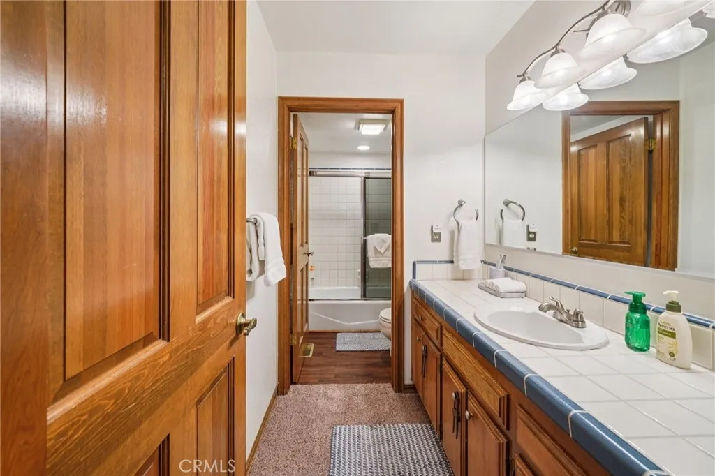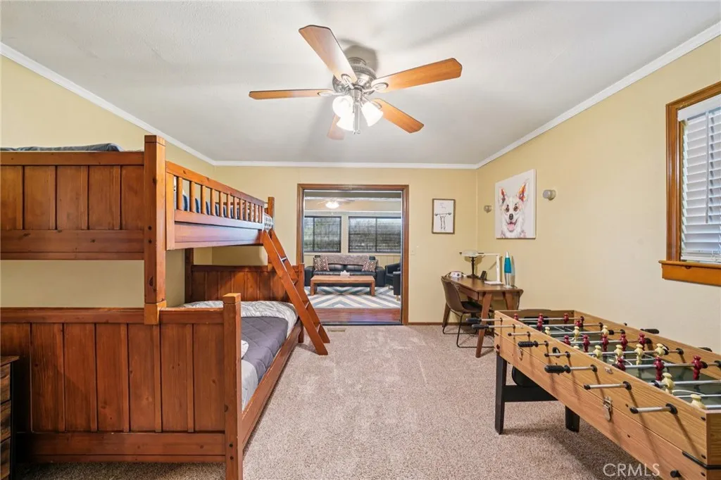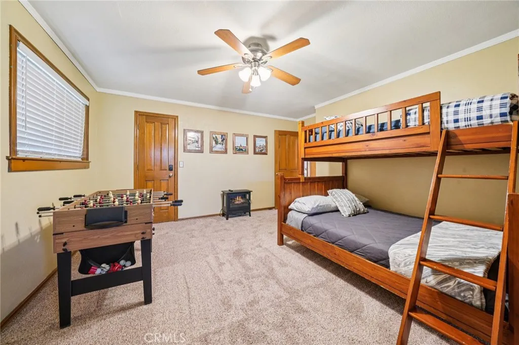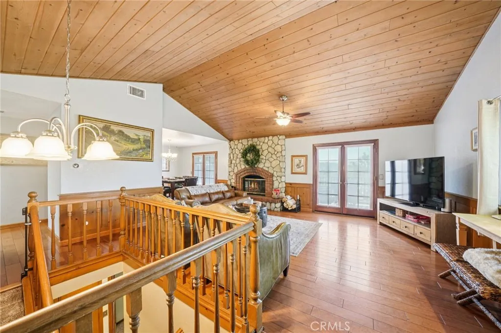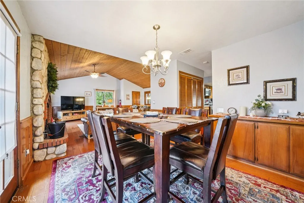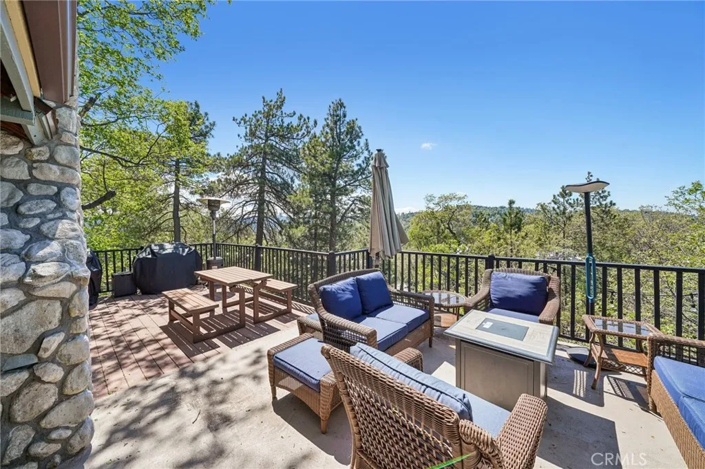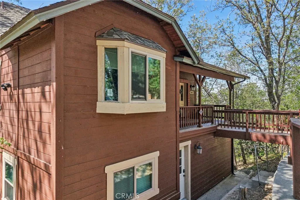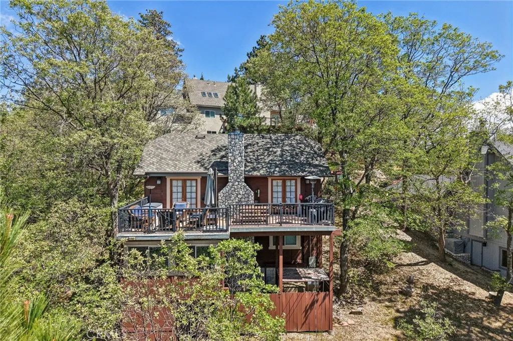 This charming mountain retreat offers lake rights, privacy, and stunning views—making it an ideal full-time home, getaway, or successful short-term rental. Enjoy level parking for two cars and a welcoming covered porch entry leading into a spacious foyer. The main living area showcases vaulted wood ceilings, rich wood flooring, and a striking rustic stone fireplace—creating a warm and inviting atmosphere. The open-concept living and dining spaces are filled with natural light and offer direct access to a gorgeous, expansive deck where you can take in tranquil forest and mountain views, vibrant sunsets, and distant city lights. The kitchen features stainless steel appliances, a wine fridge, and a charming bay window overlooking the front of the home. A full bathroom on the main level adds convenience. Downstairs, you’ll find three bedrooms and a full bathroom, along with a functional mudroom with laundry. One bedroom includes a bonus room extension, perfect for an office, playroom, or home gym. Additional highlights include an EV charger, newer roof and windows, and great natural light throughout. The adjoining 9,554 sq. ft. lot is also available for purchase, with the buyer having first right of refusal—offering added privacy or future expansion potential. This home offers the perfect blend of comfort, character, and mountain lifestyle.