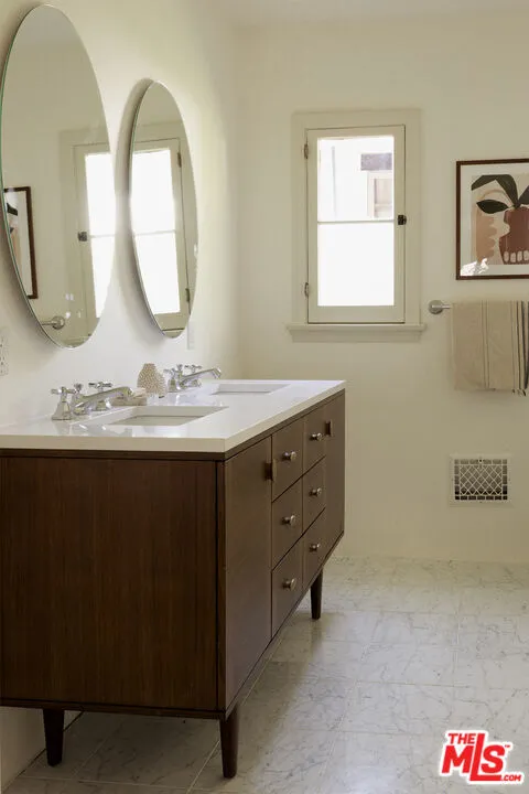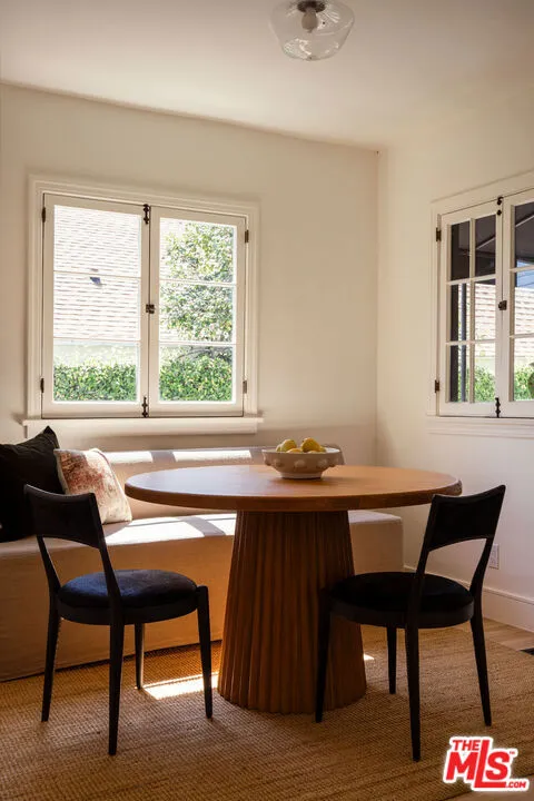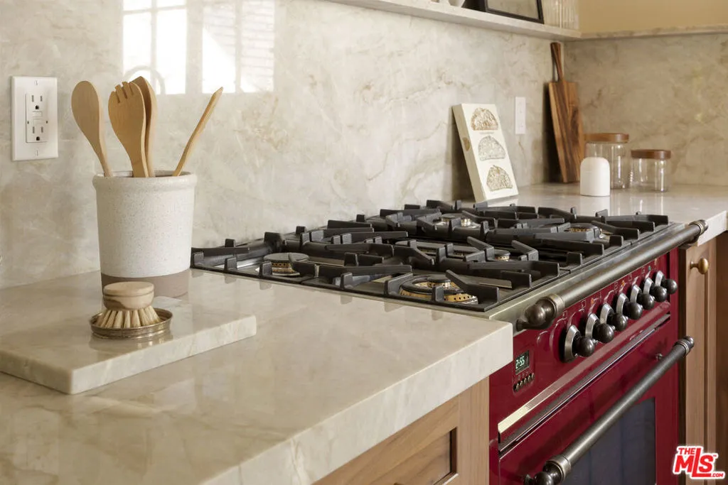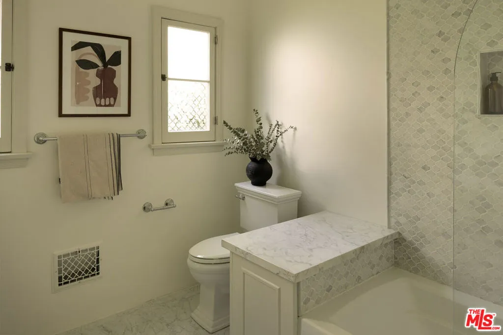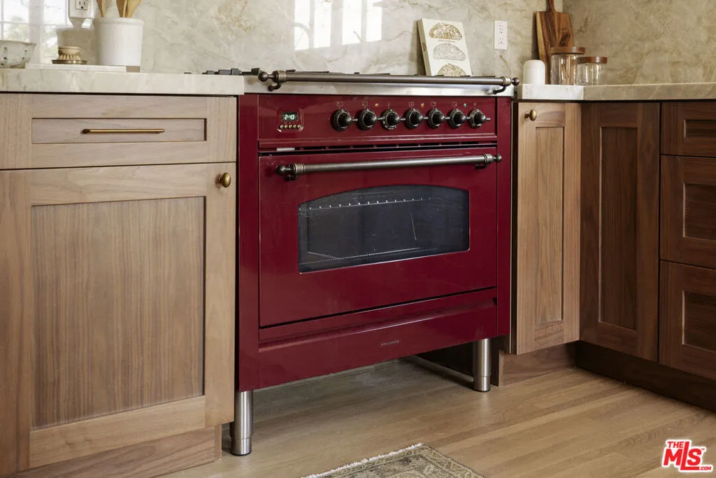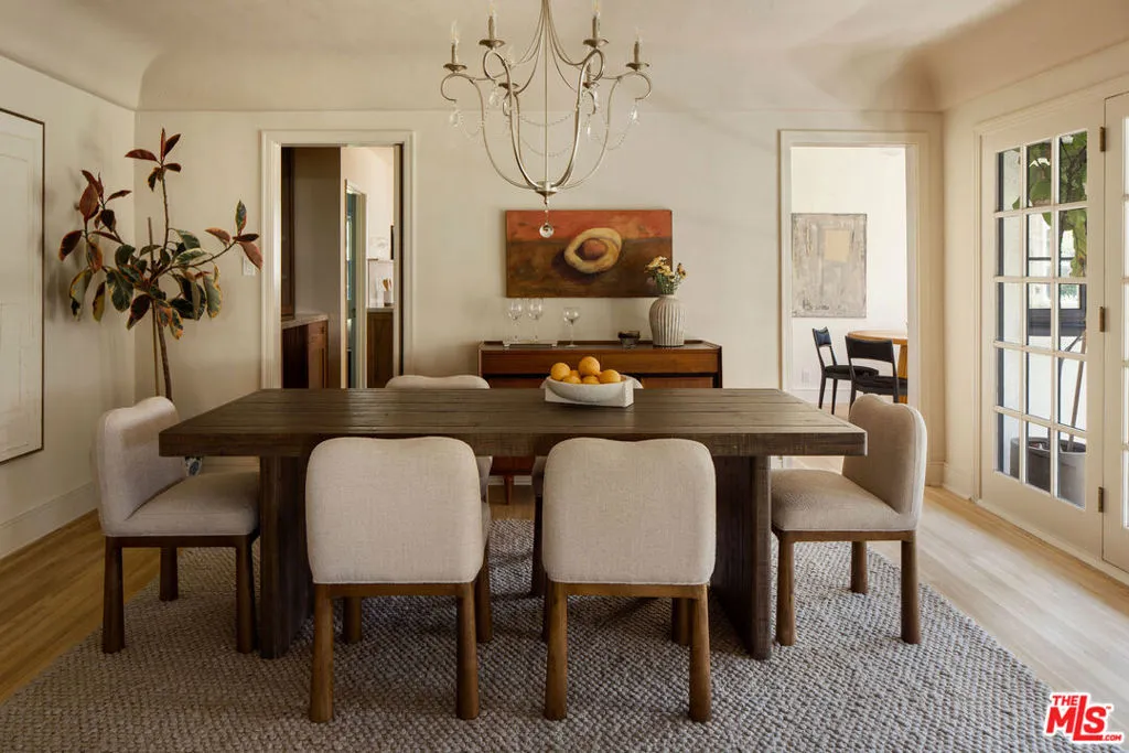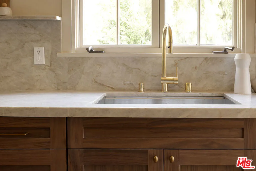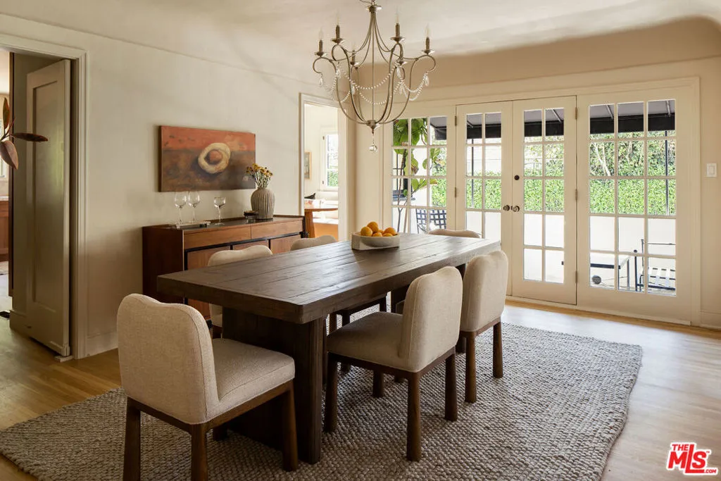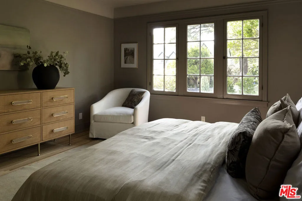 Set on one of Altadena's most beloved streets just off Christmas Tree Lane, this 1930s home is tucked behind a pair of ancient twisted cypress and a garden of tree roses, citrus, and Japanese maples. Inside, rooms are full of light and quiet character, where original details meet a fresh, carefully layered update. The living room draws you in first with its coved ceilings, central fireplace, and a wall of French windows that spill afternoon light across refinished oak floors. The adjoining dining room opens to a covered side porch, a natural place to slow down. The kitchen has been taken down to the studs and rebuilt with St. Martin walnut cabinets, Taj Mahal stone from Brazil, new oak flooring, all new appliances, and a bar with wine fridge. Three bedrooms line a quiet hall, including a primary with a generous new closet and a marble hallway bath with double vanity. A third bedroom enjoys its own ensuite, while a breakfast room at the back doubles as an office or den with access to a California basement. Out back, mature citrus shades a brick patio and outdoor fireplace, framed by fresh landscaping and new custom metal fencing. A long drive leads to a detached two car garage with high ceilings and real ADU potential above. Physically untouched by the Eaton fire, the home was carefully cleaned, encapsulated, and professionally tested. A full record of remediation is available on request.