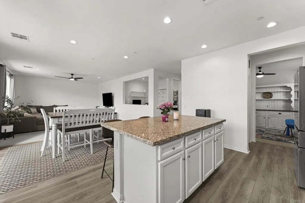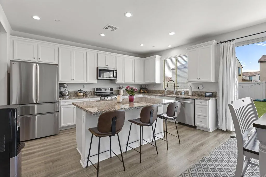 Immaculate Pulte Pinewood Home in highly coveted Spencer's Crossing community featuring 5 Large Bedrooms, 3.5 Baths plus a den/office, and a large loft and over 3300 SF. This two-story home has over $80,000.00 in premium upgrades inside and out. The open floor plan has flowing luxury vinyl plank floors, a guest suite downstairs with a full bath, high ceilings with upgraded 8' interior doors, and custom blinds for perfect control of natural light. The kitchen and dining area are open to a large family room, making it ideal for large gatherings, plus a bonus activity center or flex office space. Upstairs the primary suite is gorgeous and large enough for a King Bed set and sitting area. You will love the walk-in closet. The bath area has a soaking tub, a separate shower, and two sinks. The loft upstairs is yet another great space for multiple uses, and the 3 additional bedrooms are large, open, and bright. The exterior front area is easy maintenance, and the back has a lovely patio area for a future Pergola or firepit. Easy care artificial turf is excellent for activities, entertainment, and games. You will love the raised garden boxes, sandbox, and passion fruit trees, all on drip irrigation, and also room for a pool. Home has Leased Sunpower Solar Panels with 4.2KW. HOA includes Pools, Parks, Recreation Center, Sports Park, and more. Minutes to schools, shopping, freeways, and Temecula Wine Country.